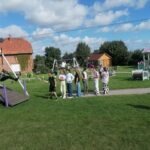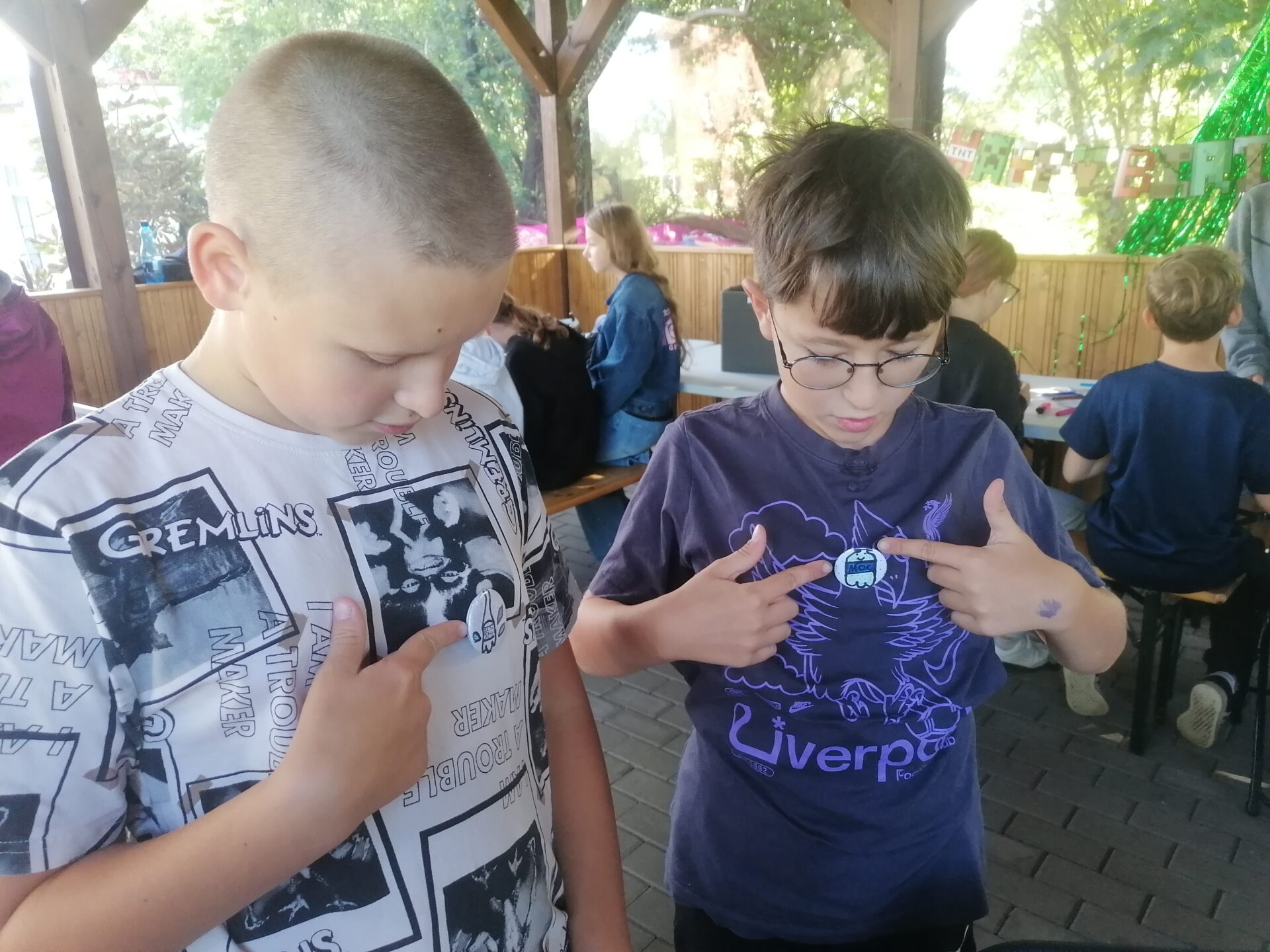 W trzecim tygodniu września uczniowie klasy 5D odwiedzili malborską Akademię Nauczania, by korzystając z pogody, spędzić ze sobą czas na świeżym powietrzu. Uczniowie, podzieleni na kilkuosobowe grupy, przystąpili do gry terenowej. Zanim jednak rozpoczęto rywalizację, każda drużyna miała za zadanie wymyślić dla siebie nawę oraz logo, które umieszczone zostało na przypinkach, dzięki specjalnej prasie.