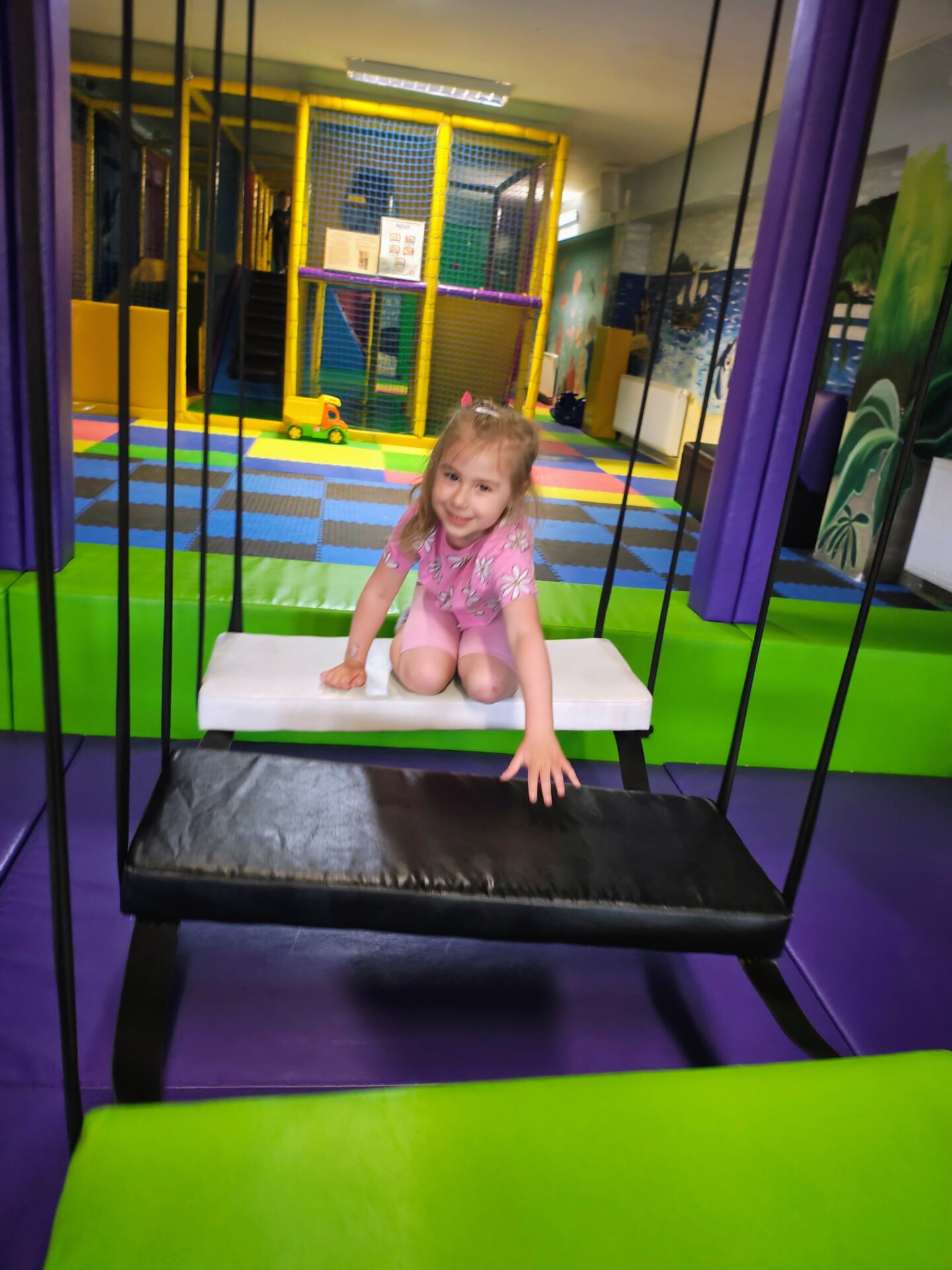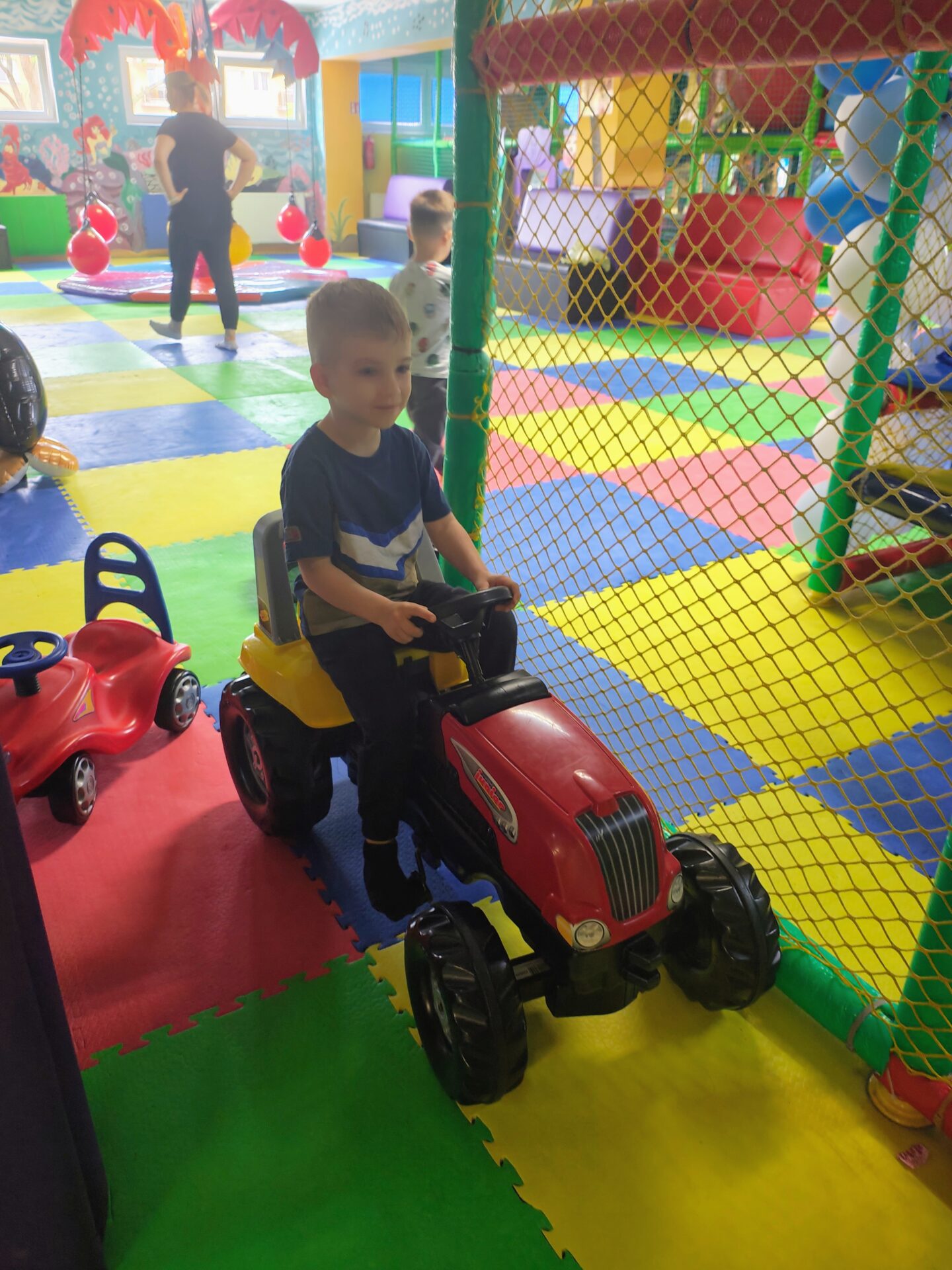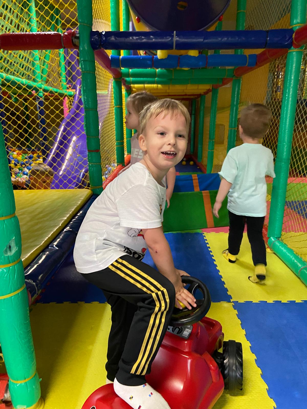 Naszym celem była sala zabaw Bajlandia w Elblągu – miejsce pełne kolorowych atrakcji i radosnej atmosfery. Na dzieci czekały m.in. labirynty z przeszkodami, baseny z kulkami, dmuchane zjeżdżalnie, trampoliny oraz klocki i zabawki konstrukcyjne. Przedszkolaki mogły wspinać się, zjeżdżać, skakać i budować, rozwijając przy tym swoją sprawność ruchową i wyobraźnię.