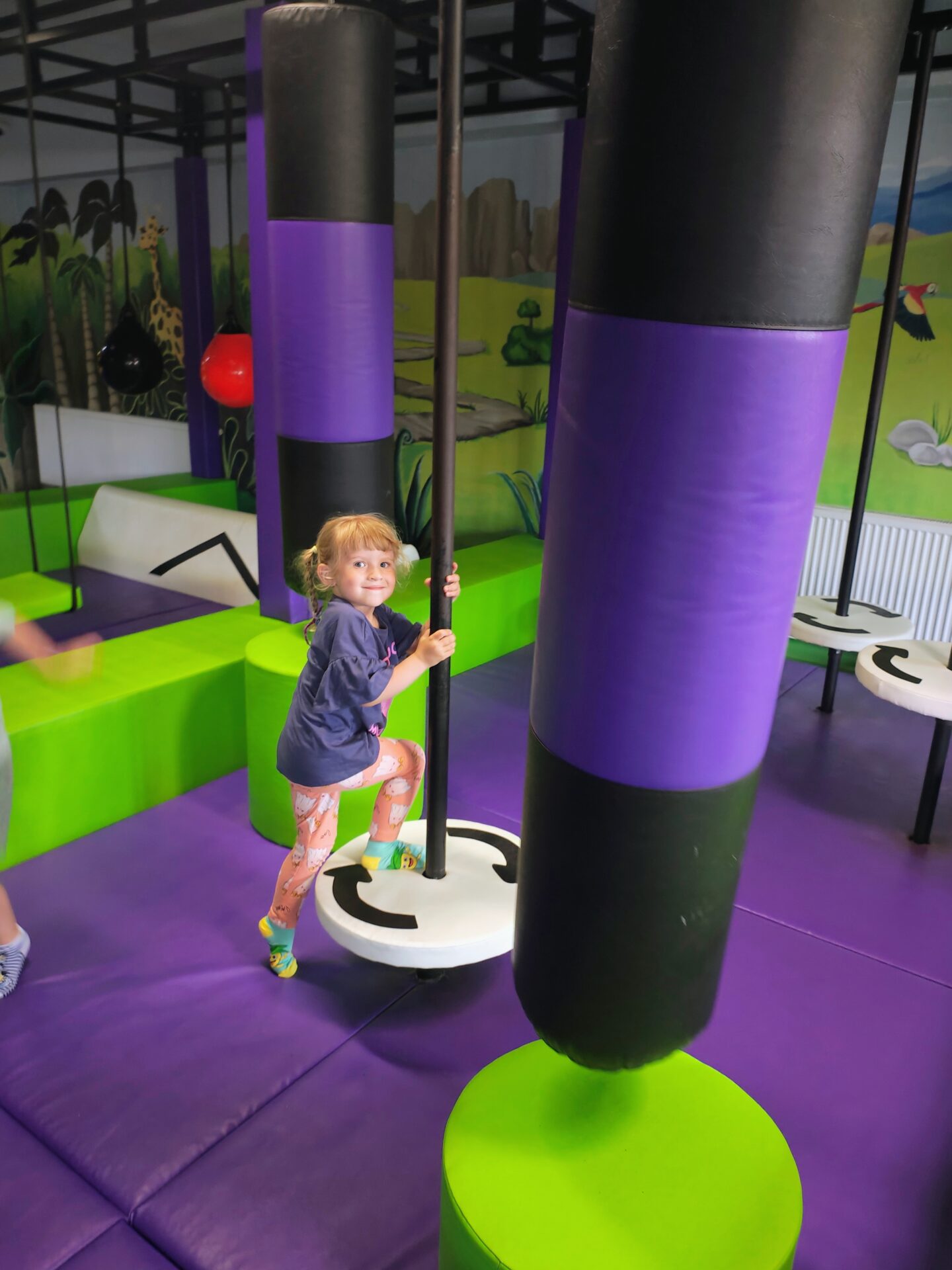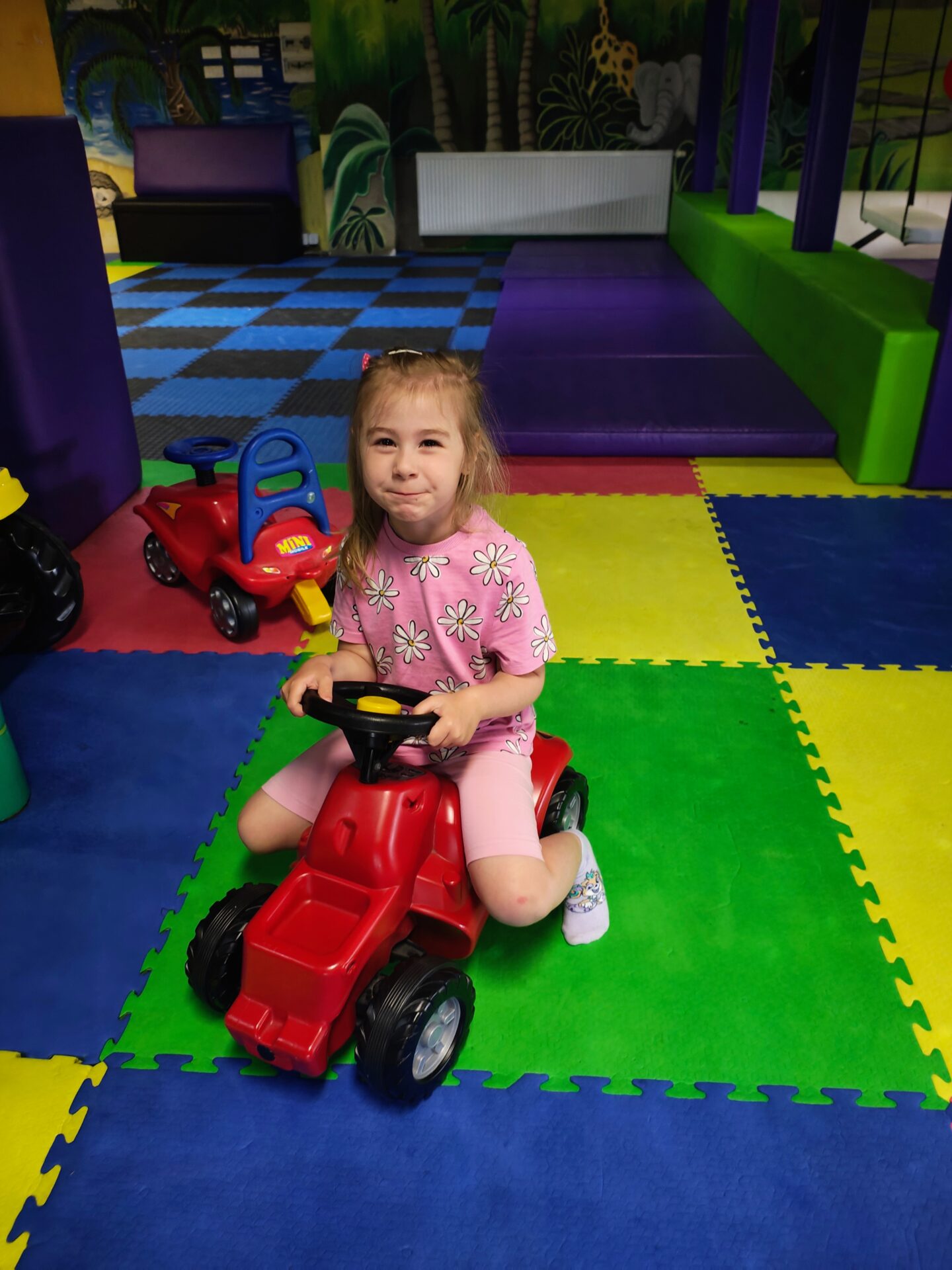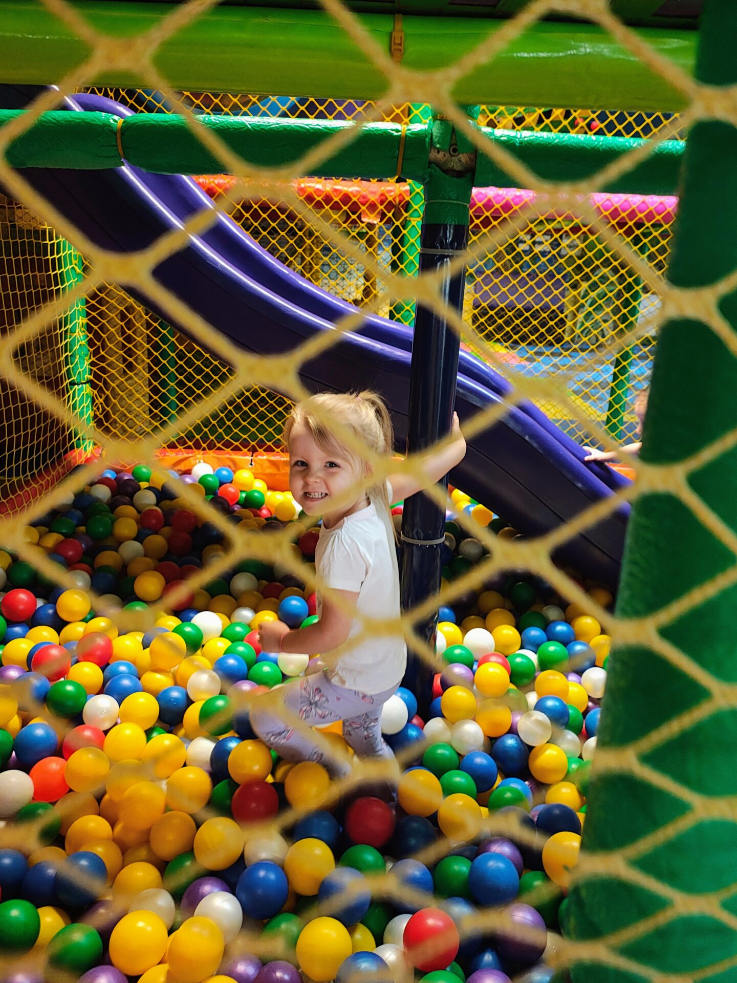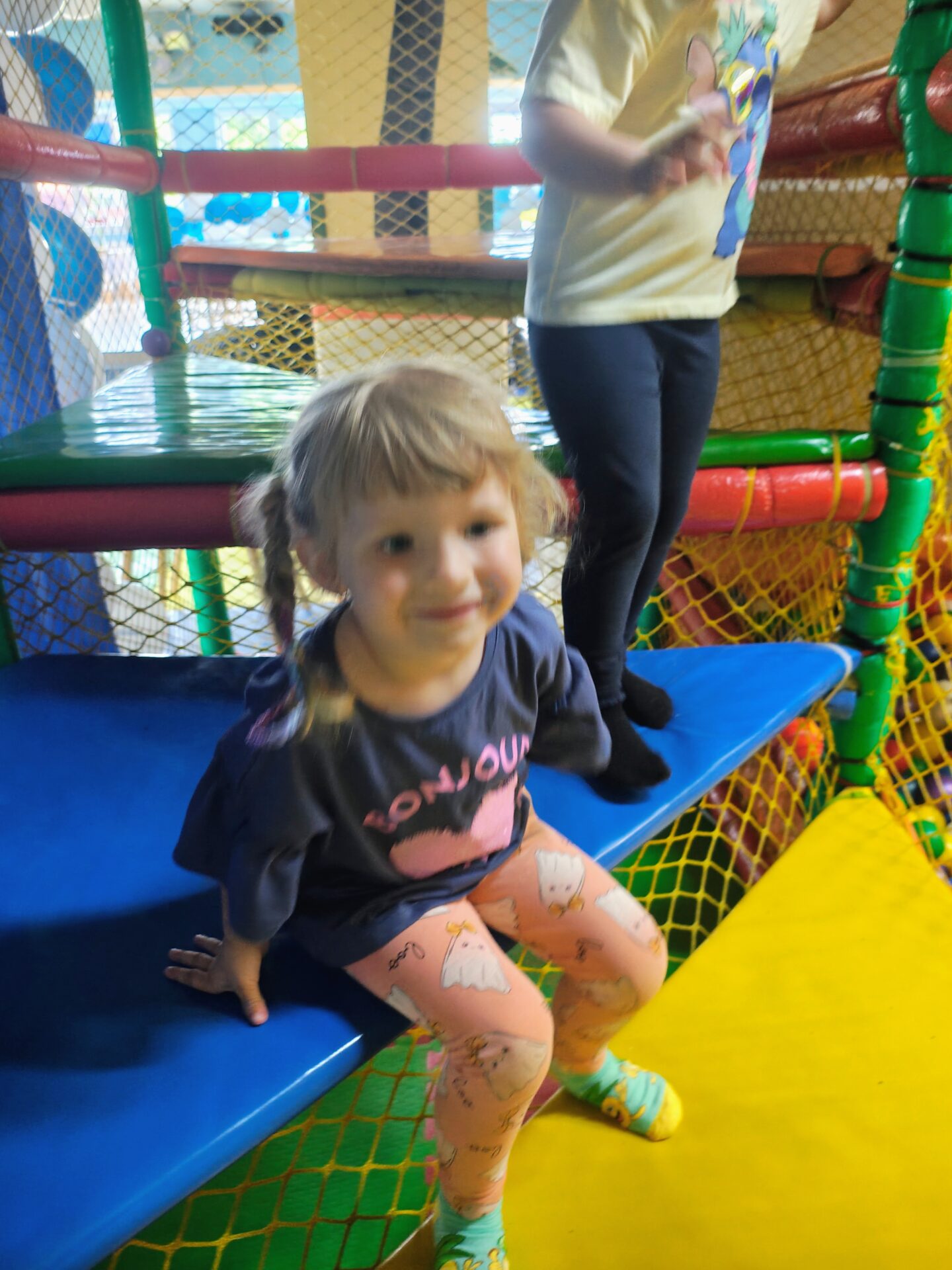 Naszym celem była sala zabaw Bajlandia w Elblągu – miejsce pełne kolorowych atrakcji i radosnej atmosfery. Na dzieci czekały m.in. labirynty z przeszkodami, baseny z kulkami, dmuchane zjeżdżalnie, trampoliny oraz klocki i zabawki konstrukcyjne. Przedszkolaki mogły wspinać się, zjeżdżać, skakać i budować, rozwijając przy tym swoją sprawność ruchową i wyobraźnię.