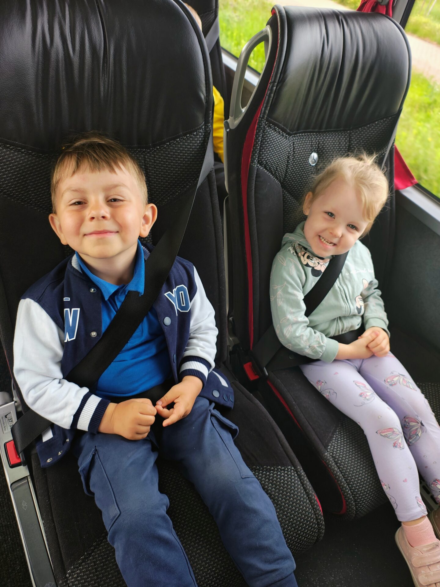 W środę, 18 czerwca, dzieci z dwóch grup 3-latków – Pszczółki i Słoneczniki – wyruszyły na swoją pierwszą wspólną wycieczkę autokarową. Już sama podróż była dla naszych przedszkolaków wielkim przeżyciem. Dzieci z ogromnym zaciekawieniem wyglądały przez okna autokaru, podziwiając mijane krajobrazy i ciesząc się nowym doświadczeniem.