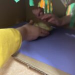 Przedszkolaki uczestniczyły również w zabawie dydaktycznej przy pomocy zagadkowego pudełka, która miała na celu pobudzenie u dzieci zmysłu dotyku. Pracując w parach, przedszkolaki rozpoznawały skarby jesieni za pomocą dotyku, określając ich kształt, wielkość oraz strukturę. Ponadto obejrzały film edukacyjny na temat jesiennych prac porządkowych w ogrodzie oraz dowiedziały się, w jaki sposób przygotować różnorodne przetwory z warzyw i owoców. Dzieci wysłuchały również opowiadania o pracy rolników i nauczyły się tematycznej piosenki o owocach, która bardzo przypadła im do gustu.