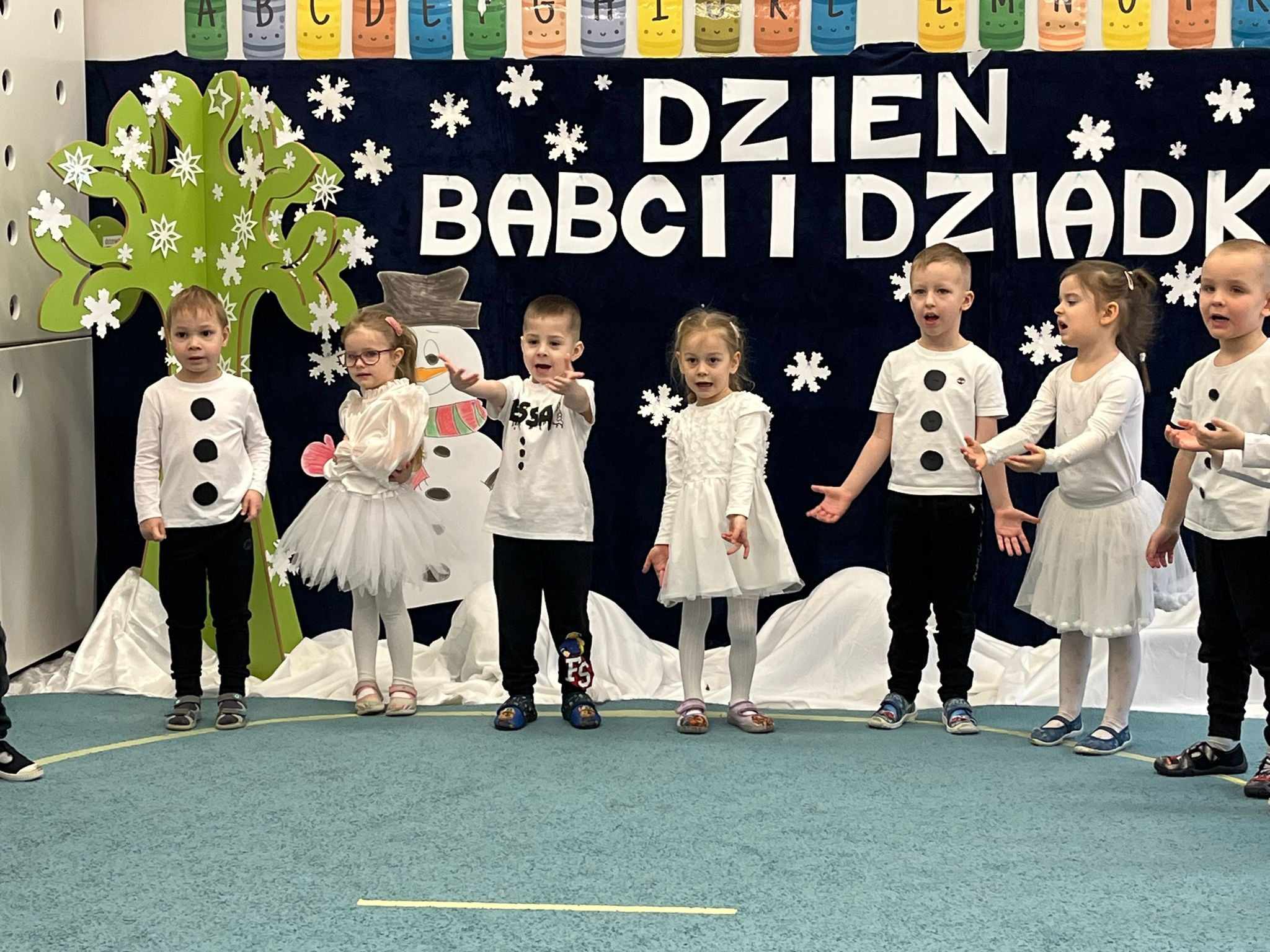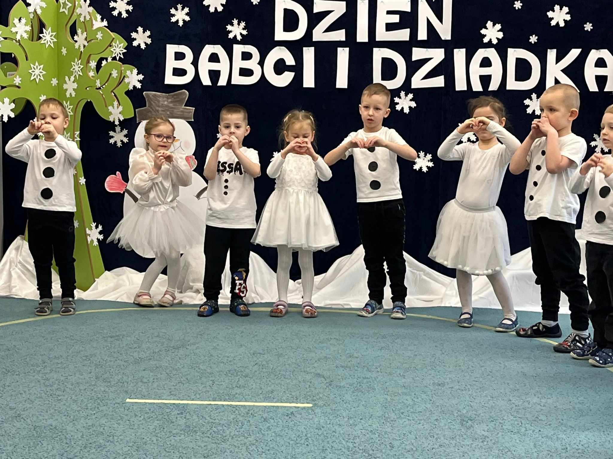 W przepięknej zimowej scenografii oraz w wyjątkowej atmosferze przedszkolaki wspaniale wystąpiły przed bliskimi, następnie zaprosiły babcie i dziadków na słodki poczęstunek. To były naprawdę wyjątkowy dzień, pełen uśmiechu i radości. Szczęśliwe i rozpromienione twarze babć i dziadków dały wyraz tego, jak ważne są takie spotkania i chwile spędzone wspólnie z wnukami.
