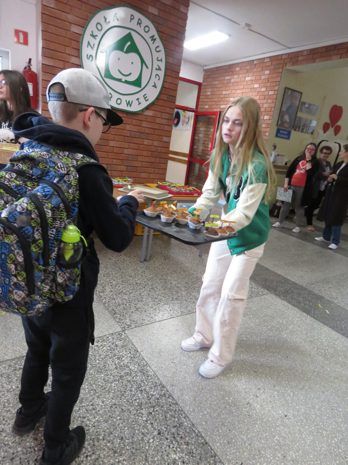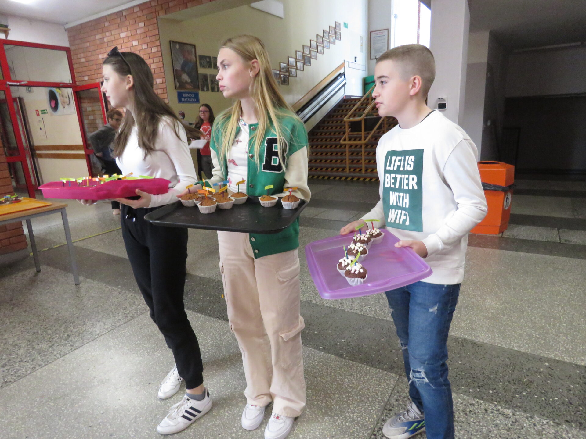 W przygotowanie tego dnia z ochotą zaangażowało się wiele osób: wychowawcy klas, samorząd uczniowski, rodzice, którzy piekli babeczki. Nieoceniona była pomoc uczniów klas 8: Natalii, Zuzi, Anielki, Kingi, Hani, Mai, Nadii, Zuzi i Marcina. Bez nich ten dzień nie byłby tak piękny.