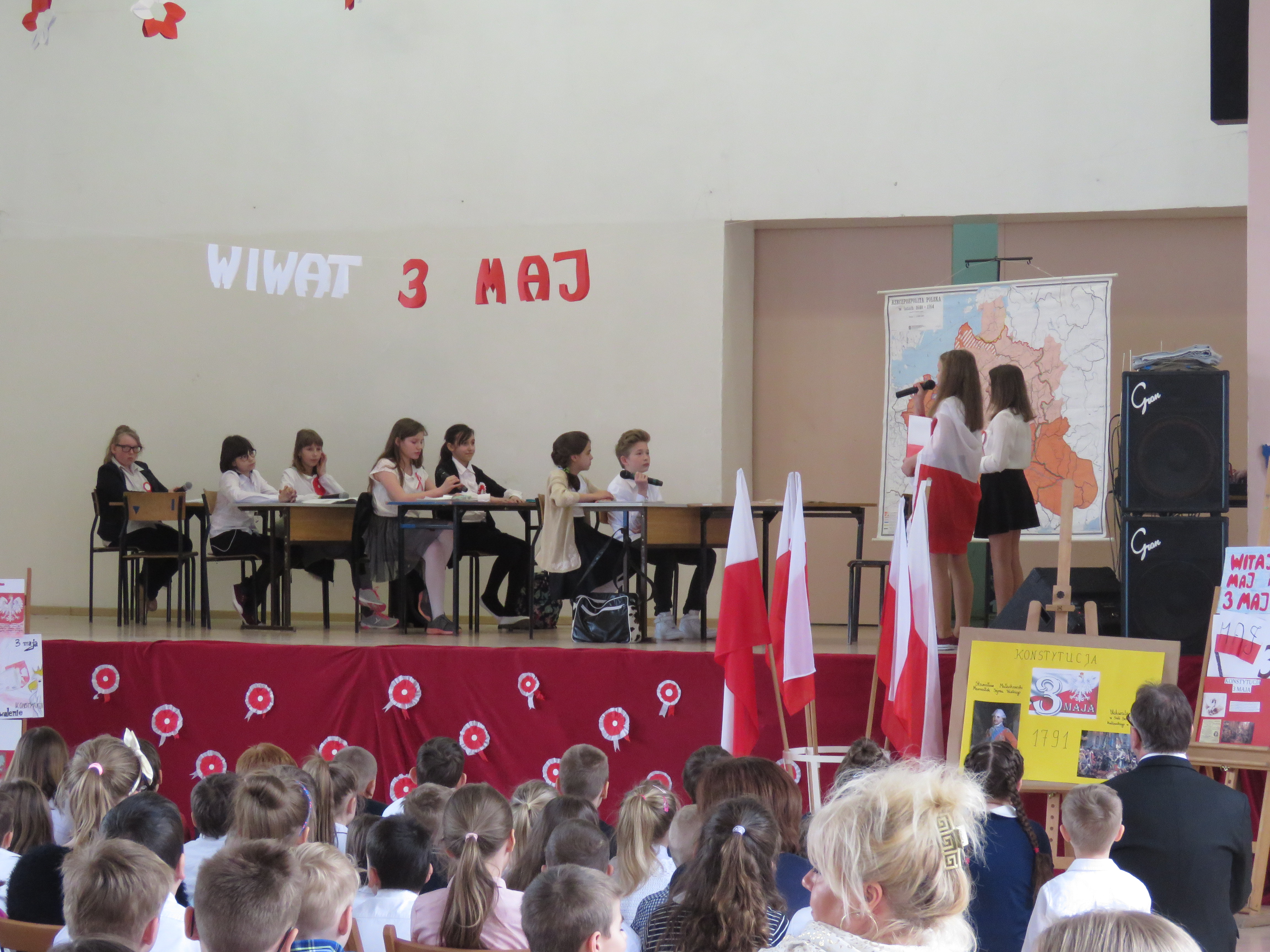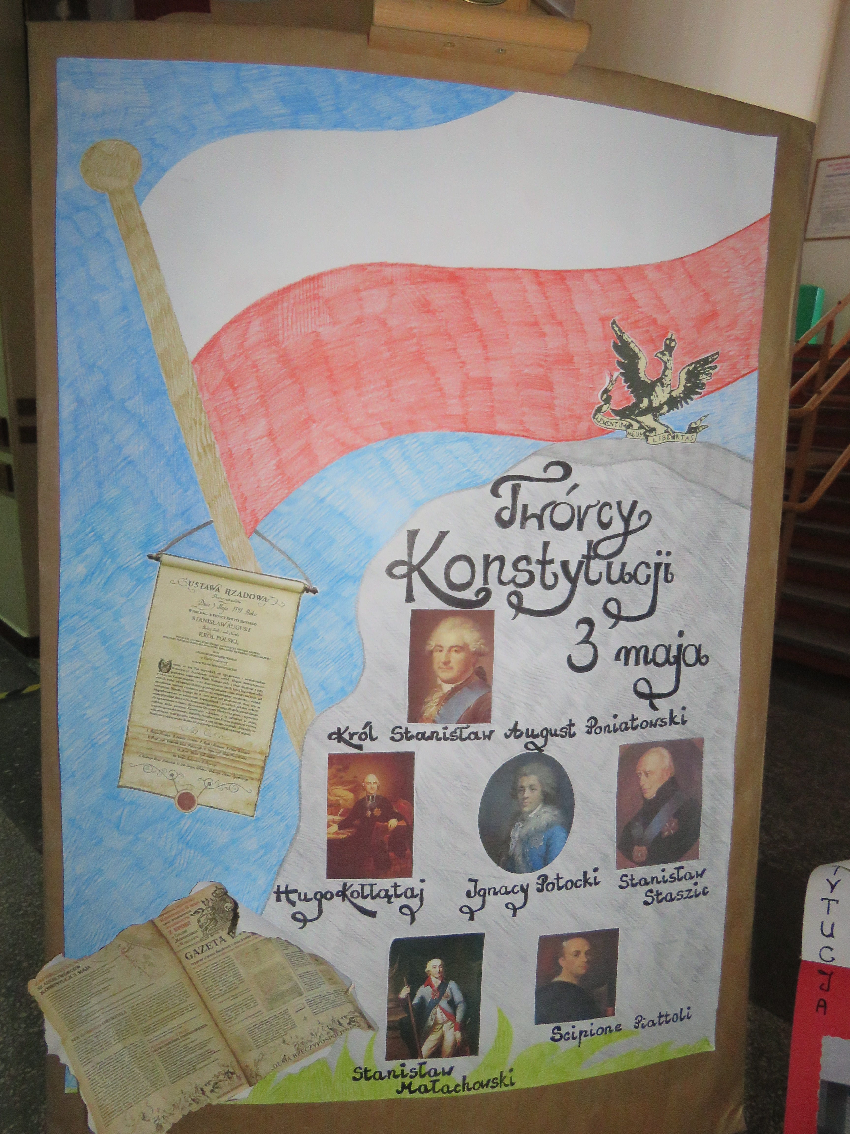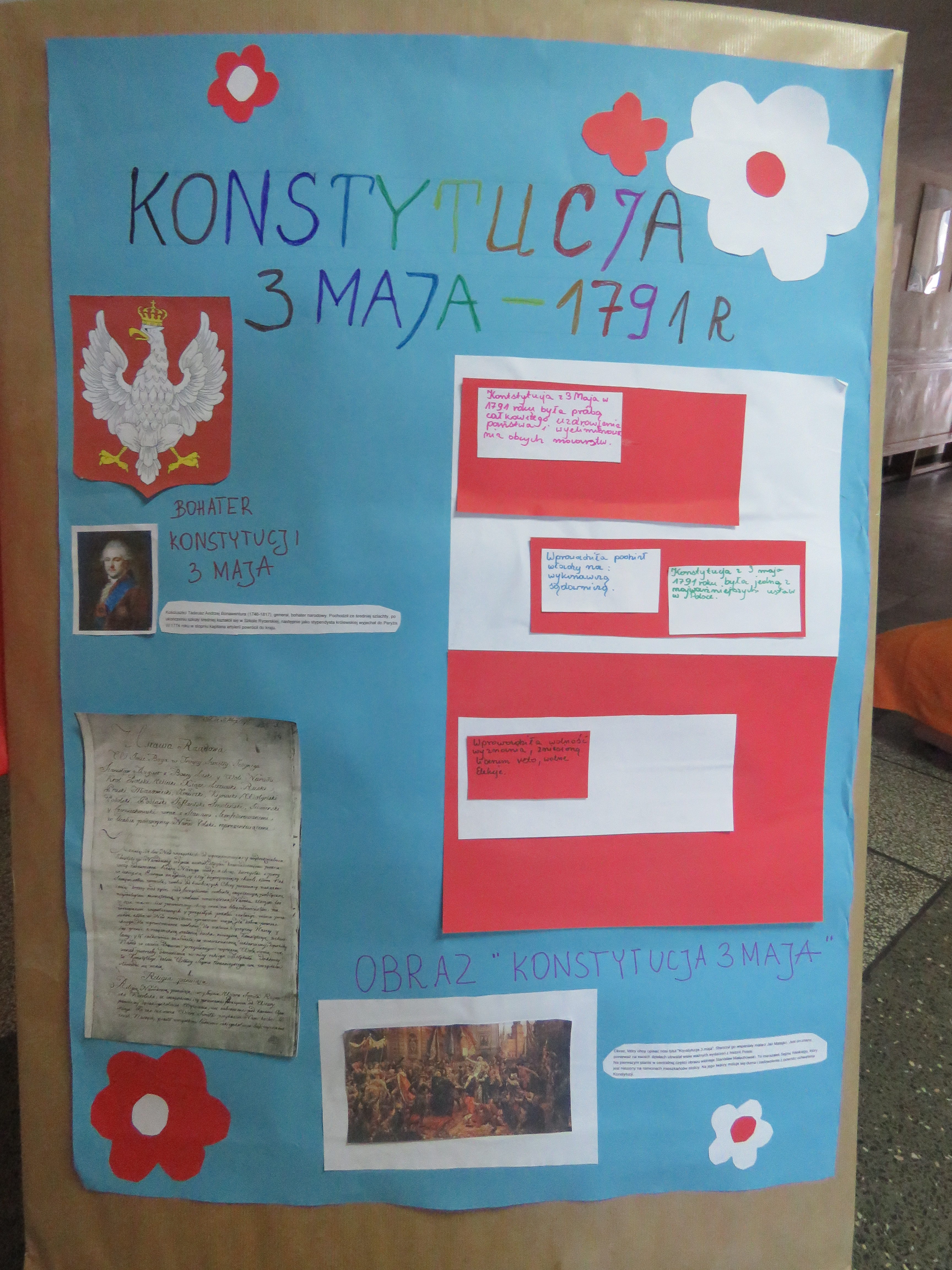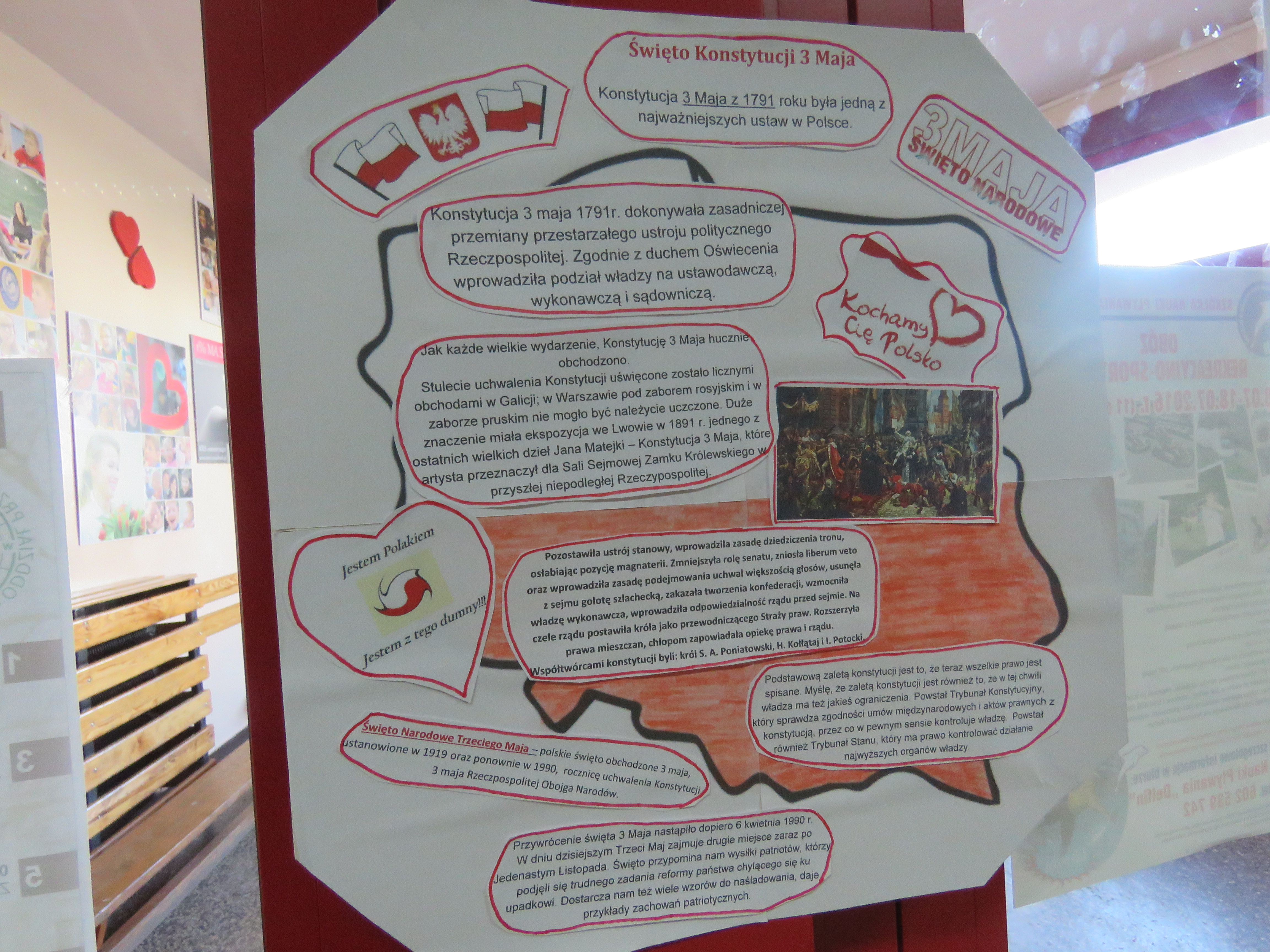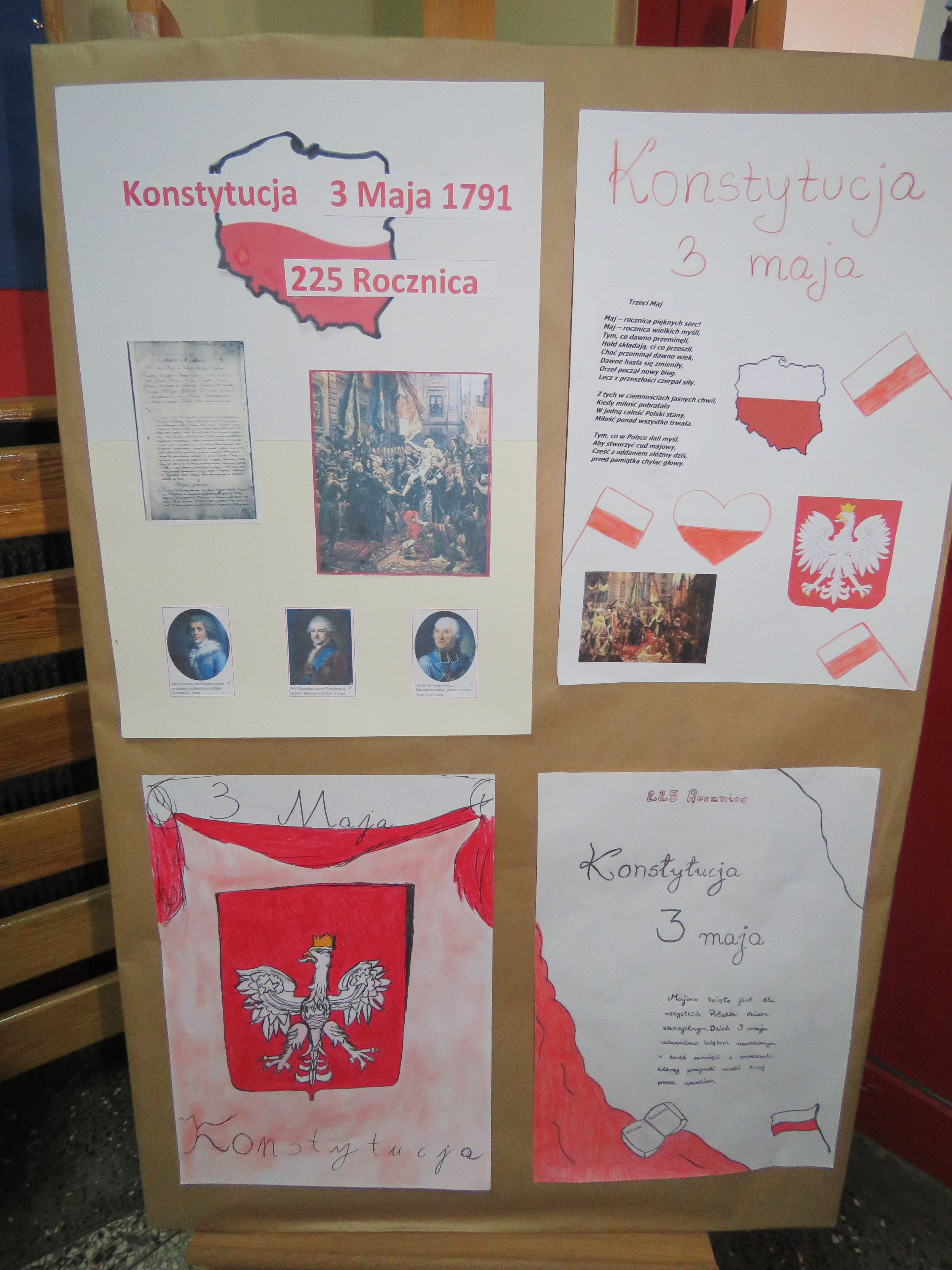 Te ważne wydarzenia stały się dla naszej szkoły okazją do szczególnego spotkania, które przygotowali uczniowie Pani Celiny Kraszewskiej. Na lekcji religii w klasie 2b najmłodsze dzieci miały okazje poznać historię powstania pierwszej Konstytucji. – To bardzo piękne święto, jakby urodziny Konstytucji. Na urodzinach trzeba się cieszyć i świętować, trzeba kochać Polskę – wyznaje Hania. Jasiu dodał – … Konstytucja to jest ważny dokument, który pomaga ludziom lepiej żyć. Mój dziadek ma Konstytucję.