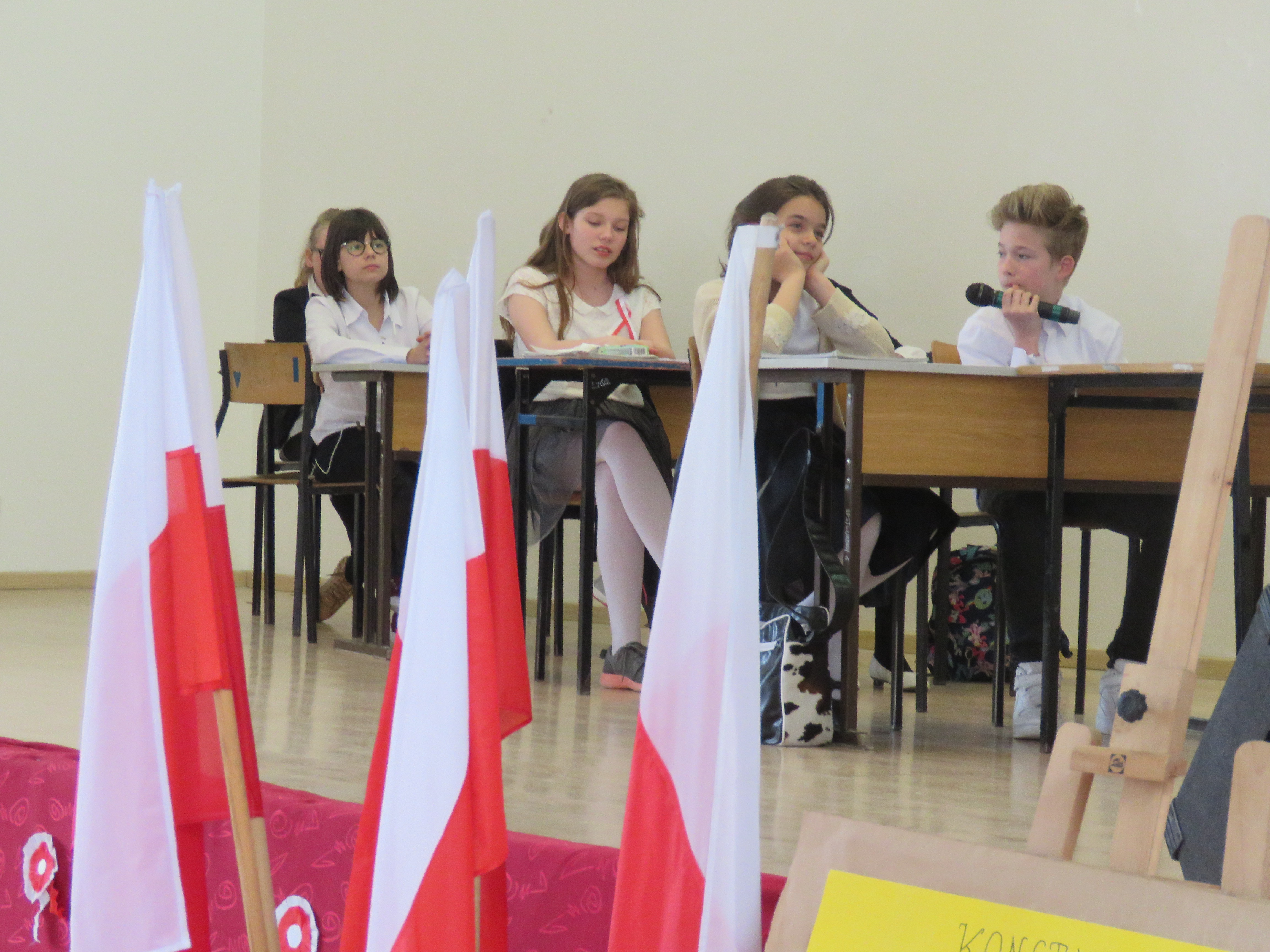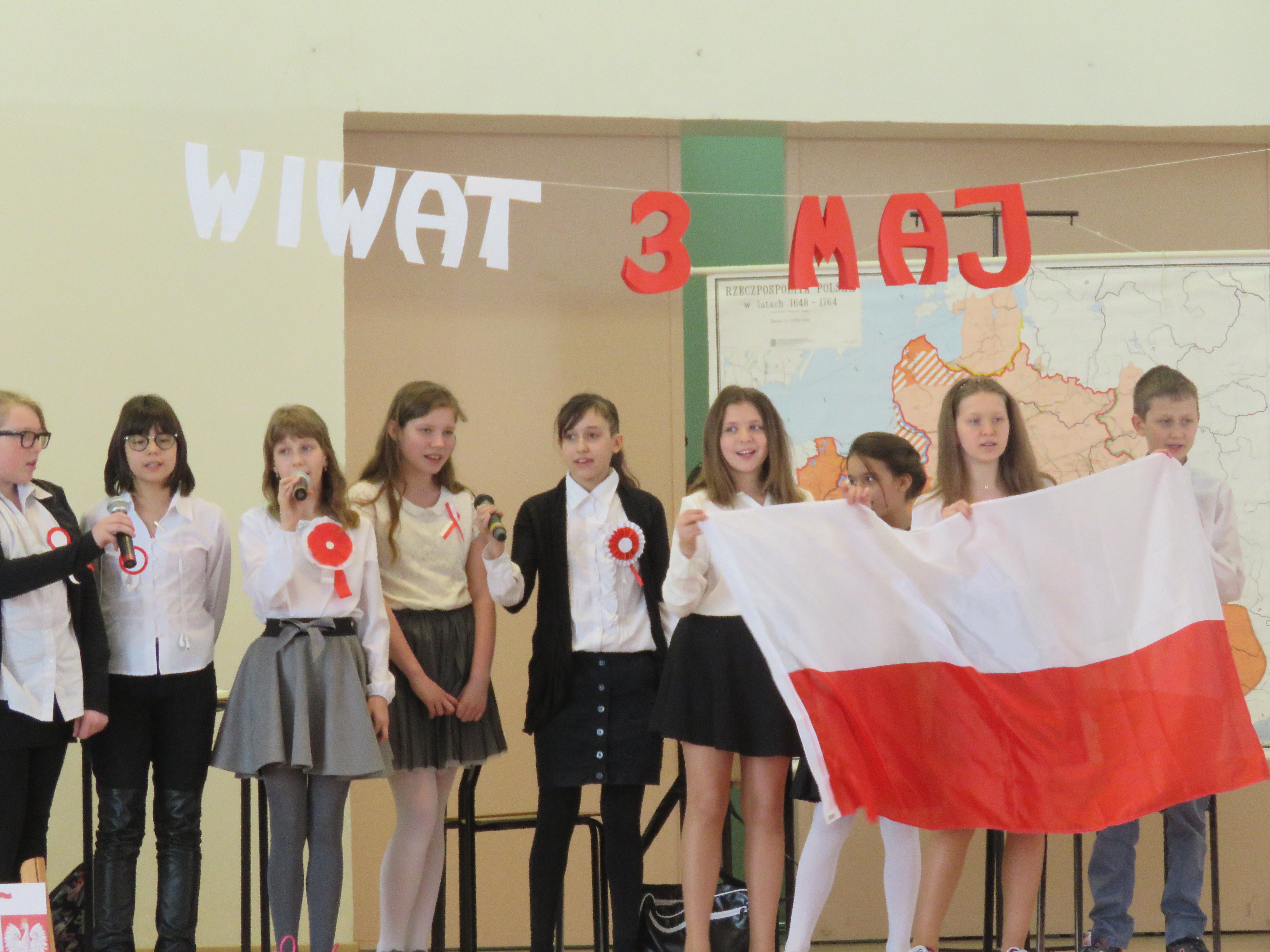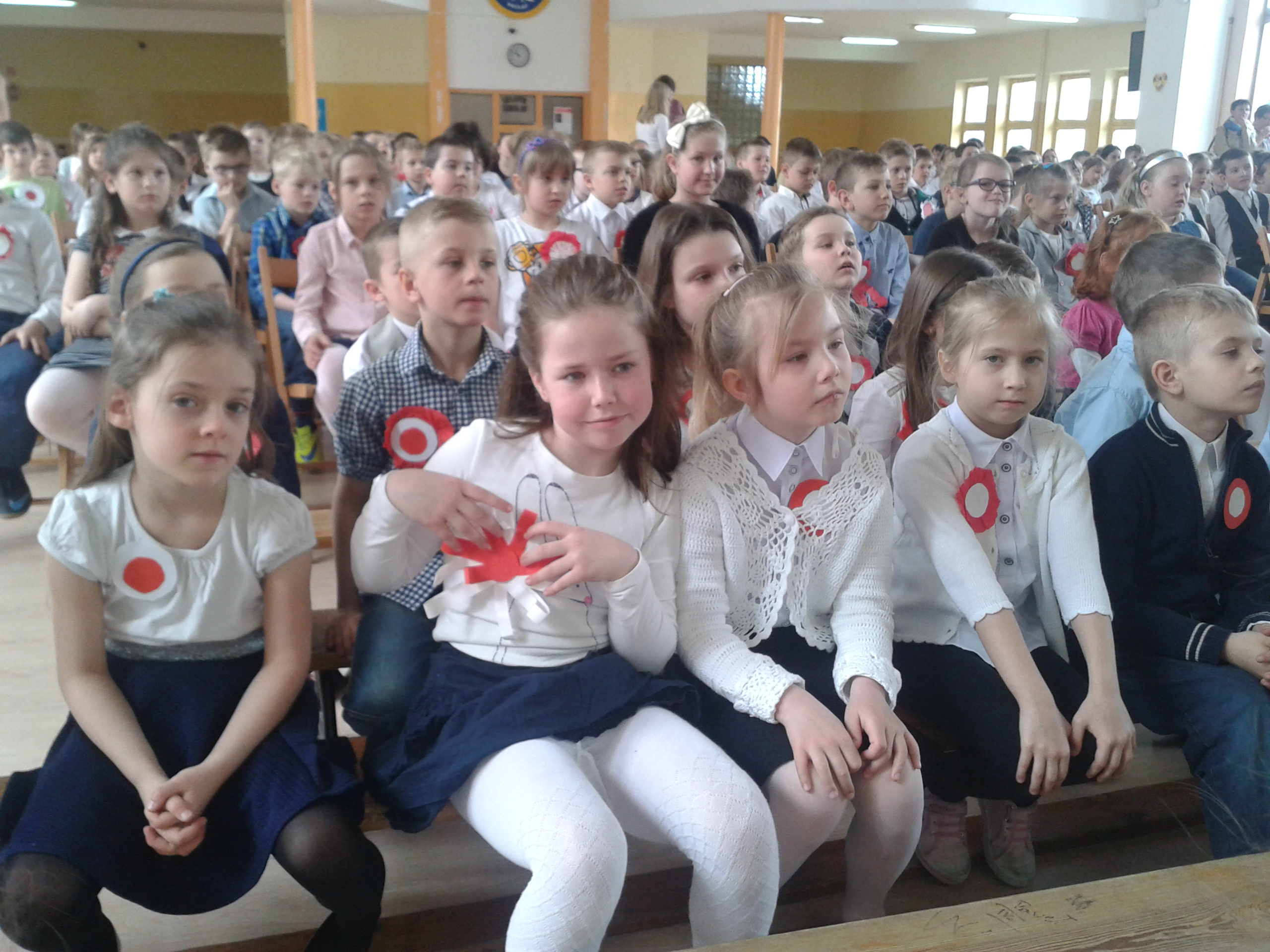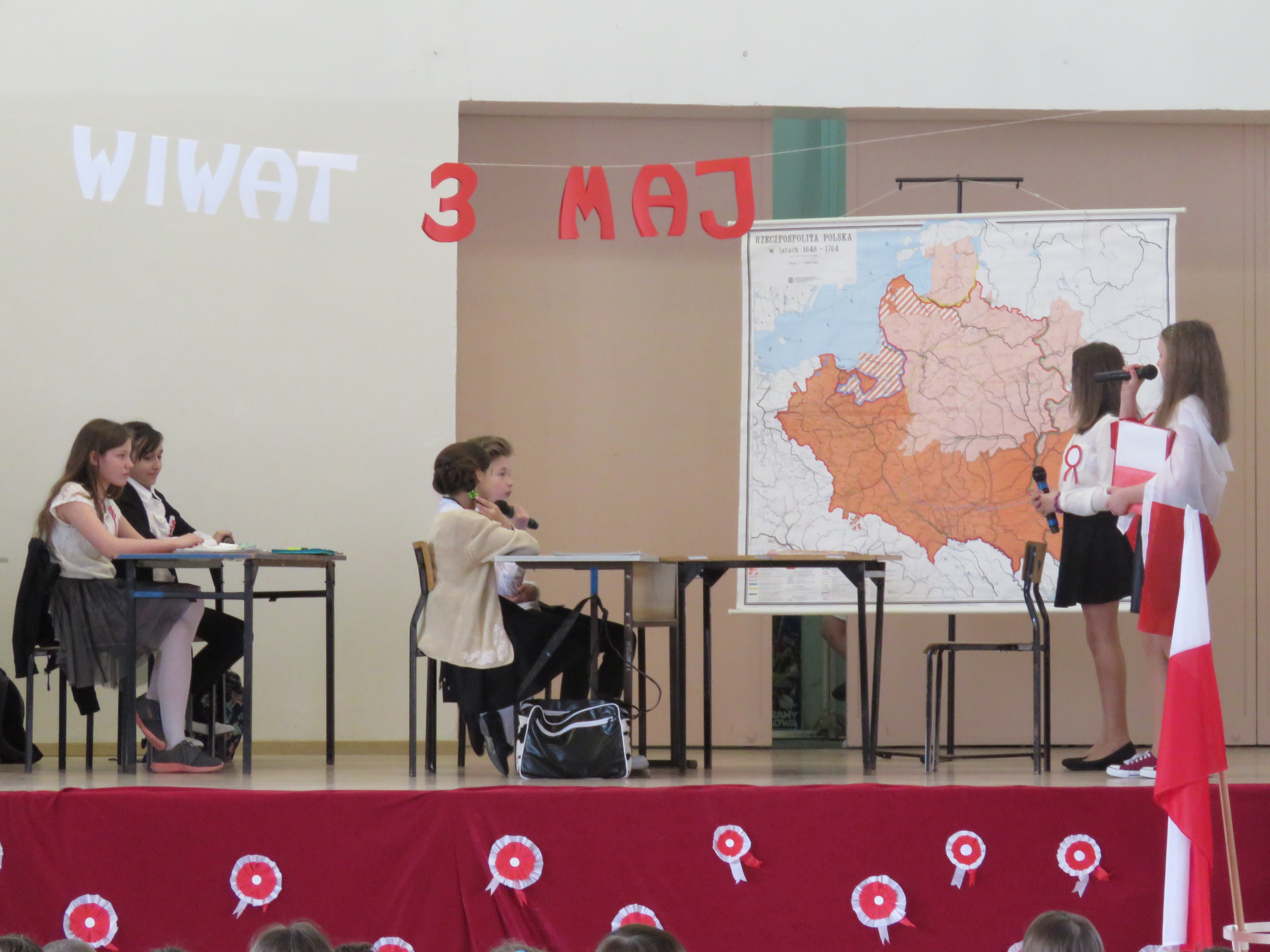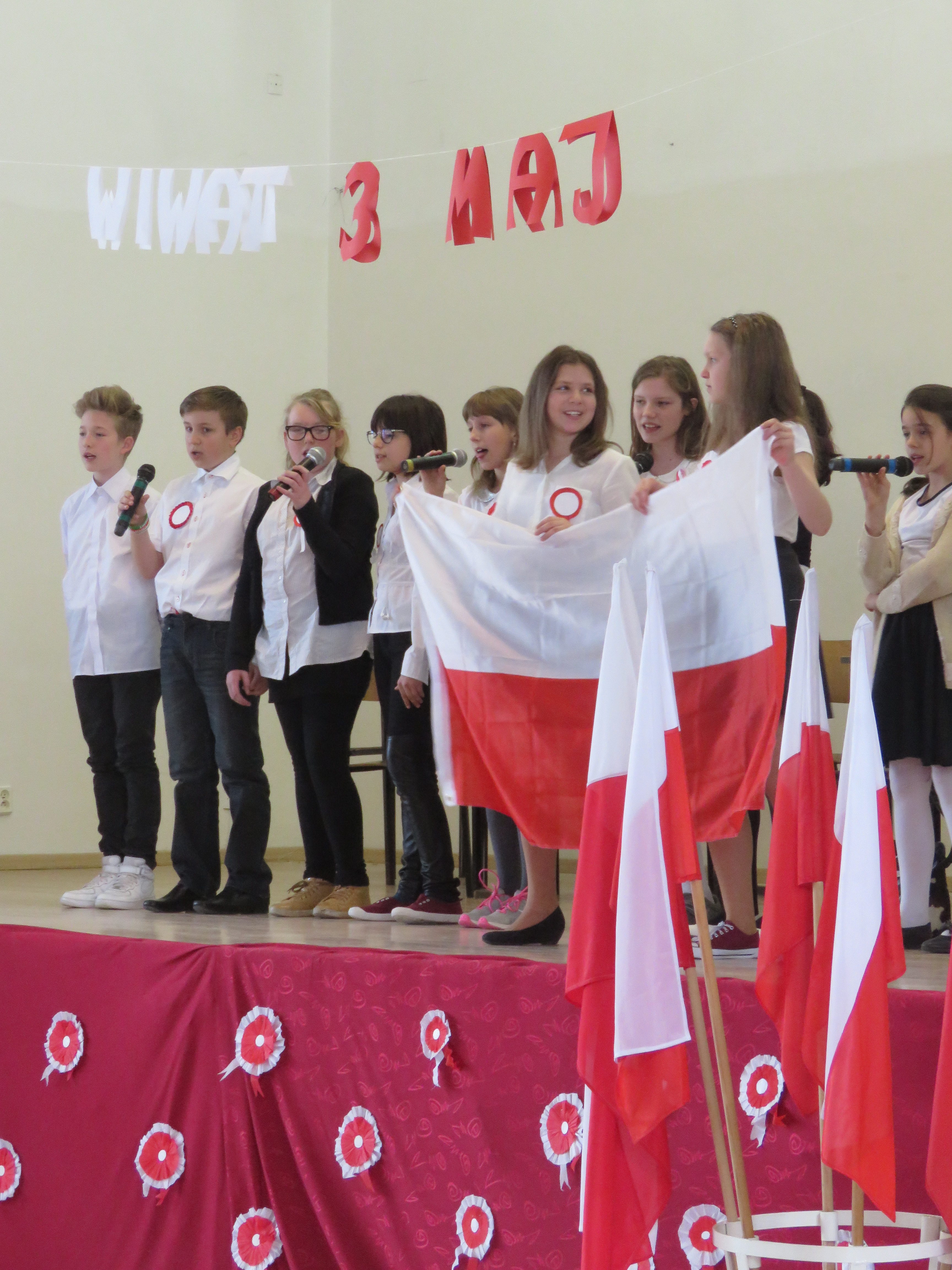Te ważne wydarzenia stały się dla naszej szkoły okazją do szczególnego spotkania, które przygotowali uczniowie Pani Celiny Kraszewskiej. Na lekcji religii w klasie 2b najmłodsze dzieci miały okazje poznać historię powstania pierwszej Konstytucji. – To bardzo piękne święto, jakby urodziny Konstytucji. Na urodzinach trzeba się cieszyć i świętować, trzeba kochać Polskę – wyznaje Hania. Jasiu dodał – … Konstytucja to jest ważny dokument, który pomaga ludziom lepiej żyć. Mój dziadek ma Konstytucję.