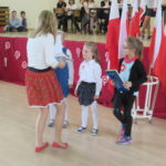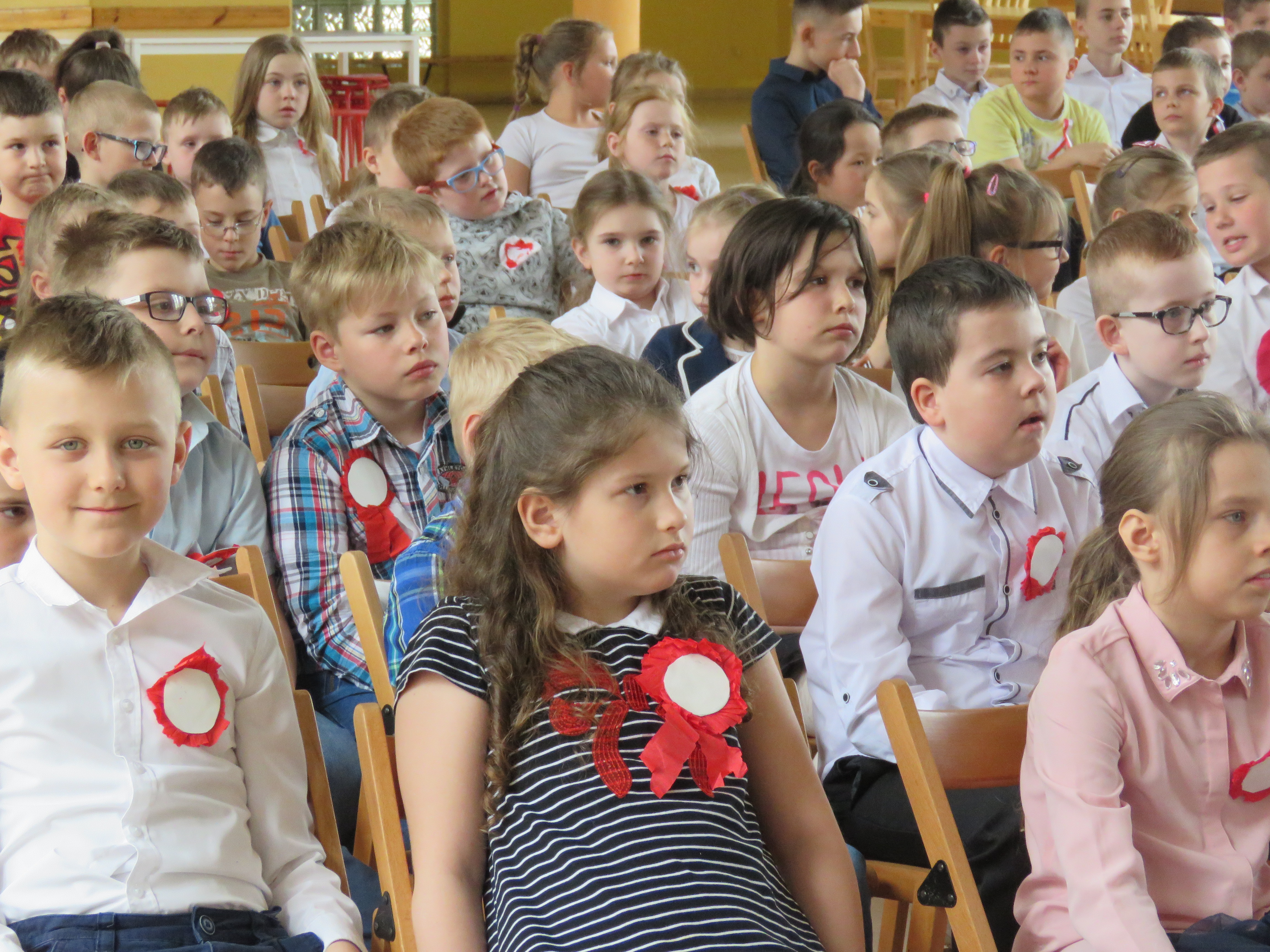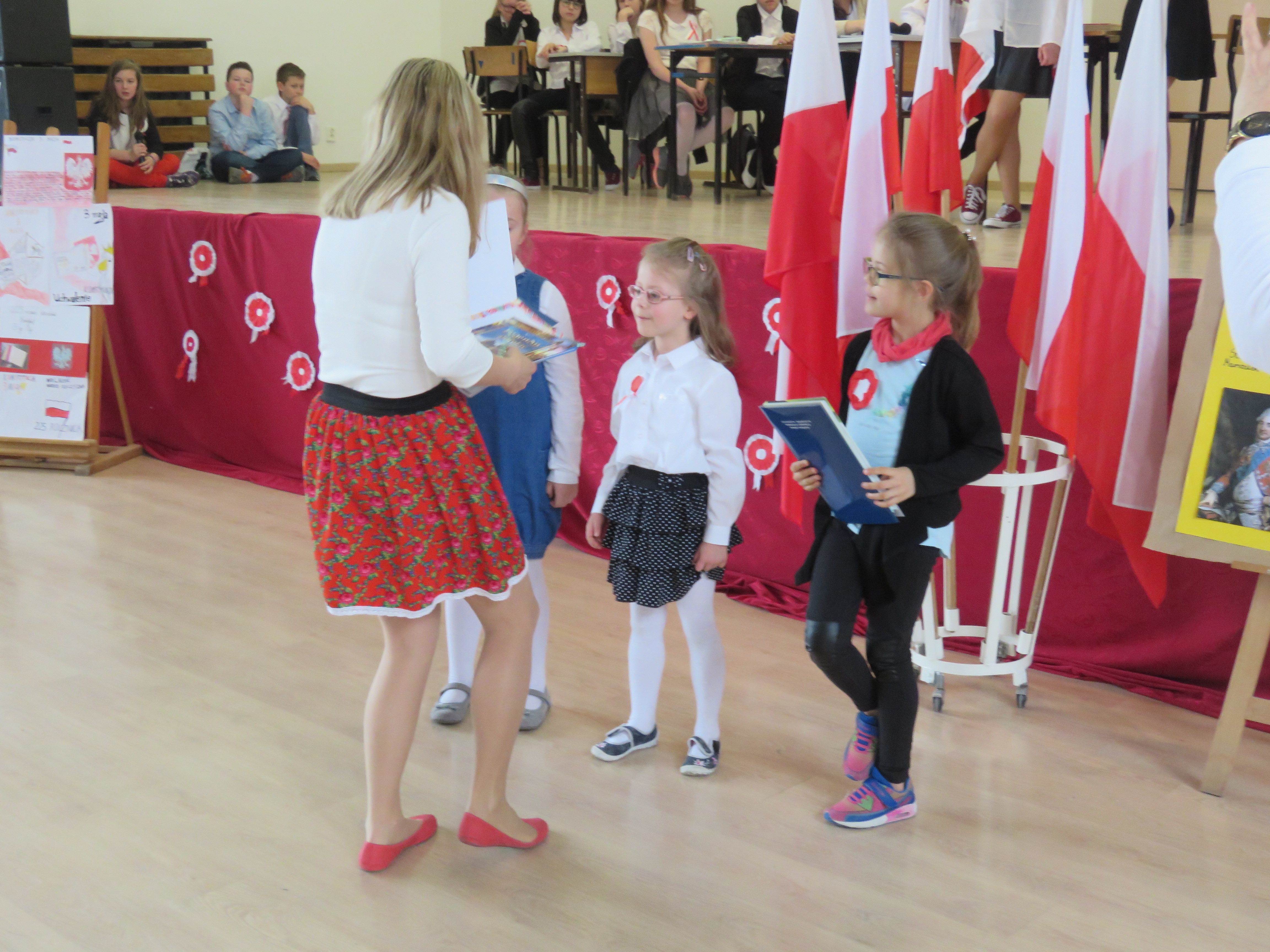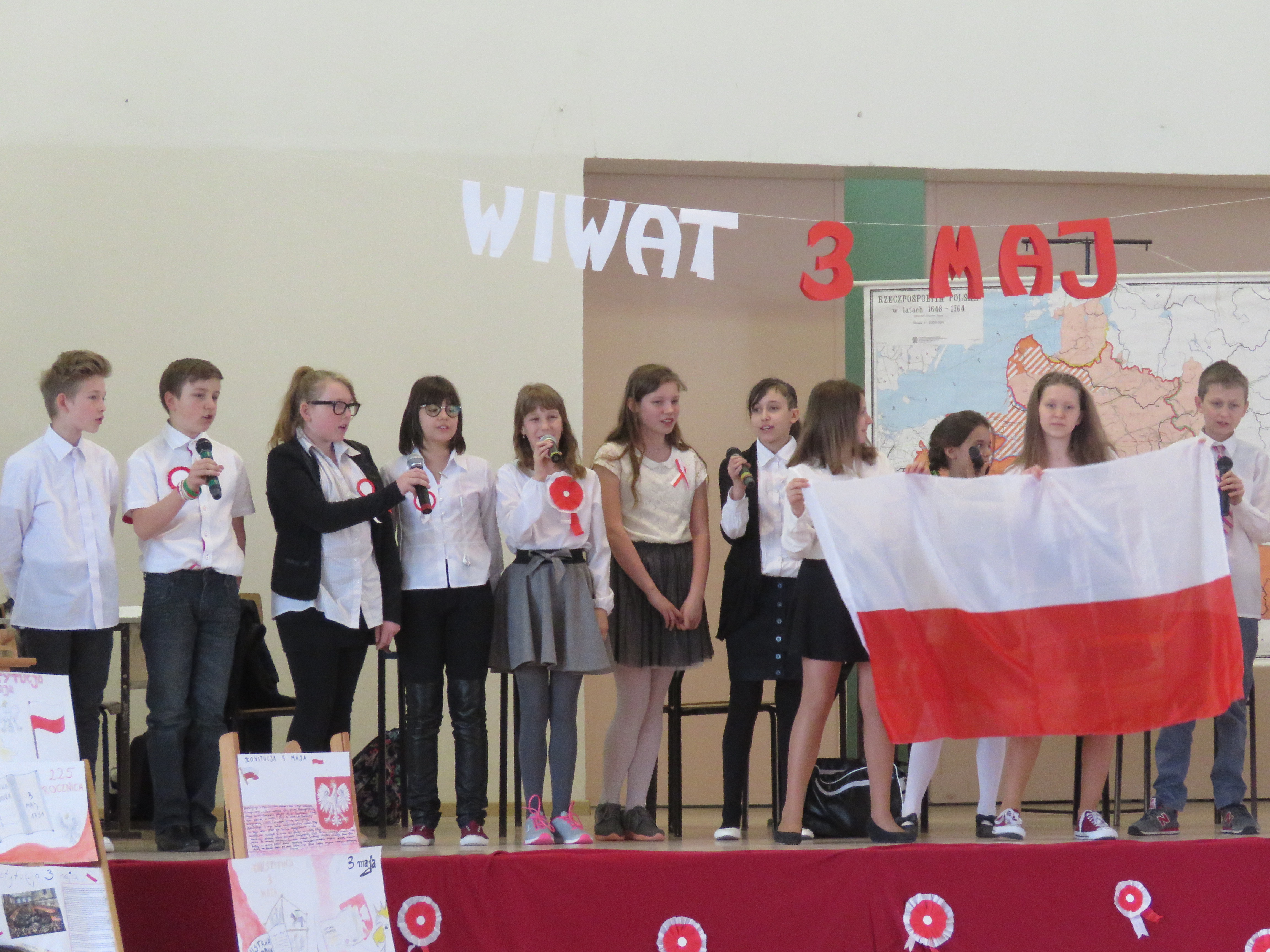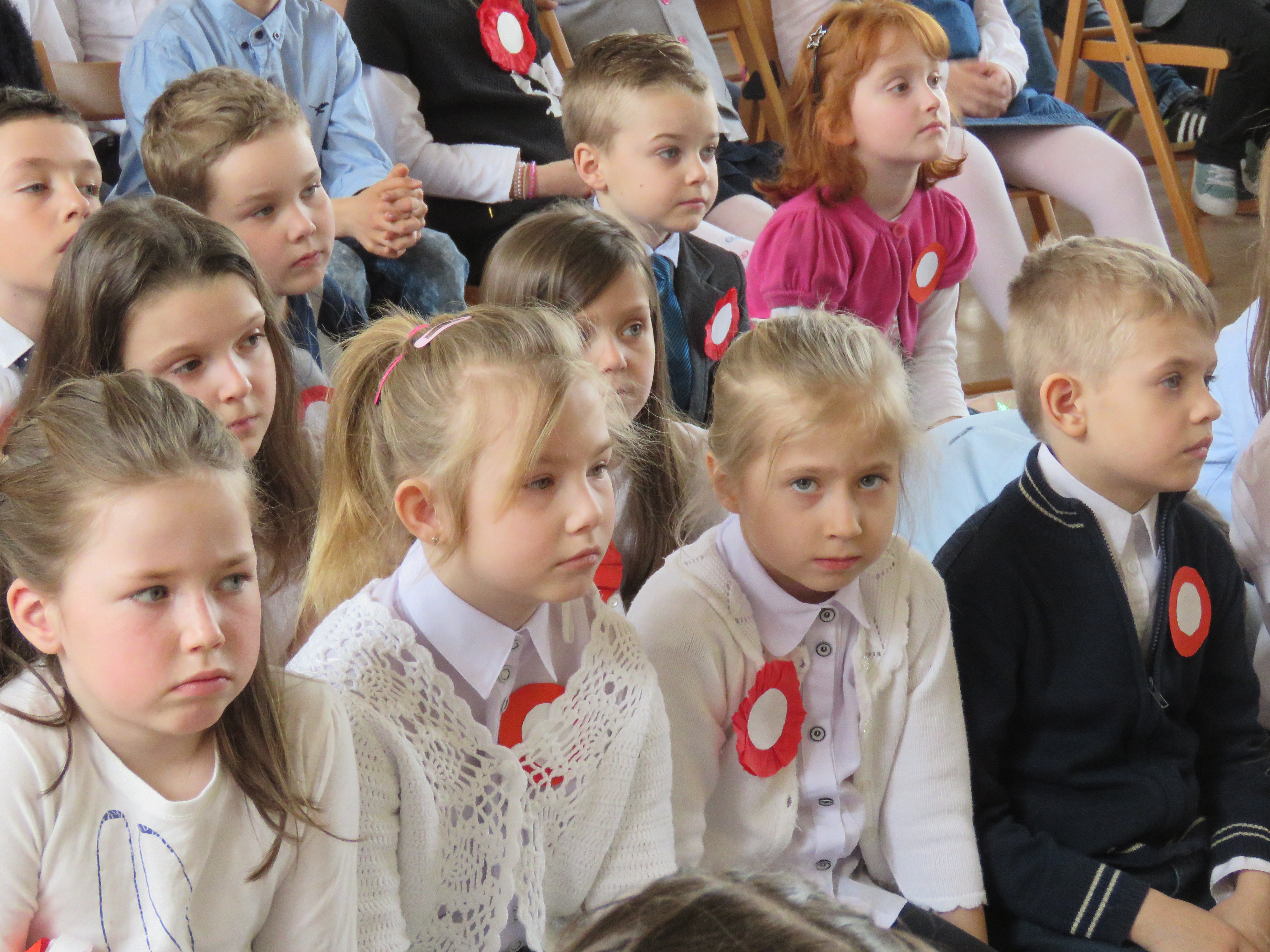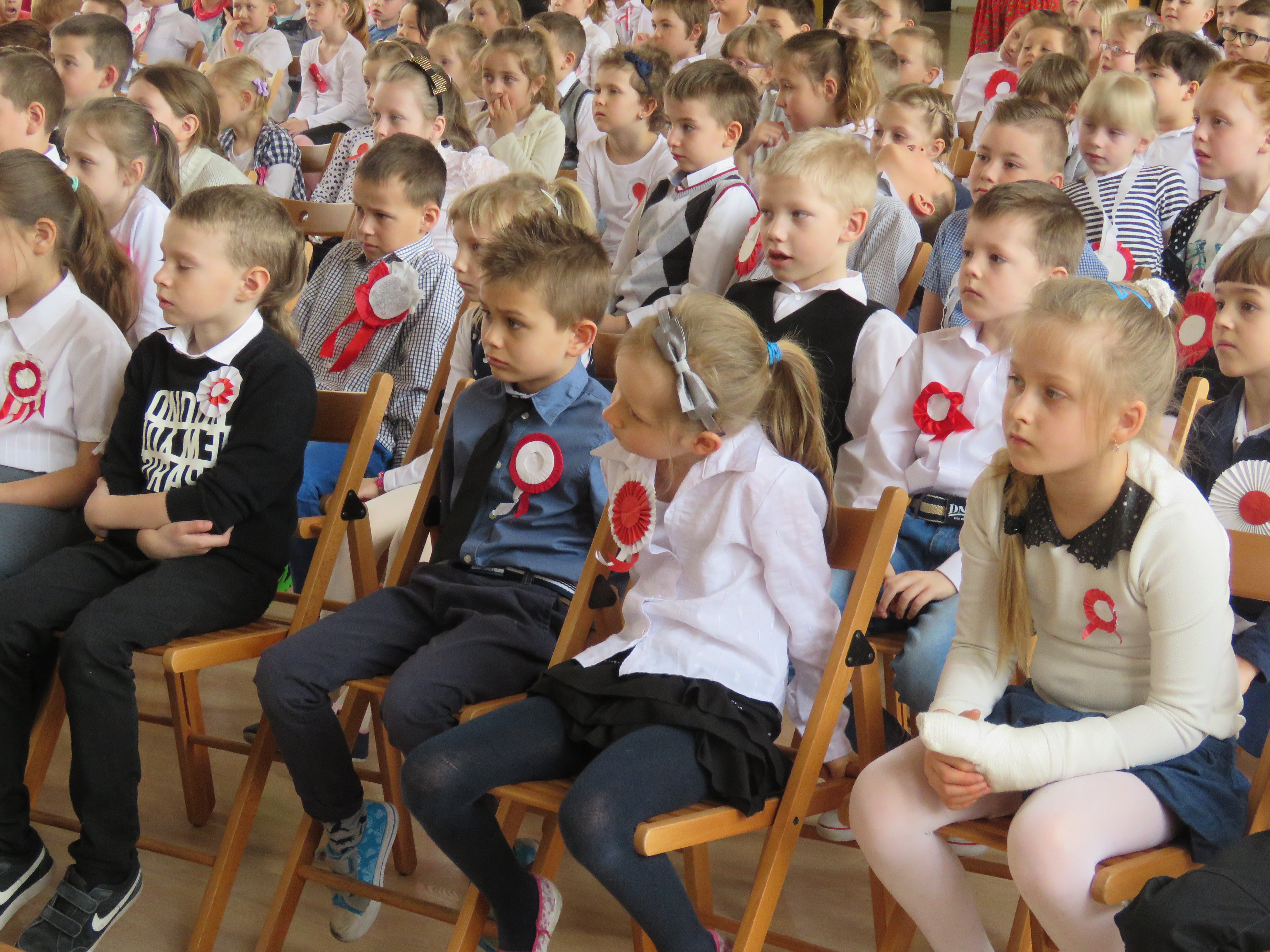 Te ważne wydarzenia stały się dla naszej szkoły okazją do szczególnego spotkania, które przygotowali uczniowie Pani Celiny Kraszewskiej. Na lekcji religii w klasie 2b najmłodsze dzieci miały okazje poznać historię powstania pierwszej Konstytucji. – To bardzo piękne święto, jakby urodziny Konstytucji. Na urodzinach trzeba się cieszyć i świętować, trzeba kochać Polskę – wyznaje Hania. Jasiu dodał – … Konstytucja to jest ważny dokument, który pomaga ludziom lepiej żyć. Mój dziadek ma Konstytucję.