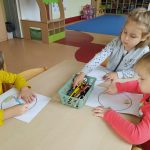 Nasze przedszkolaki również miały możliwość zagłębienia się we własnej wyobraźni, poznania siebie oraz własnych atutów. Swoją kreatywność odkrywały poprzez różnorodne prace plastyczne, zajęcia z kodowania, przeliczania oraz ciekawe zabawy ruchowe. Dzieci obejrzały bajkę pod tytułem „The dot”, aby zrozumieć, że w każdym człowieku drzemie potencjał, za którym należy podążać, aby go rozwijać i w rezultacie osiągnąć olbrzymi sukces.