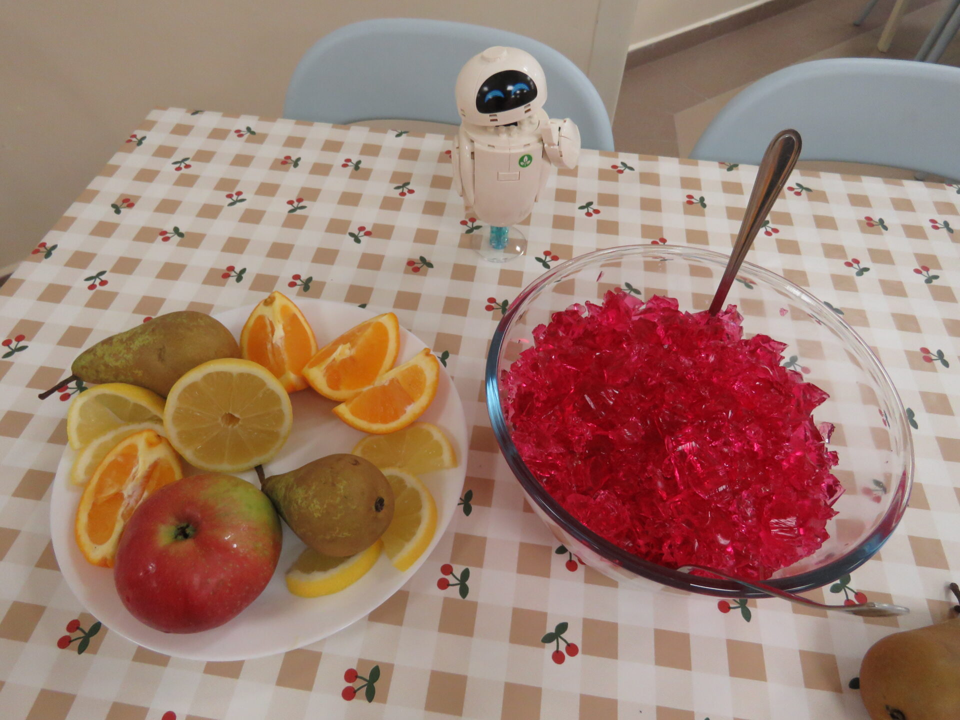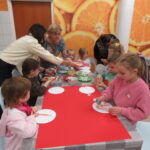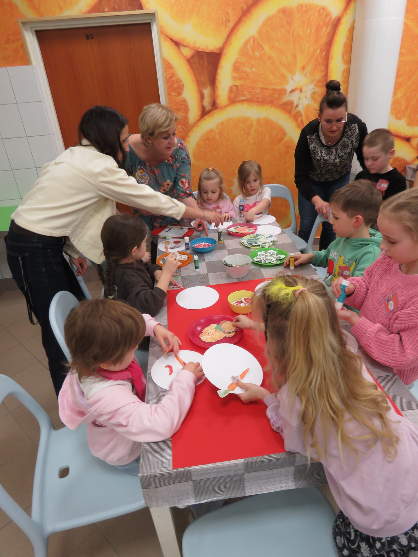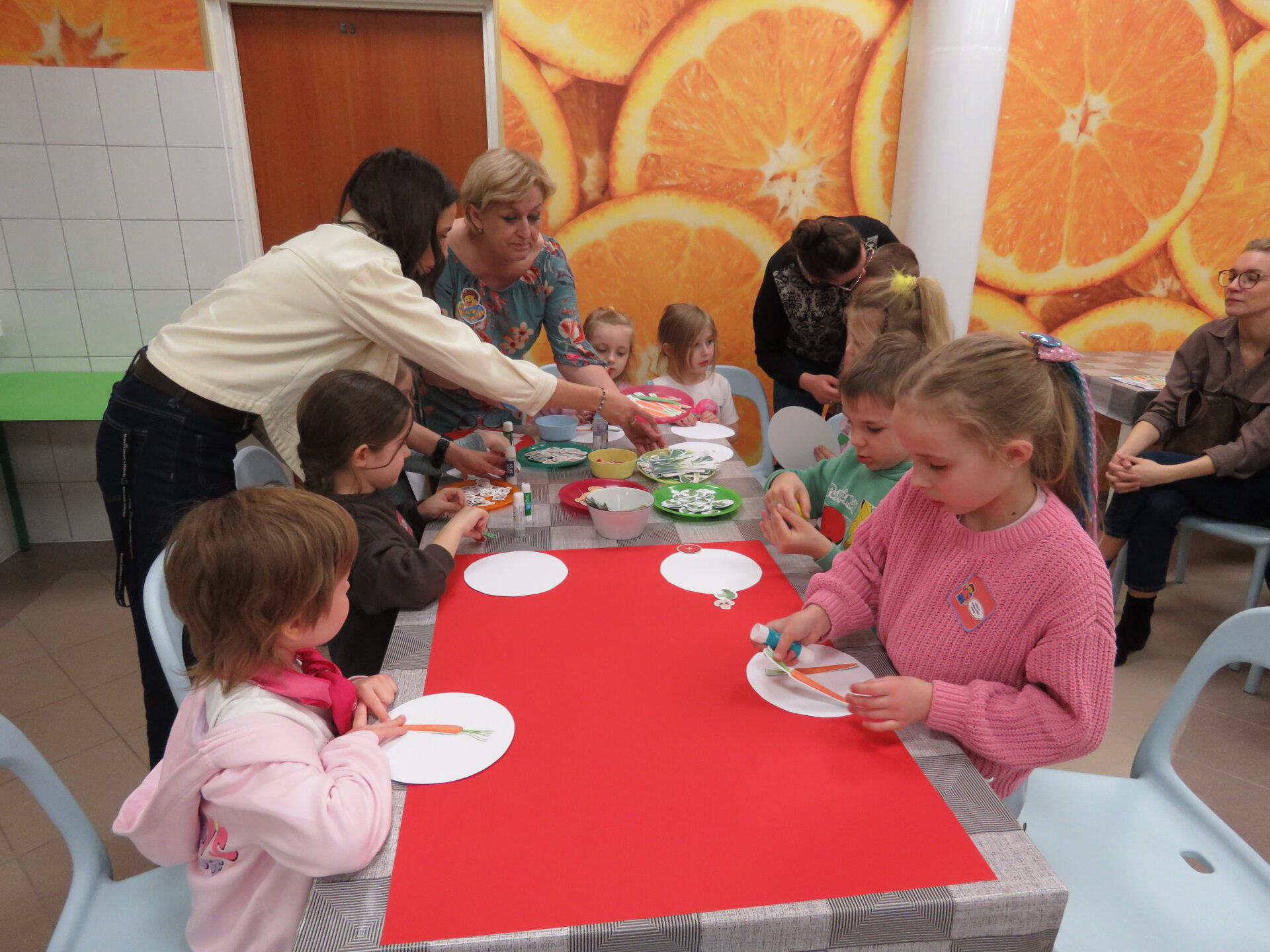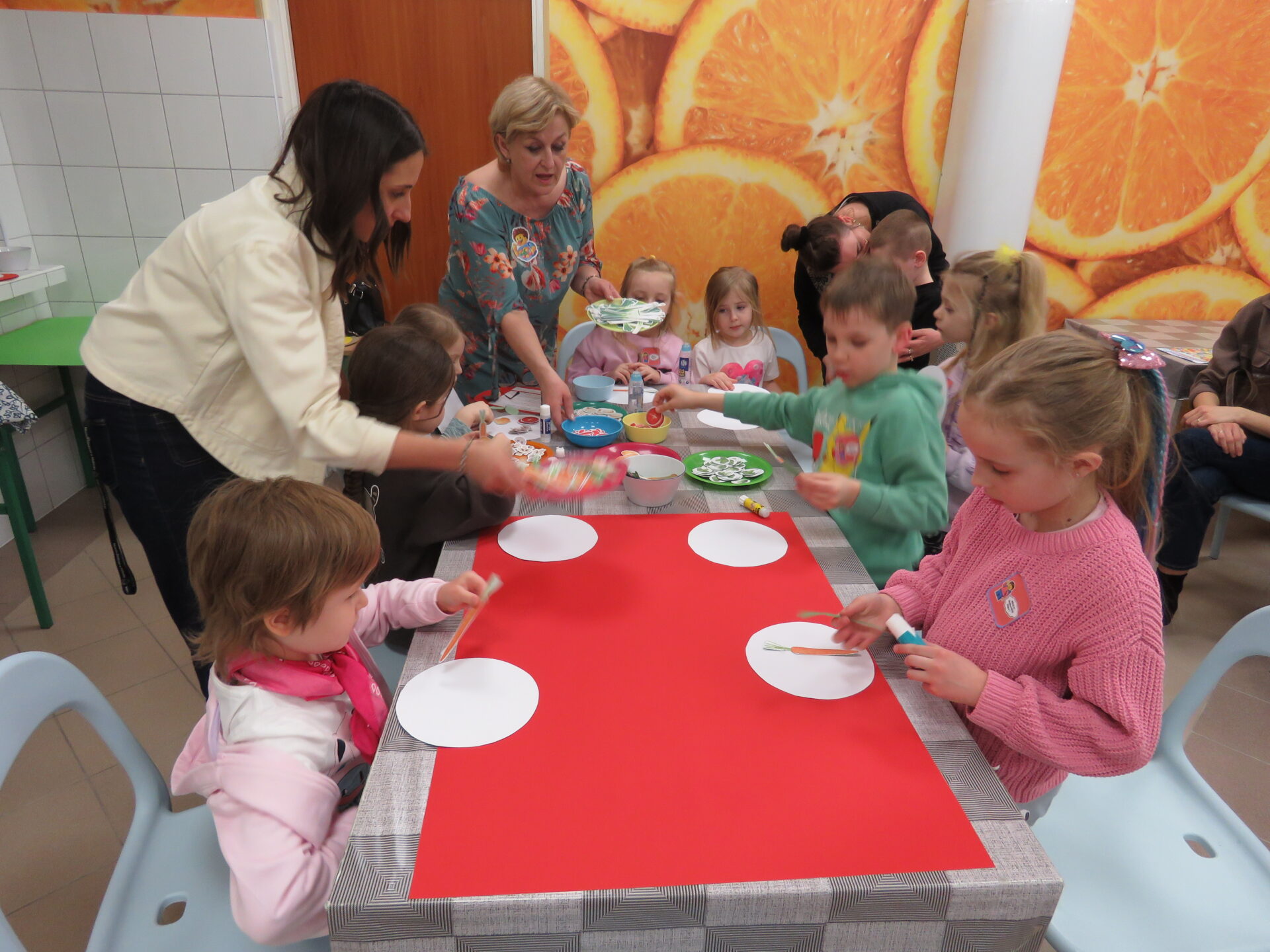 „Lego Master Chef- Wiem, że zdrowo jem”- w tym zakątku dzieci i rodziców przywitały Panie: Bożen Kalinowska- Sawicka i Pani Monika Kacperska. Dzieci poznały nazwy warzyw oraz ich prozdrowotne wartości. Dowiedziały się jakie witaminy zawierają między innymi: marchewka, por, brokuł, seler, ziemniaki. Dzieci jak zaczarowane słuchały o zaletach warzyw. Uczestnicy spotkania chętnie opowiadali o swoich ulubionych warzywnych przysmakach. Po krótkiej dyskusji dzieci wykonały prace plastyczną „Talerzyki zdrowia”. Każdy ułożył na talerzyku swoje ulubione warzywa. Na zakończenie dzieci samodzielnie przygotowywały zdrowe desery ze świeżych owoców i owocowych galaretek. Wsparciem dla dzieci przy doborze zdrowych przekąsek były Panie: Dorota Cybulska, Justyna Kujawa, Jolanta Kowalczyk – Okrucińska