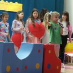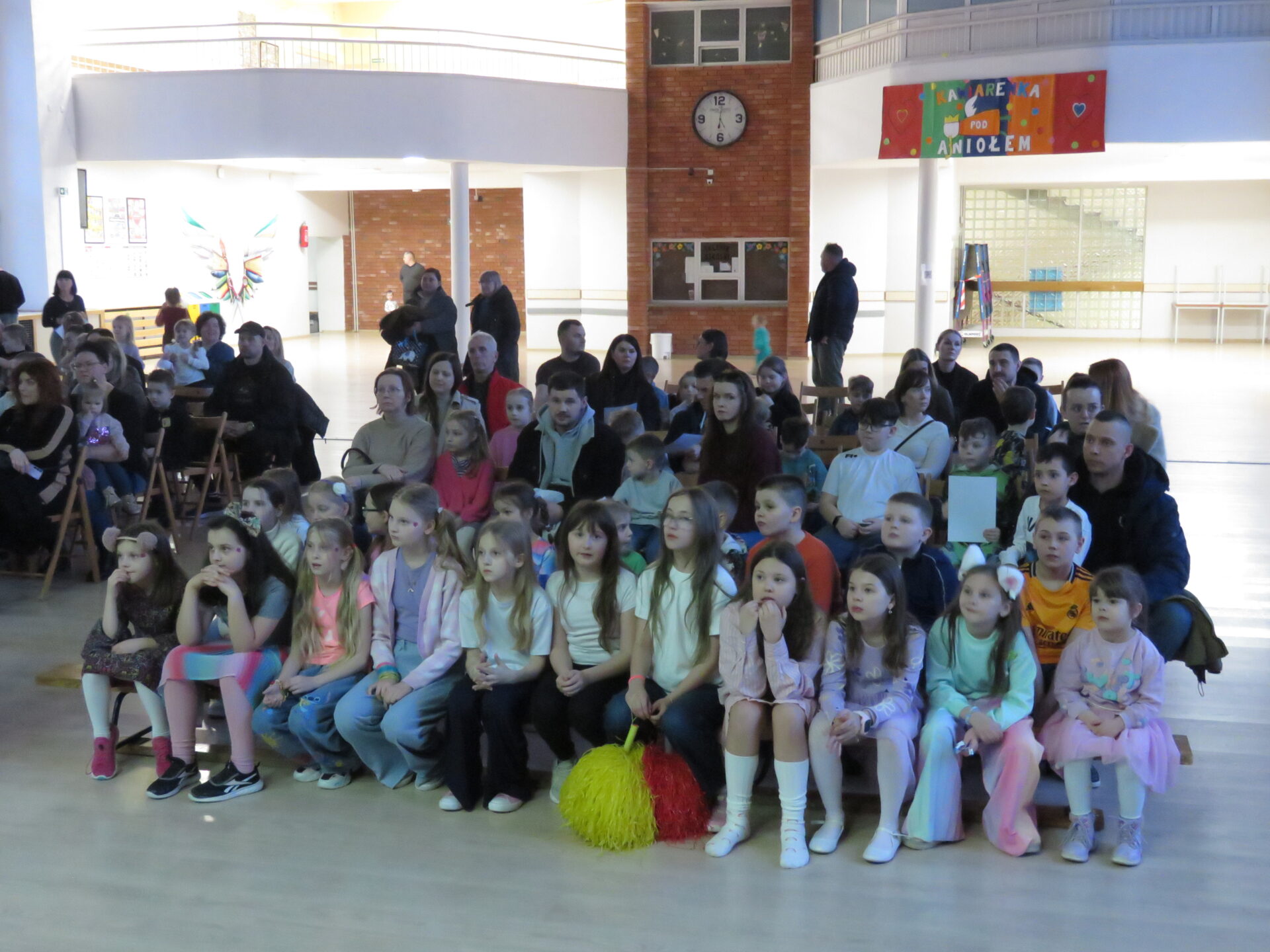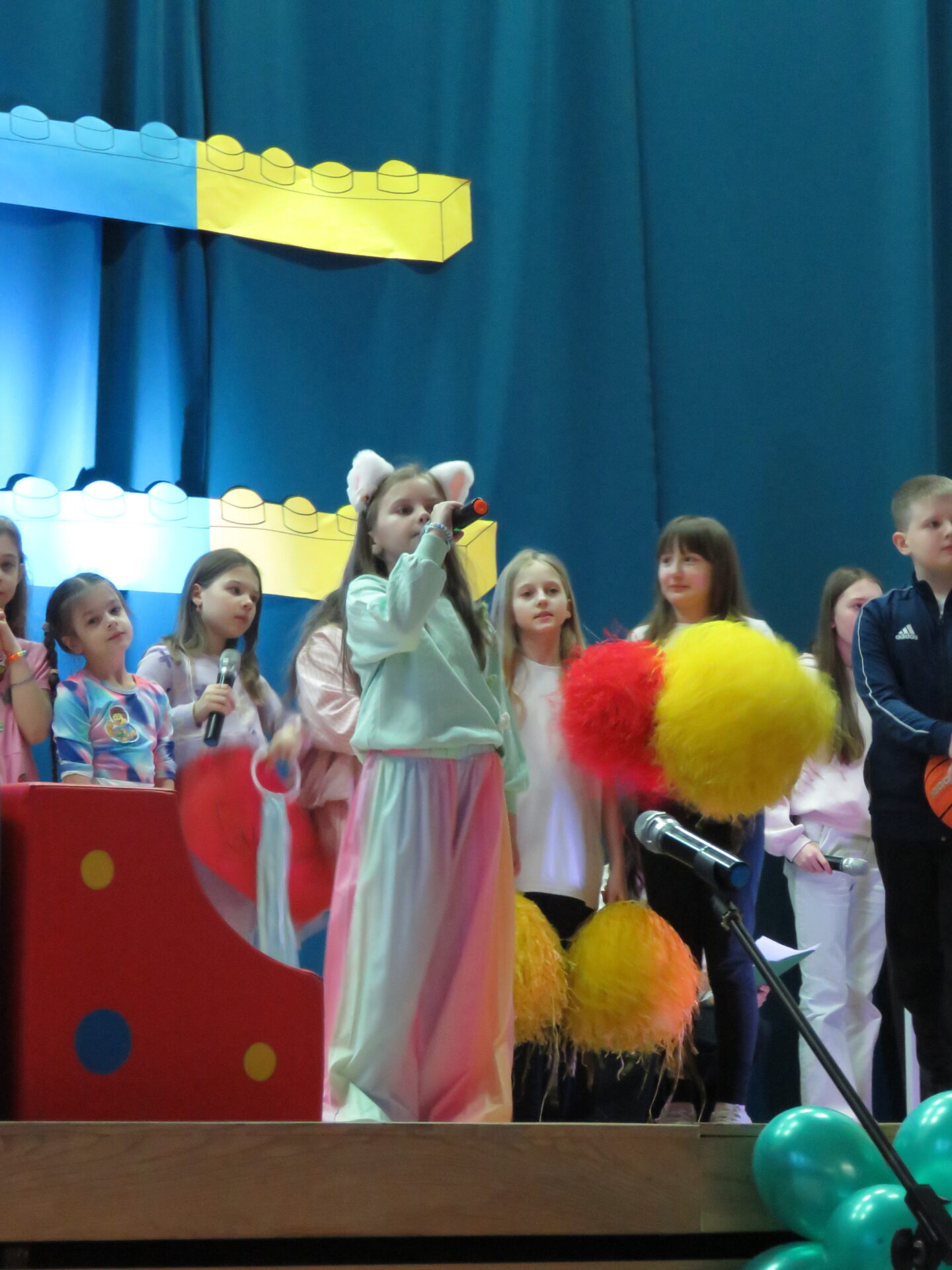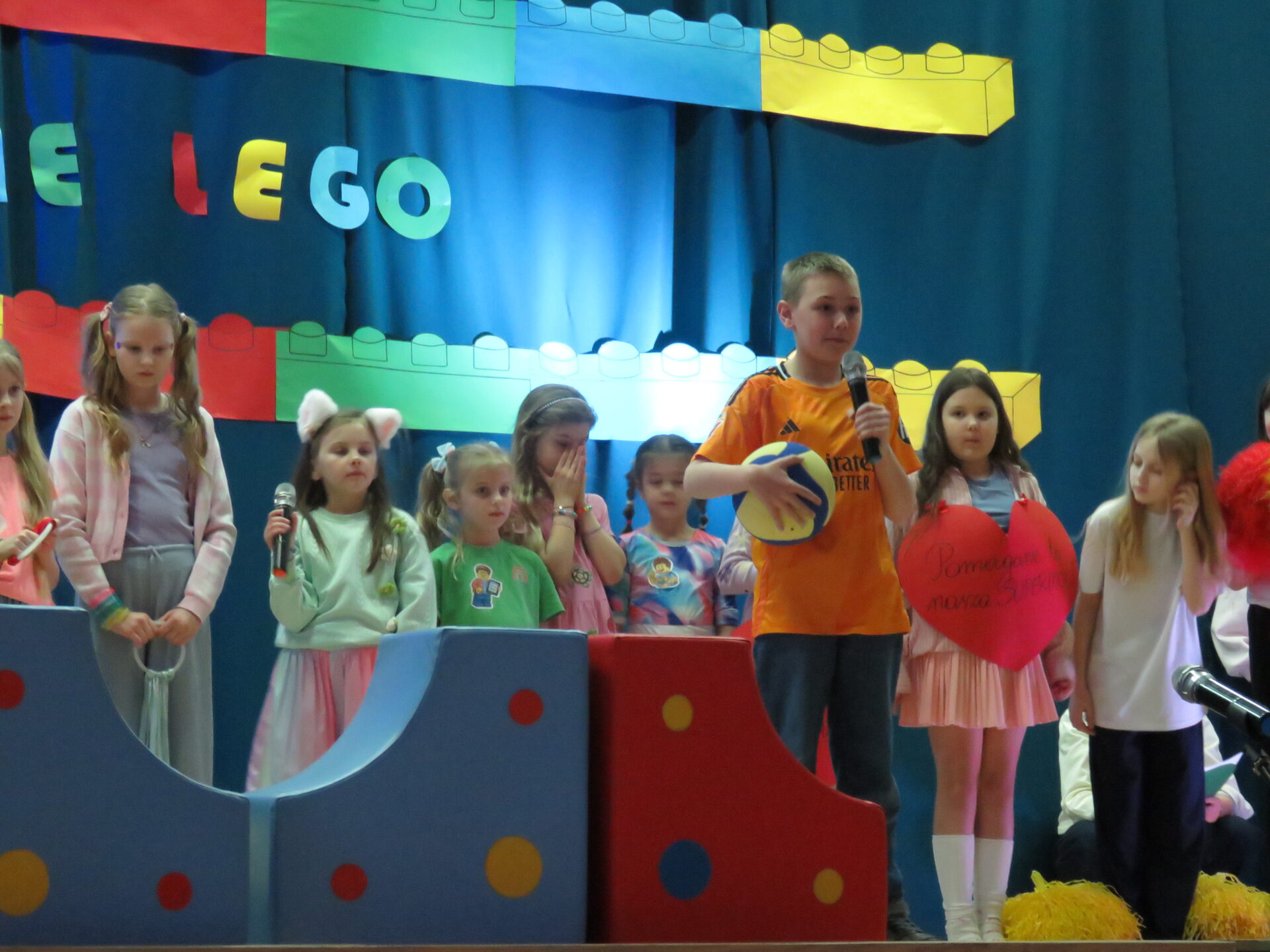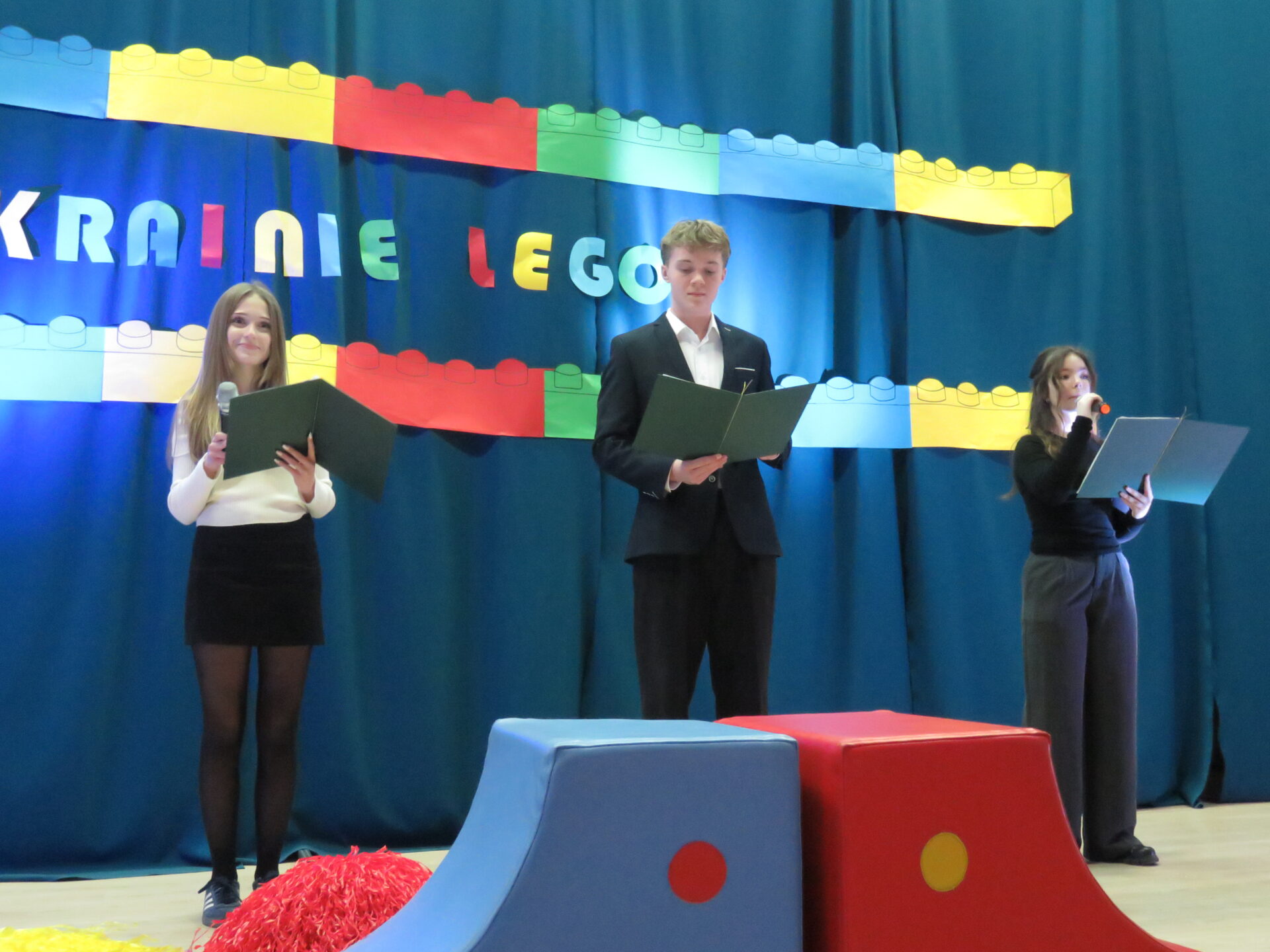Gdy wszystkie grupy odwiedziły wyjątkowe zakątki, dzieci i rodzice ponownie zebrali się w auli. Spotkanie wzbogacił występ wysportowanych dziewcząt – Julii Suchińskiej, Julii Kempczeńskiej, Julii Tytz, które wszystkich zaprosiły do tańca. Radość, błyszczące oczy oraz wypieki na twarzach dzieci świadczyły o kreatywnie i miło spędzonym popołudniu w Krainie Lego Piątaszka.