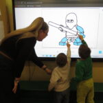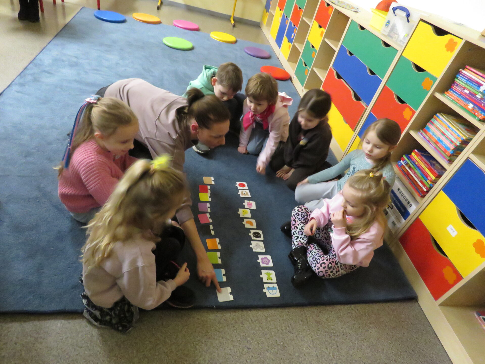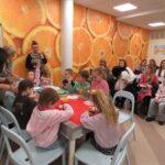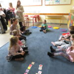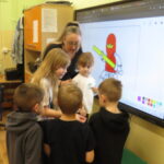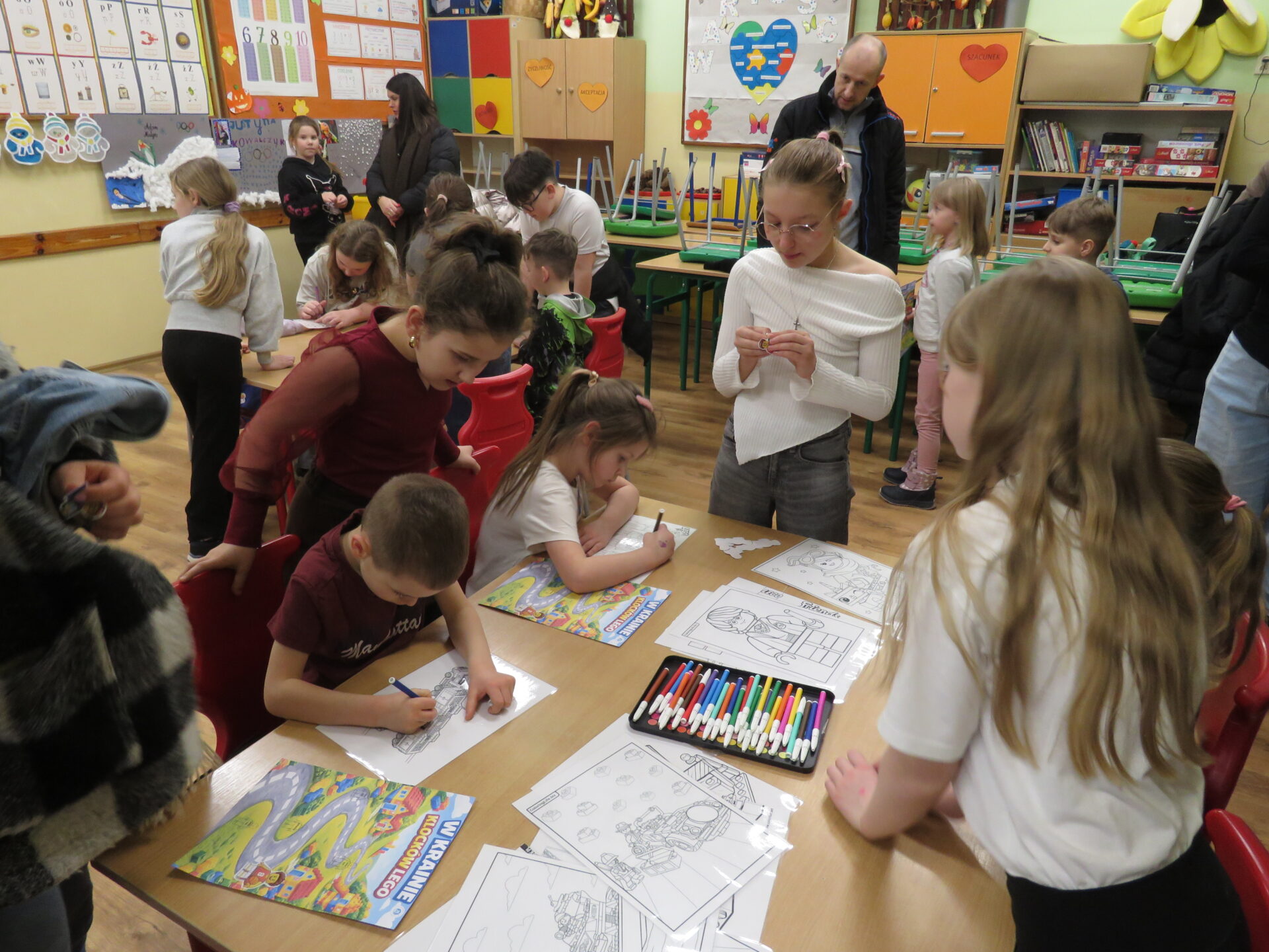 „ Hello, Lego friends”- Pani Anita Piazza zaprosiła dzieci w niezwykłą podróż do krainy języka angielskiego. Uczestnicy spotkania przywitali się i przedstawili po angielsku. Dzieci odważnie i z zaciekawieniem uczestniczyły w kolejnych przygotowanych przez Panią zadaniach: zabawa ruchowa z wykorzystaniem tablicy multimedialnej, rozpoznawanie kolorów, itd. Po wykonaniu wszystkich zadań każdy otrzymał naklejkę.