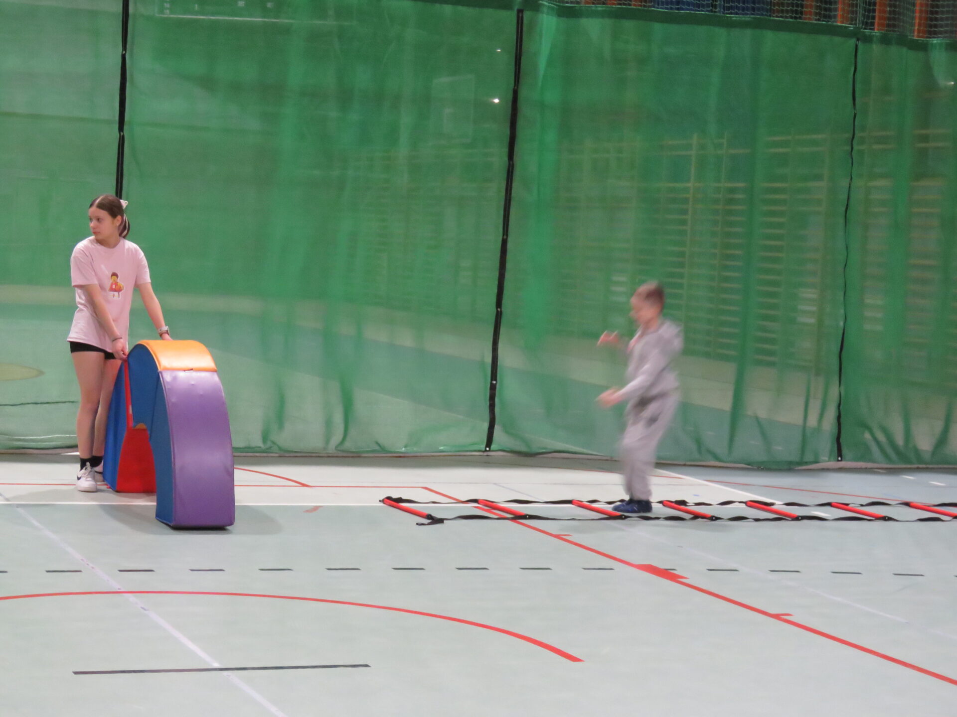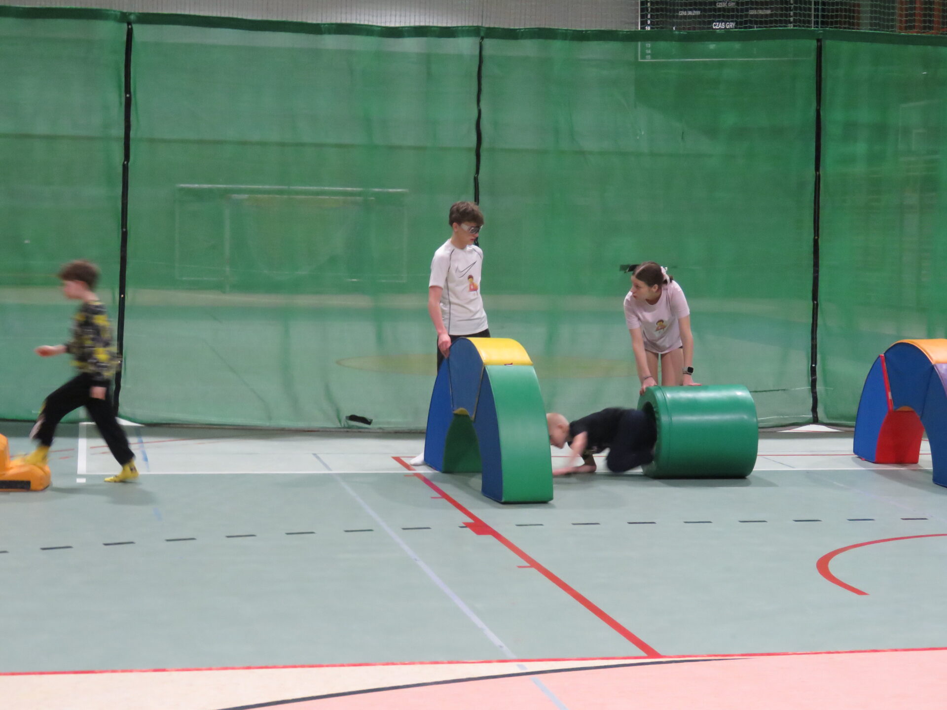 „ Lego mistrzowie- zabawy sportowe”- Pani Sylwia Kapuścińska- Baca oraz Monika Walentynowicz wraz z uczniami z klasy 8c: Julią Suchińską, Julią Kempczeńską, Julią Tytz, Piotrem Kempczeńskim i Dawidem Jarońskim przygotowały dla dzieci szereg zadań –kozłowanie piłką, tor przeszkód, tunele, ścieżki sensoryczne. Uczestnikom sportowych zmagań towarzyszył dobry humor i hasło „W zdrowym ciele – zdrowy duch”.