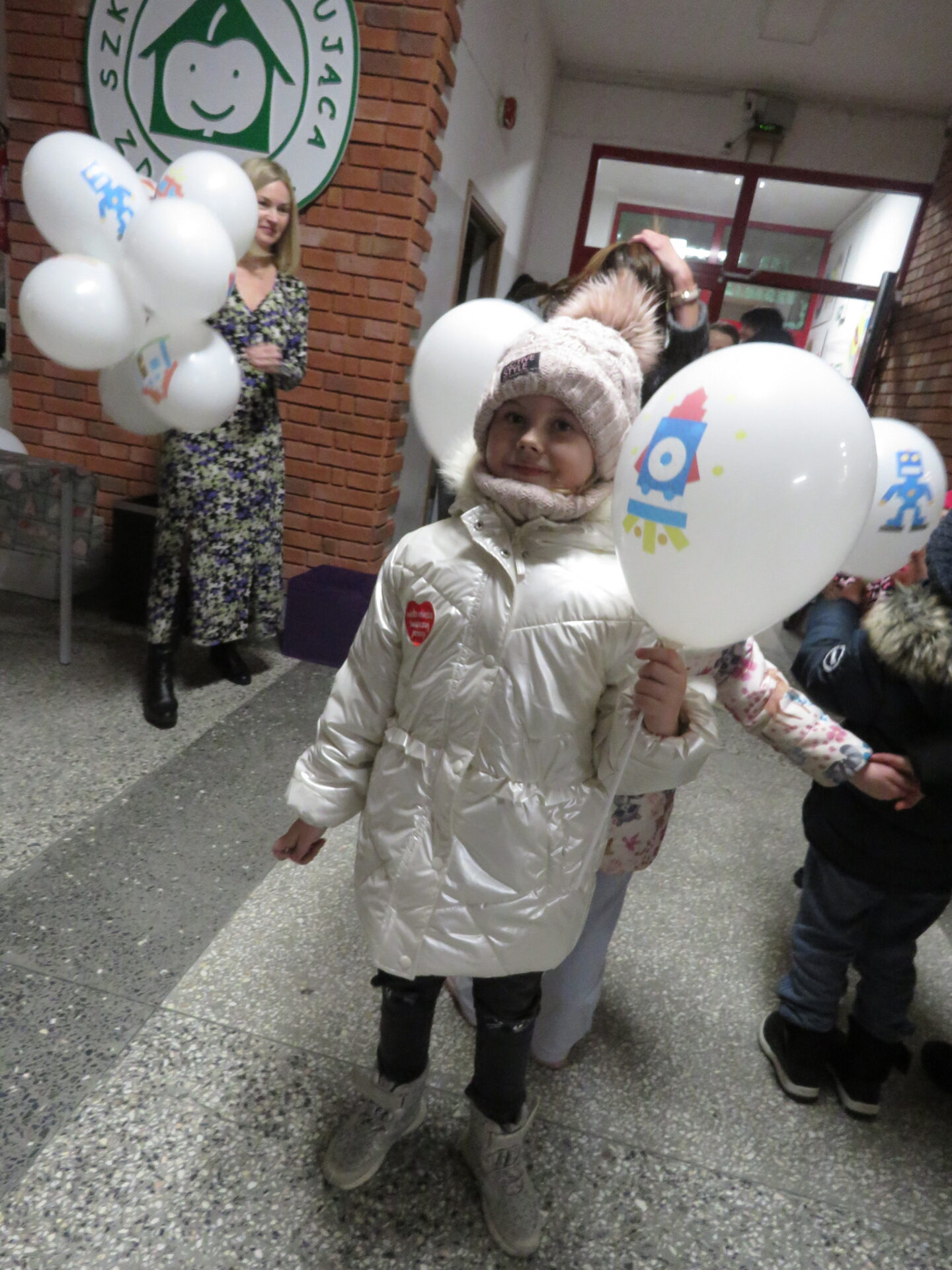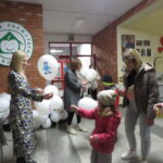 Przy wyjściu ze szkoły naszych gości żegnały Panie Agata Serzysko, Beata Komoszyńska i Magdalena Barwińska- Kubaszewska i obdarowywały lego balonami.