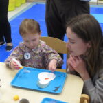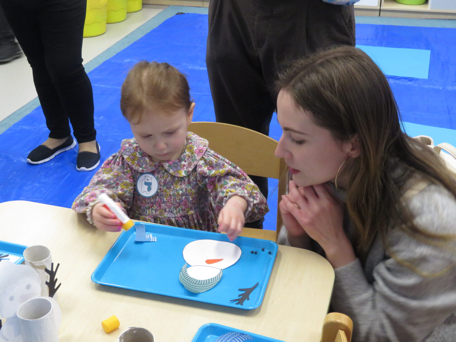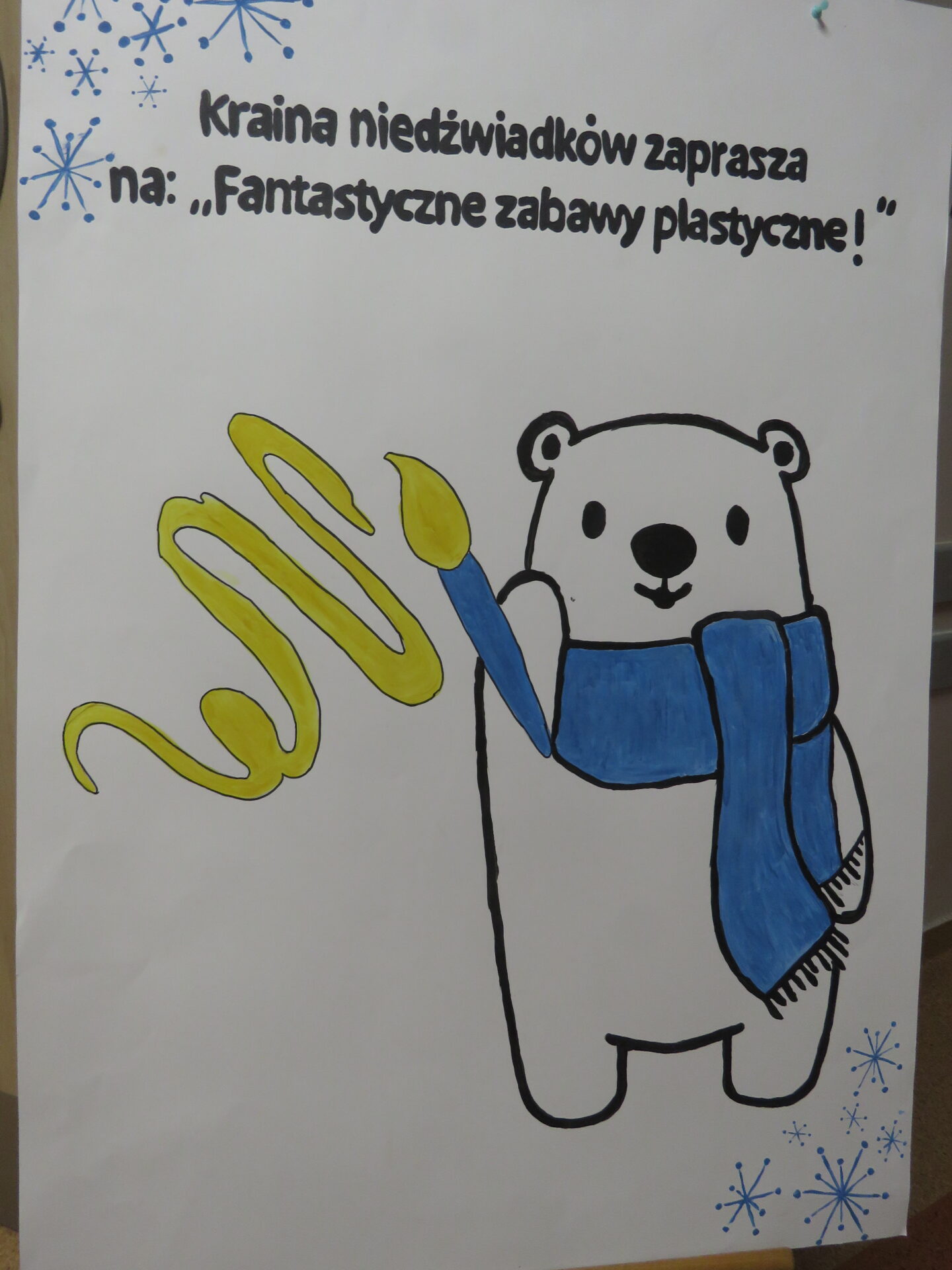 Kraina niedźwiadków zaprosiła dzieci na: ,,Fantastyczne zabawy plastyczne!”. Dzieci ozdabiały sylwety bałwanka, a następnie przyklejały go do rolki po papierze.