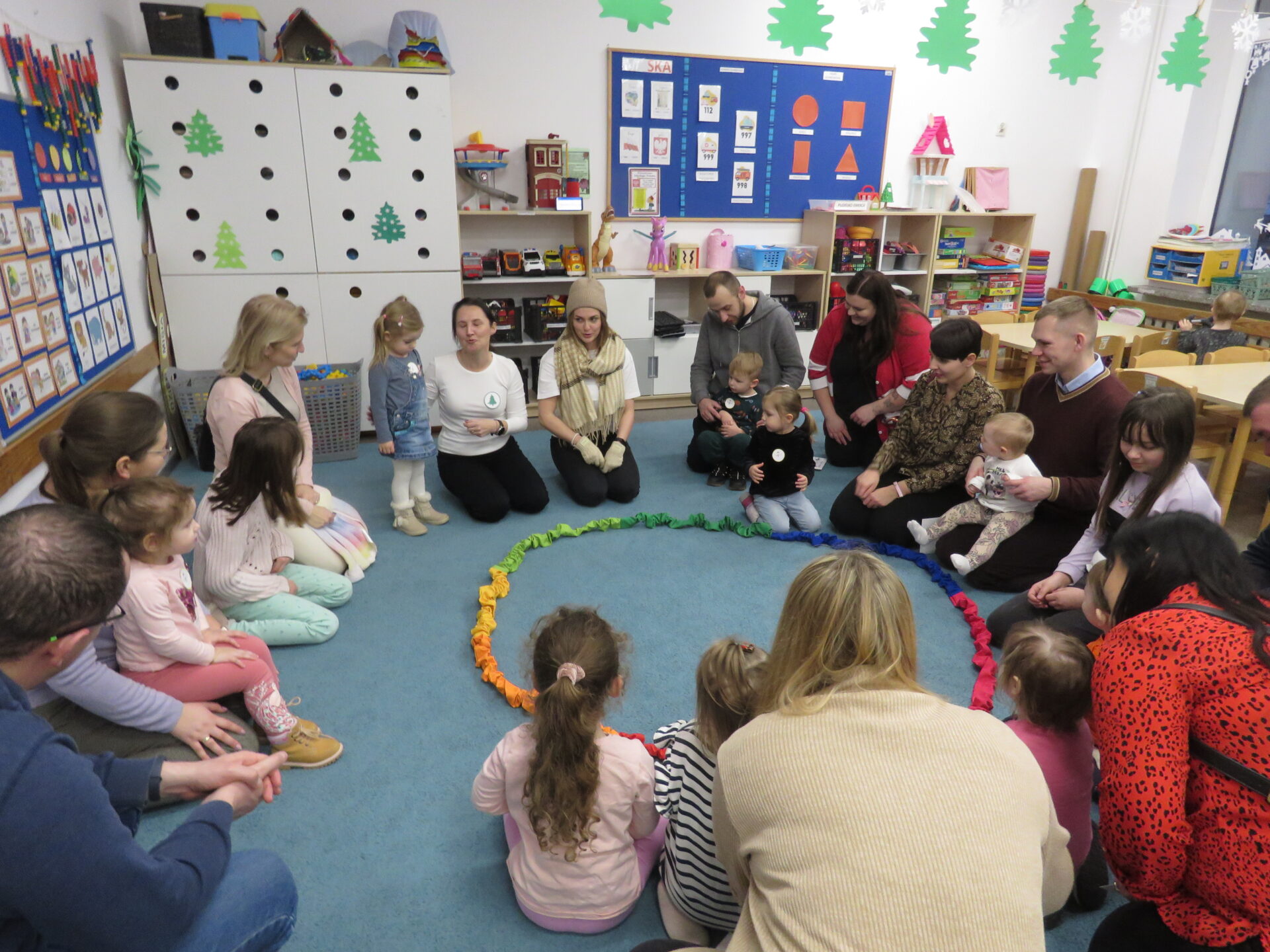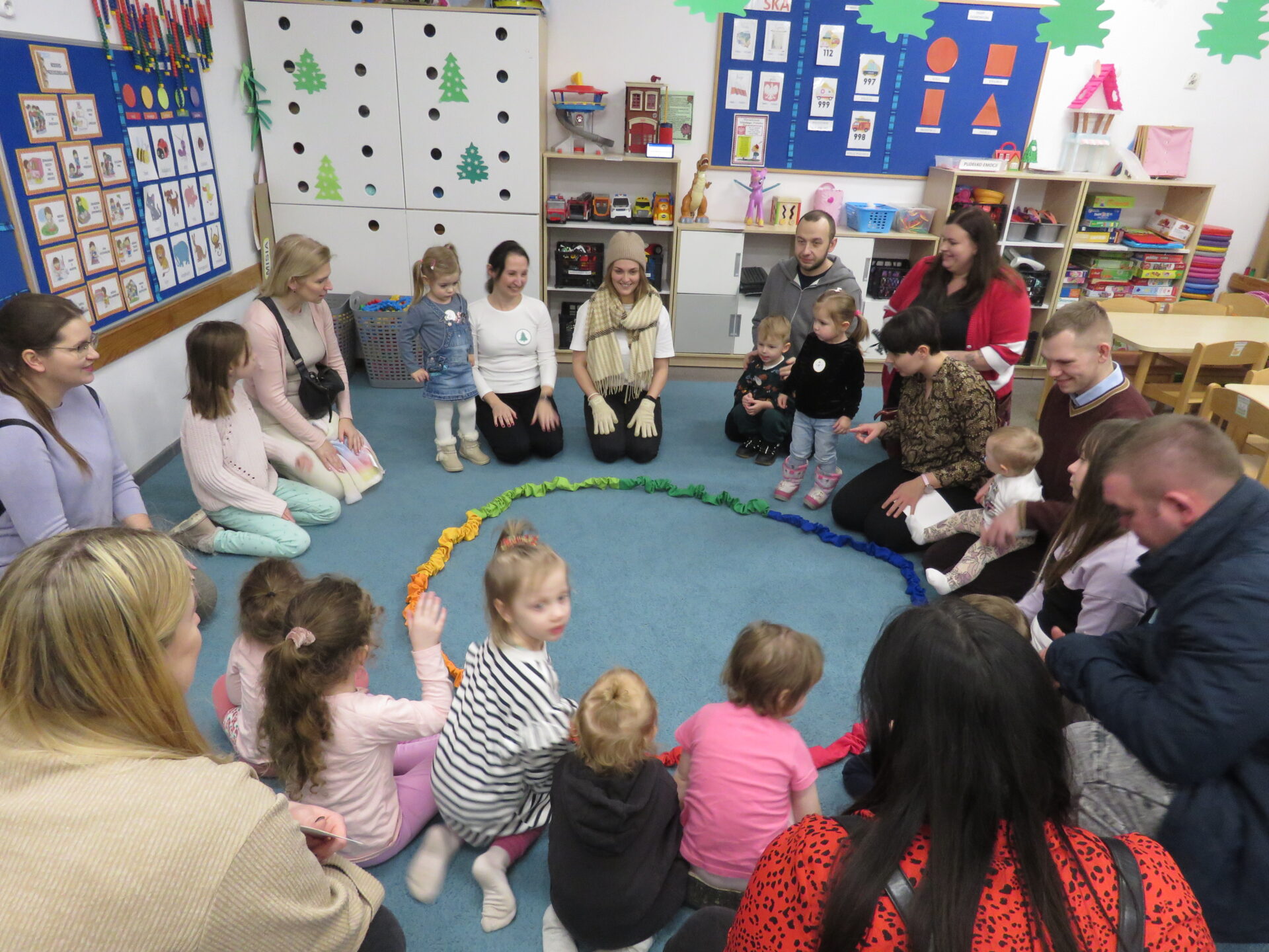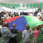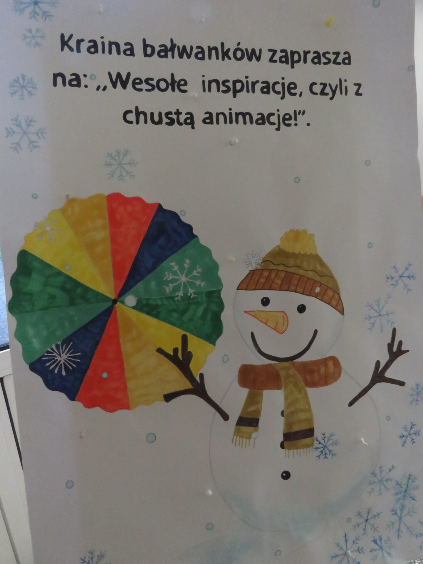 Kraina bałwanków pokazała maluchom ,,Wesołe inspiracje, czyli z chustą animacje!”. W ramach tego spotkania dzieci wykonywały różne ćwiczenia z użyciem chusty animacyjnej..