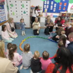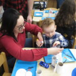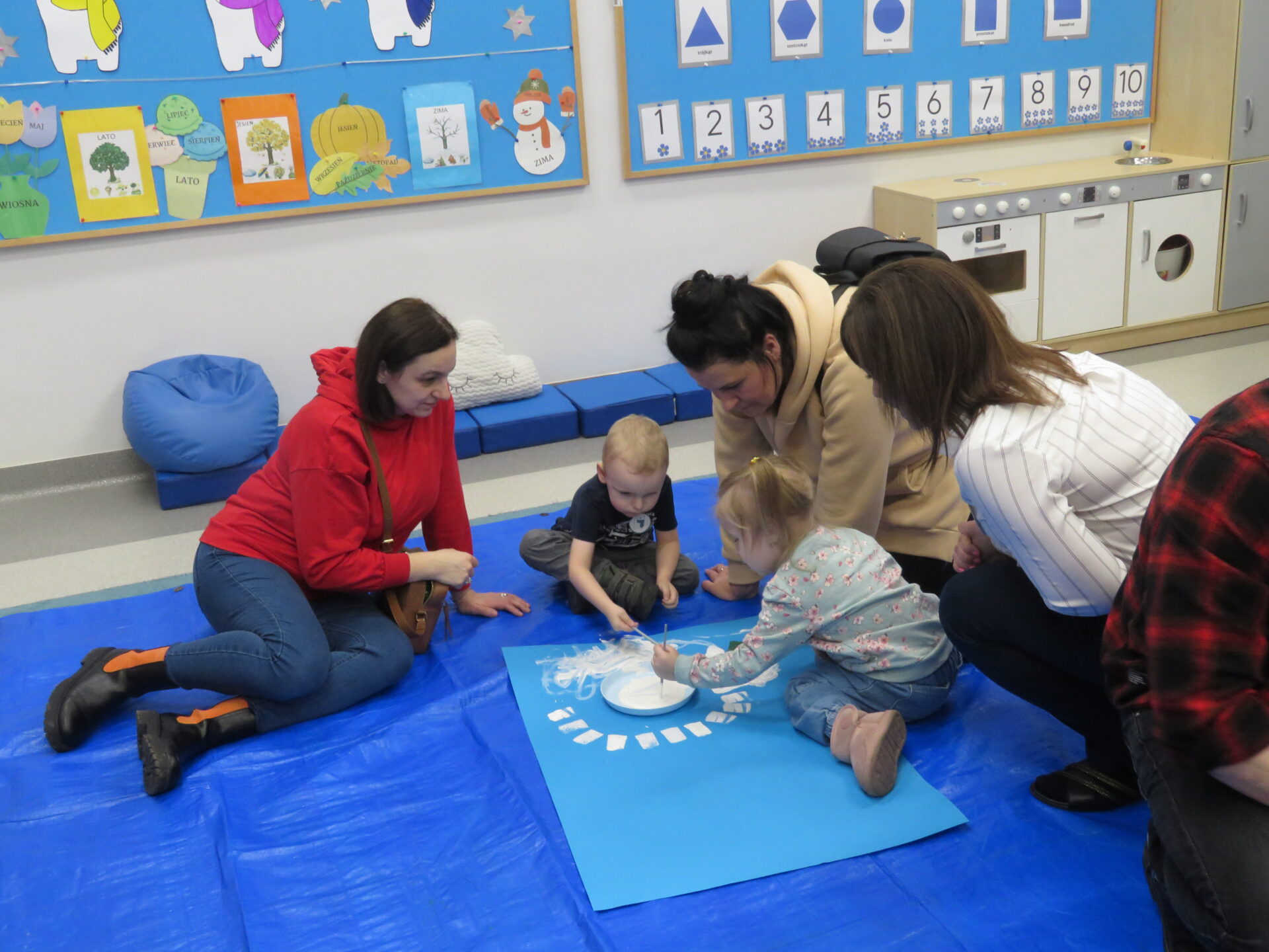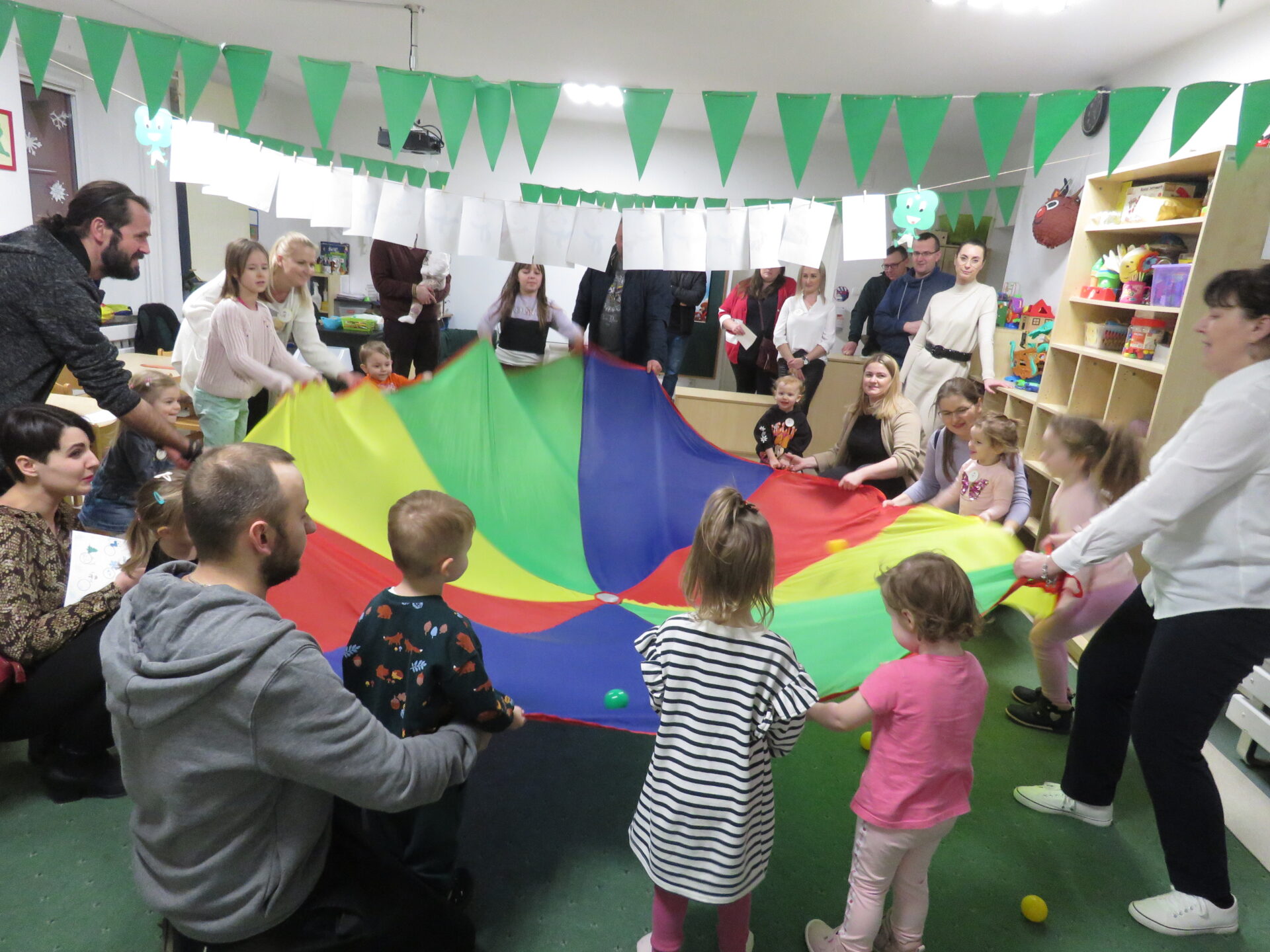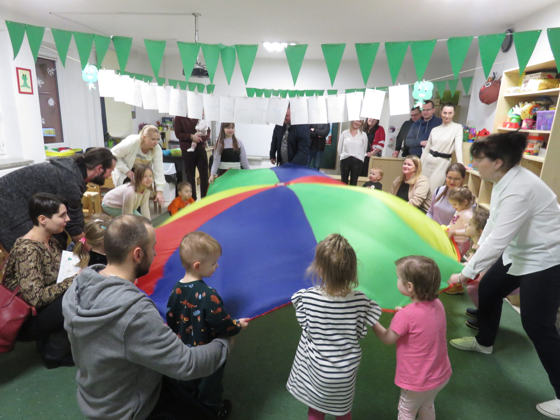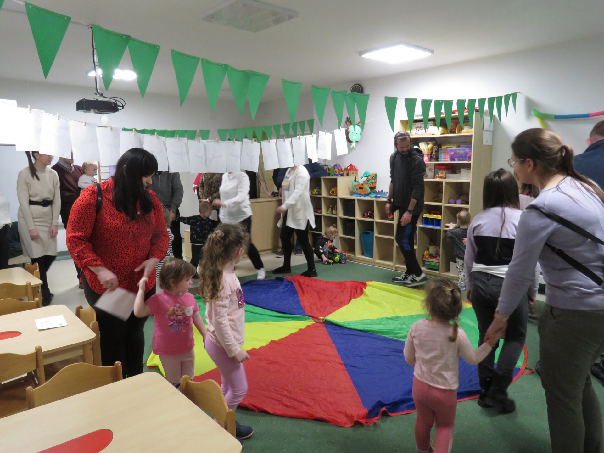 Następnie zaprosiliśmy rodziców z dziećmi do poszczególnych przewodników. Maluchy odwiedzały sale przedszkolne uczestnicząc w zabawach tematycznie związanych z hasłem przewodnim Dnia Otwartego Przedszkola – Zimowe przygody..