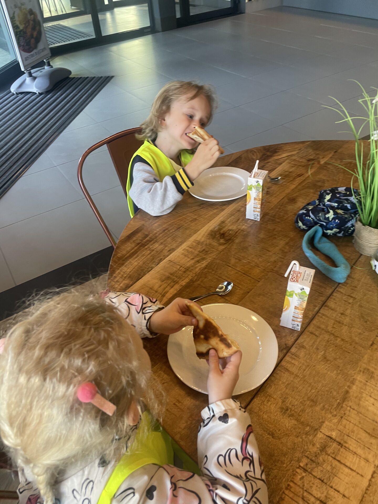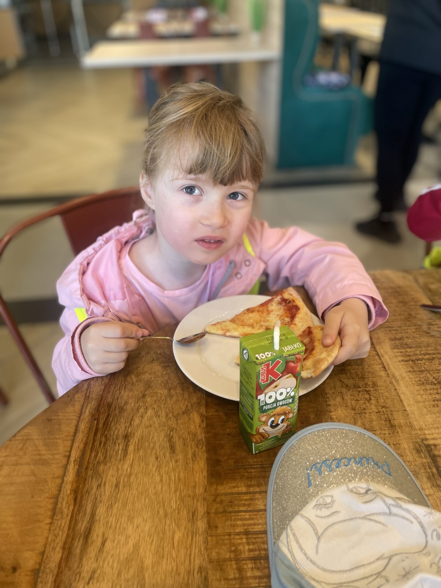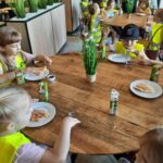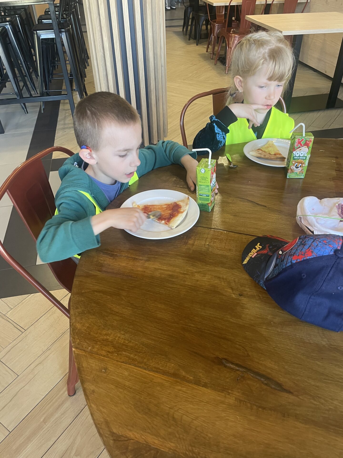 Dzień Dziecka był dla przedszkolaków z grup „Pszczółki” i „Słoneczniki” dniem pełnym wrażeń kulinarnych. Pierwszą z atrakcji był wspólny spacer do pizzerni „Bastion”. Celem wycieczki było zapoznanie dzieci z wyglądem i wyposażeniem pizzerii. Dzieci miały możliwość przypomnienia sobie zasad kulturalnego zachowania się w pizzerii, a także przy stole podczas posiłku. Jadły z wielkim apetytem przygotowaną pizzę. Przedszkolaki stwierdziły, że świetnie się bawiły i z chęcią jeszcze tu wrócą. Na koniec wizyty dzieci wykonały pamiątkowe zdjęcia.