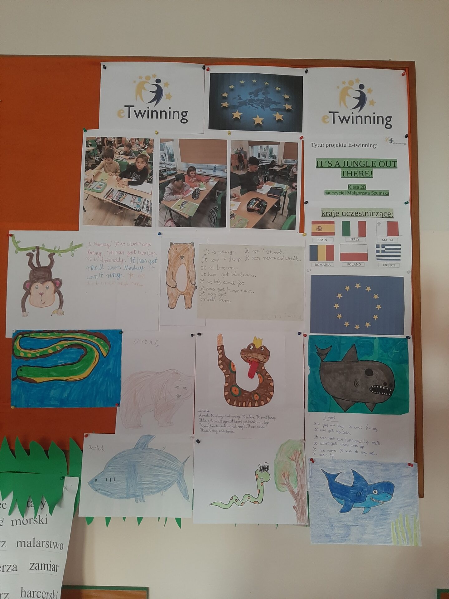 Projekt eTwinning pod tytułem „It’s a jungle out there!”, w który zaangażowały się klasy 2b i 3a, pomału dobiega końca. Nasi uczniowie korespondowali ze swoimi rówieśnikami z Hiszpanii i Włoch, ale miały też okazję zobaczyć pracę nad projektem dzieci z Rumunii, Grecji, Turcji i Malty.