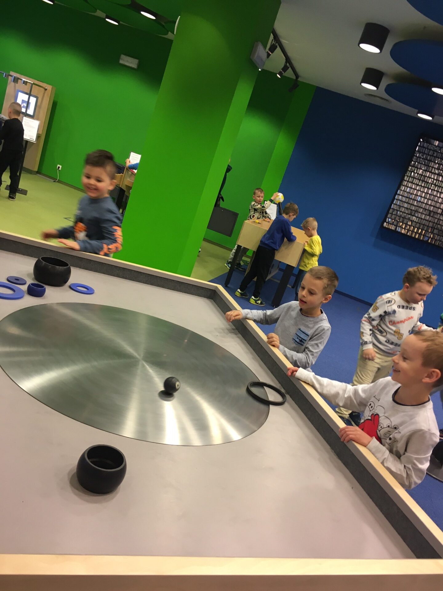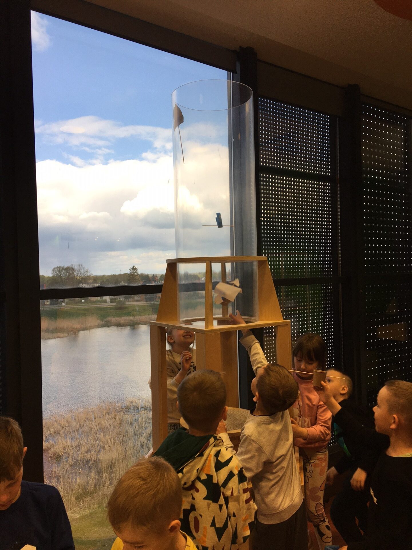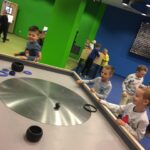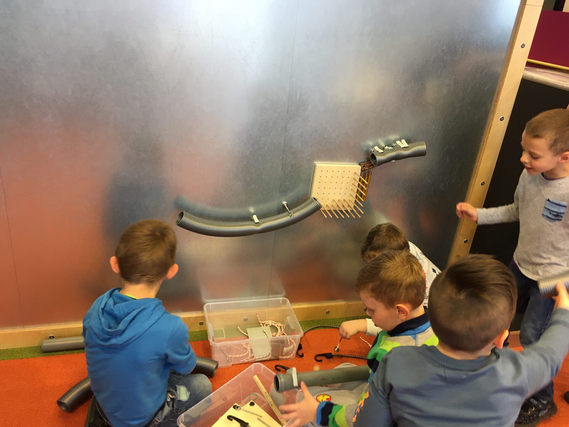 Na zakończenie zajęć udaliśmy się do Majsterni, która stanowi przestrzeń warsztatową. Dzieci otrzymały zestawy składające się z zadania do wykonania i pudełka zawierającego potrzebne materiały. Nie otrzymały instrukcji, jak to zrobić krok po kroku – z wyzwaniem zmierzyły się samodzielnie, a ograniczała je jedynie wyobraźnia. I tak np. tworzyły przedmioty, które miały za zadanie latać w specjalnej tubie, albo konstruowały katapultę z różnych materiałów. Wymagało to niezwykłej kreatywności i umiejętności współpracy w grupie.