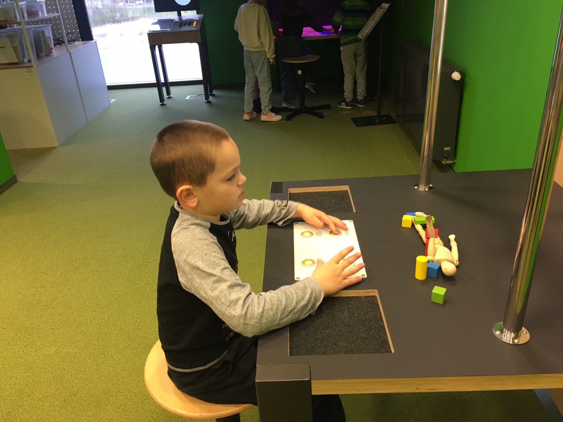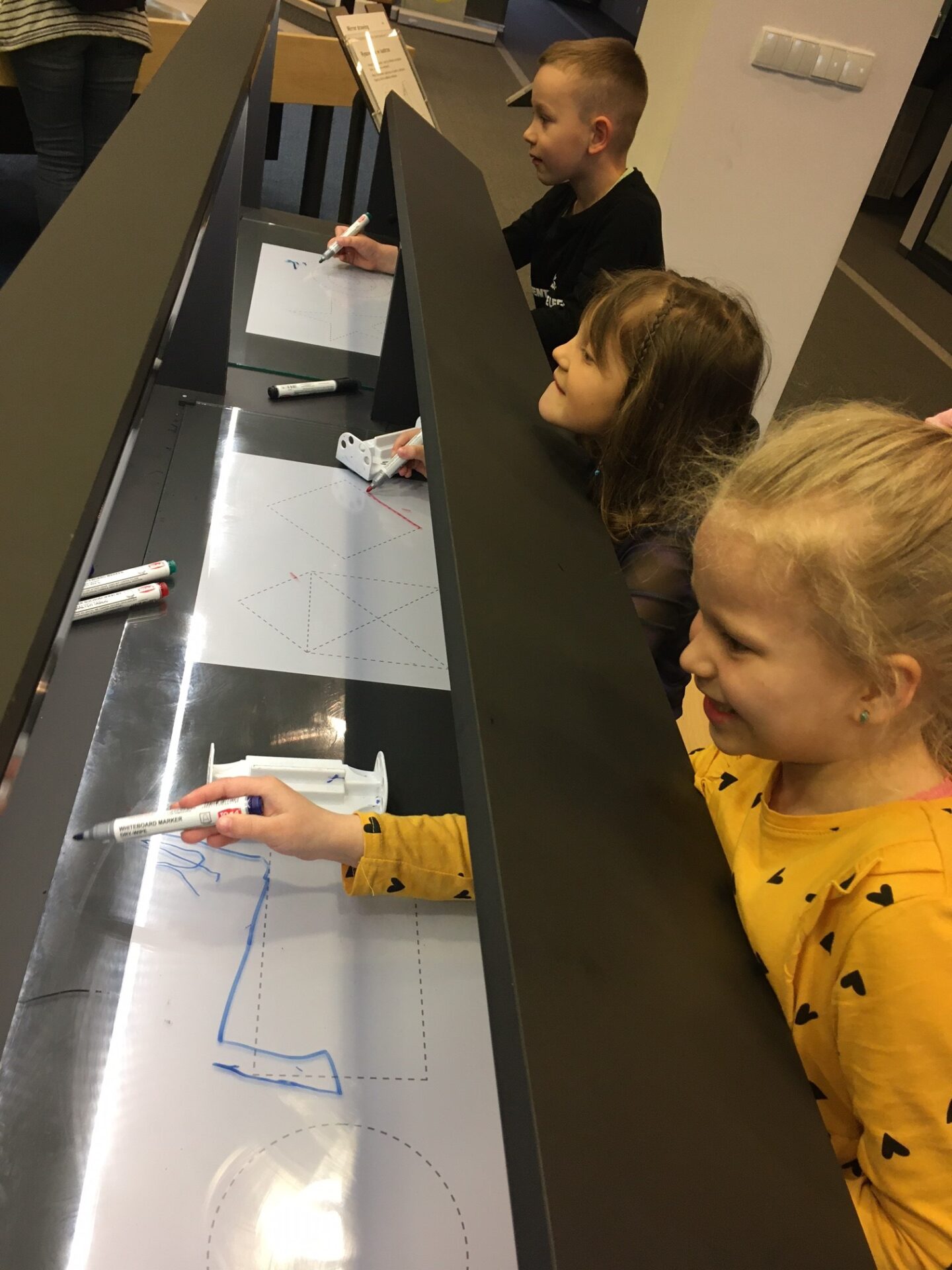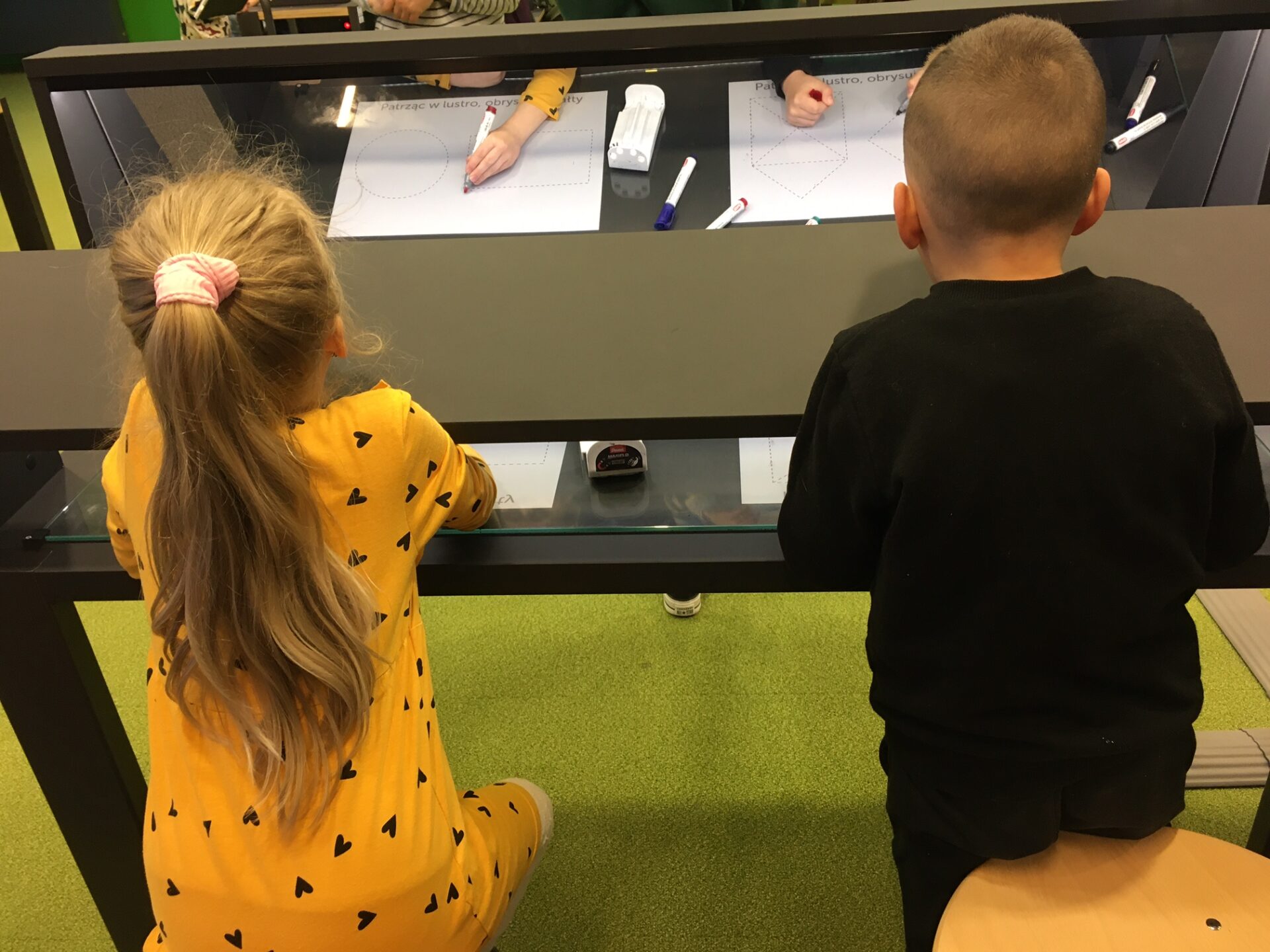 Na zakończenie zajęć udaliśmy się do Majsterni, która stanowi przestrzeń warsztatową. Dzieci otrzymały zestawy składające się z zadania do wykonania i pudełka zawierającego potrzebne materiały. Nie otrzymały instrukcji, jak to zrobić krok po kroku – z wyzwaniem zmierzyły się samodzielnie, a ograniczała je jedynie wyobraźnia. I tak np. tworzyły przedmioty, które miały za zadanie latać w specjalnej tubie, albo konstruowały katapultę z różnych materiałów. Wymagało to niezwykłej kreatywności i umiejętności współpracy w grupie.