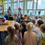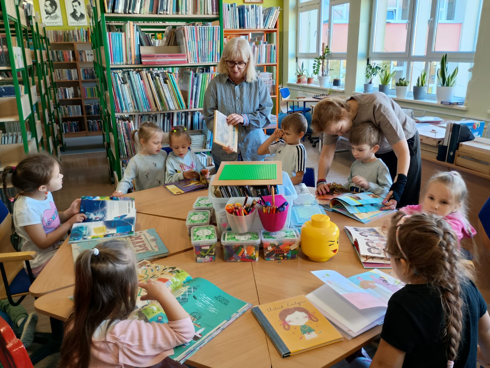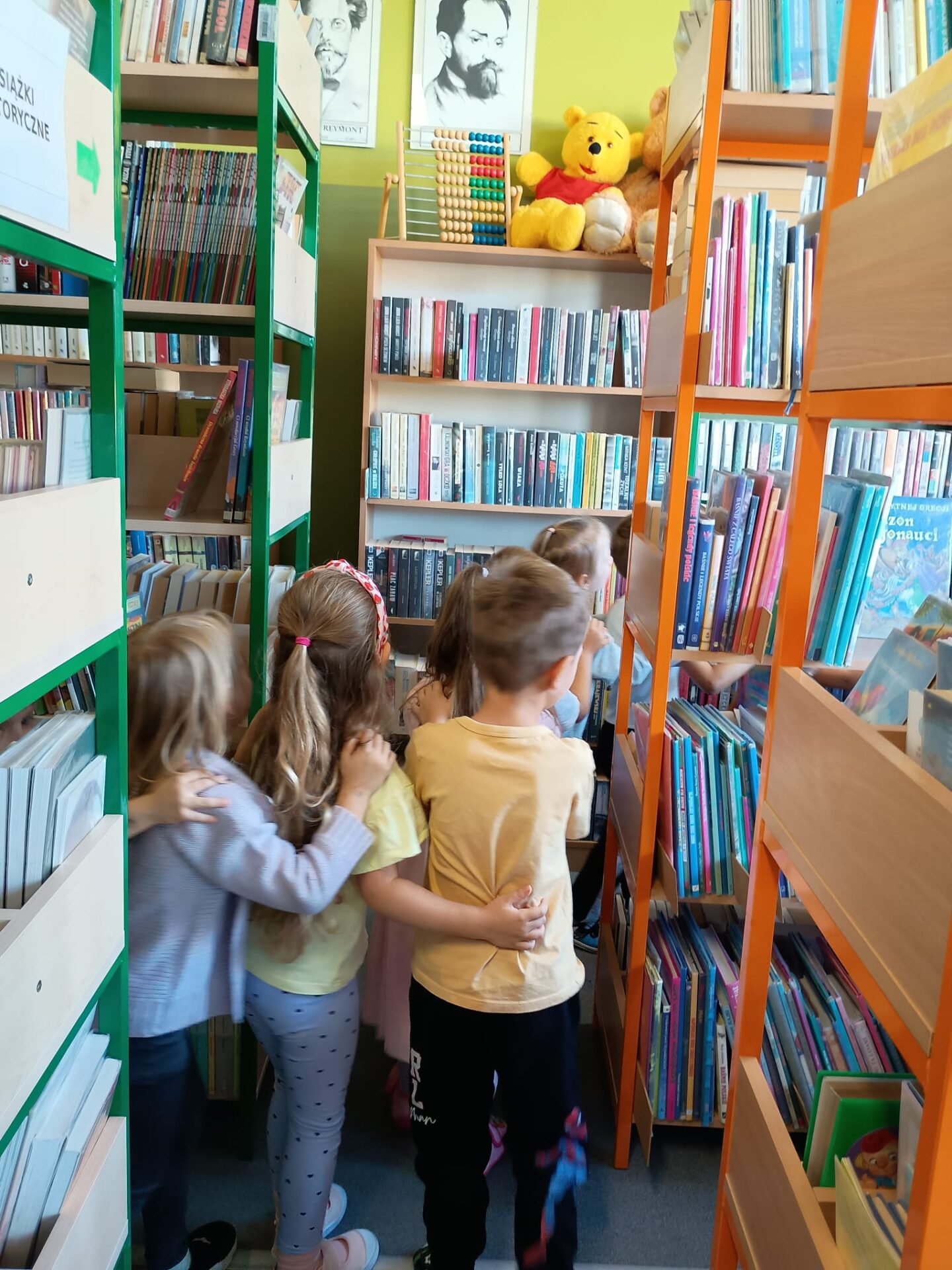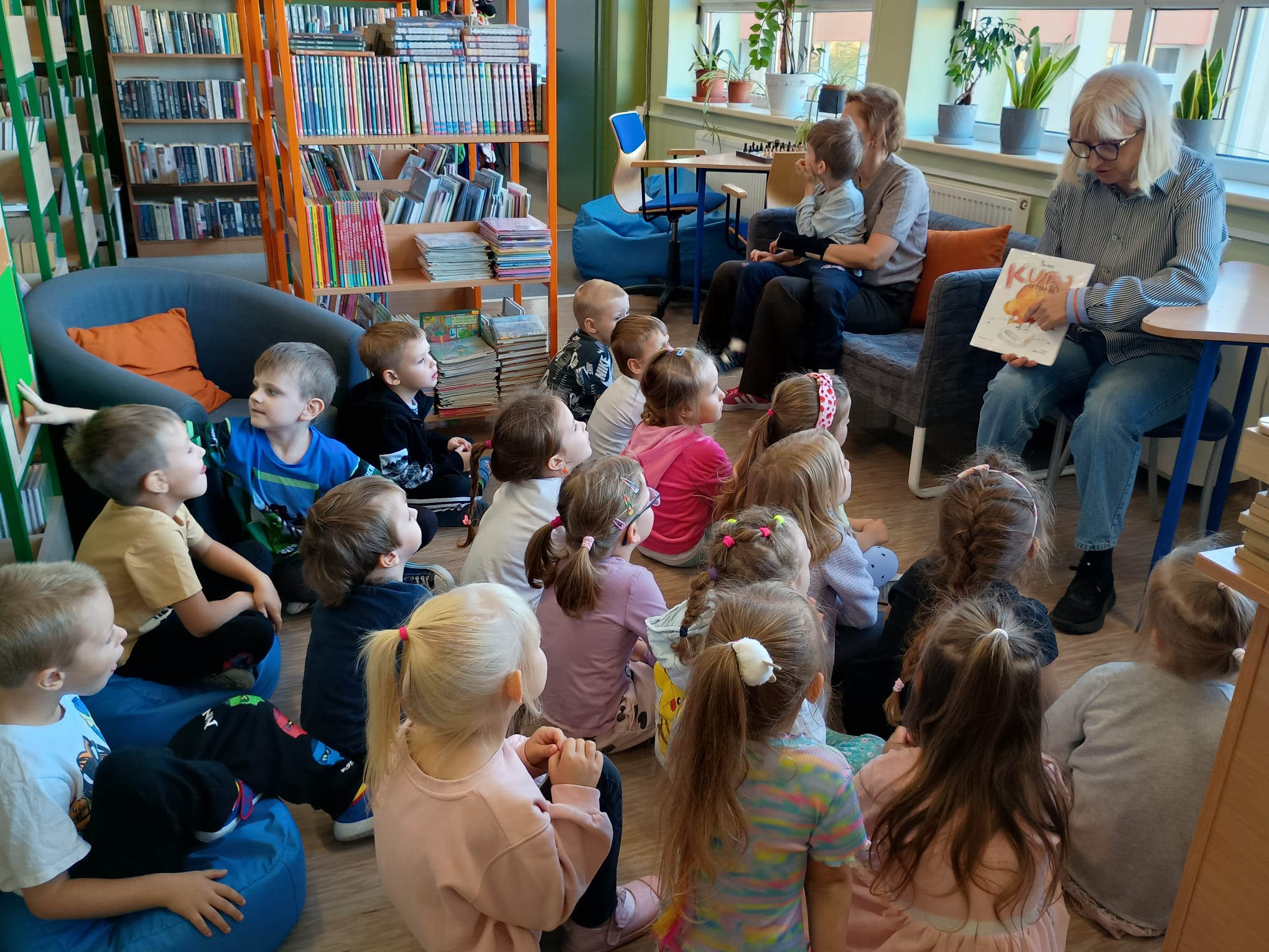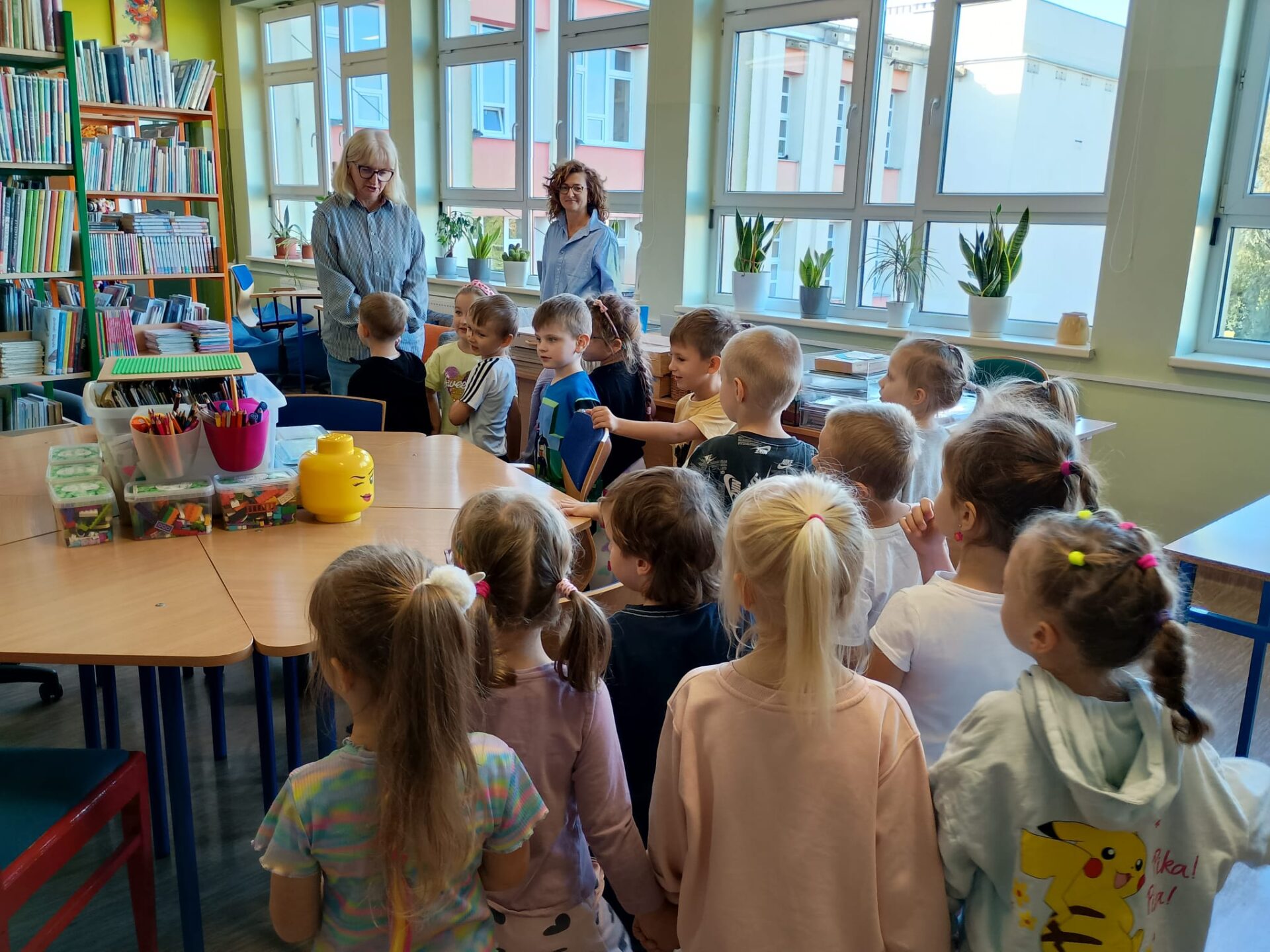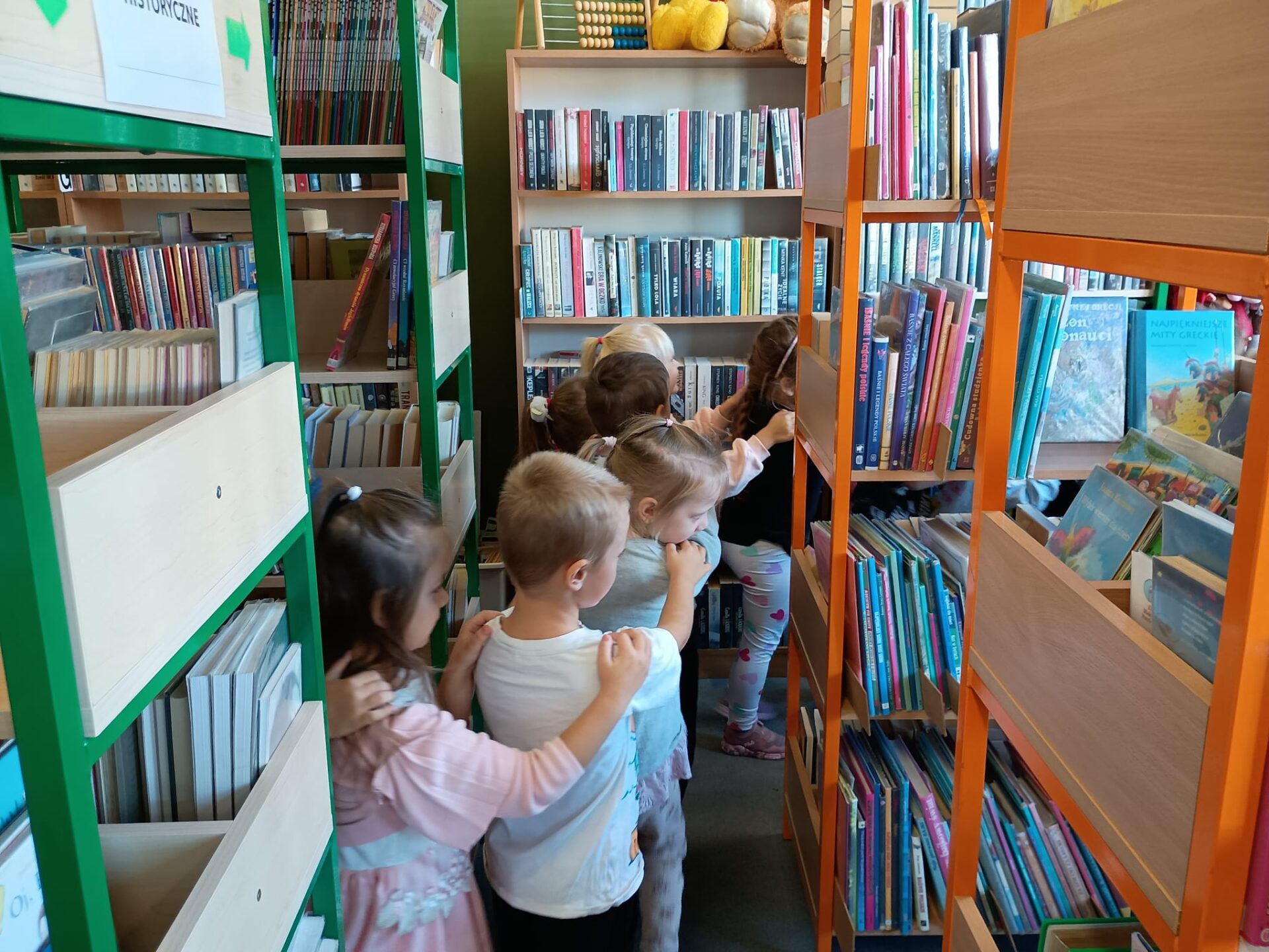 Grupa „FIOŁKI” tego dnia wybrała się do biblioteki szkolnej. Z wielką radością dzieci zapoznały się z magicznym miejscem. Pani bibliotekarka przeczytała dzieciom krótką bajeczkę pt.: „Kura, co tyła na diecie”. Przedszkolaki słuchały z zaciekawieniem, a po wysłuchaniu bajeczki odpowiadały na zadawane pytania i zagadki o zwierzętach. Następnie dzieci zwiedziły bibliotekę, zapoznały się z pracą bibliotekarza i z wielkim zainteresowaniem oglądały książki znajdujące się na półkach, ale szczególnie zainteresował ich dział dla najmłodszych. Spotkanie odbyło się w miłej atmosferze, a uśmiechów i wrażeń nie było końca.
