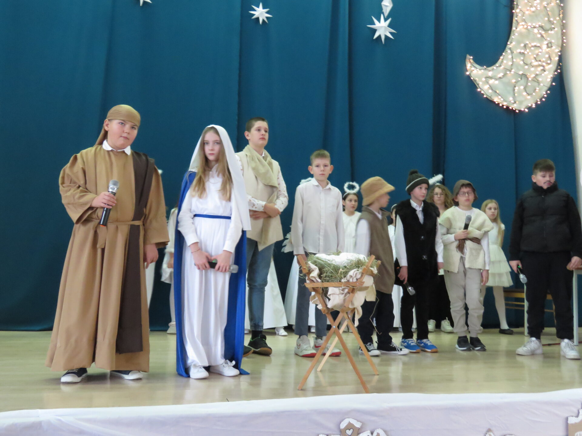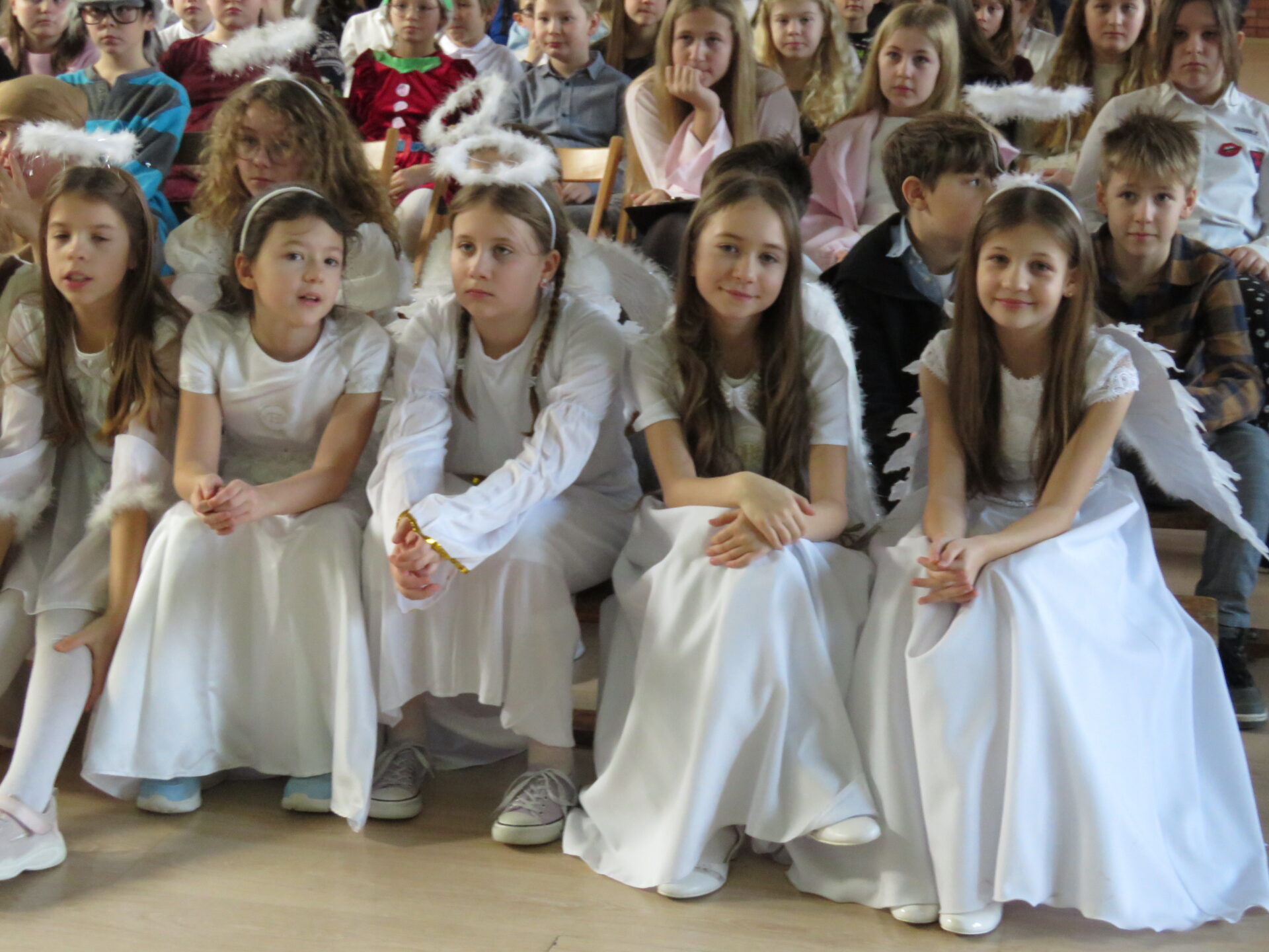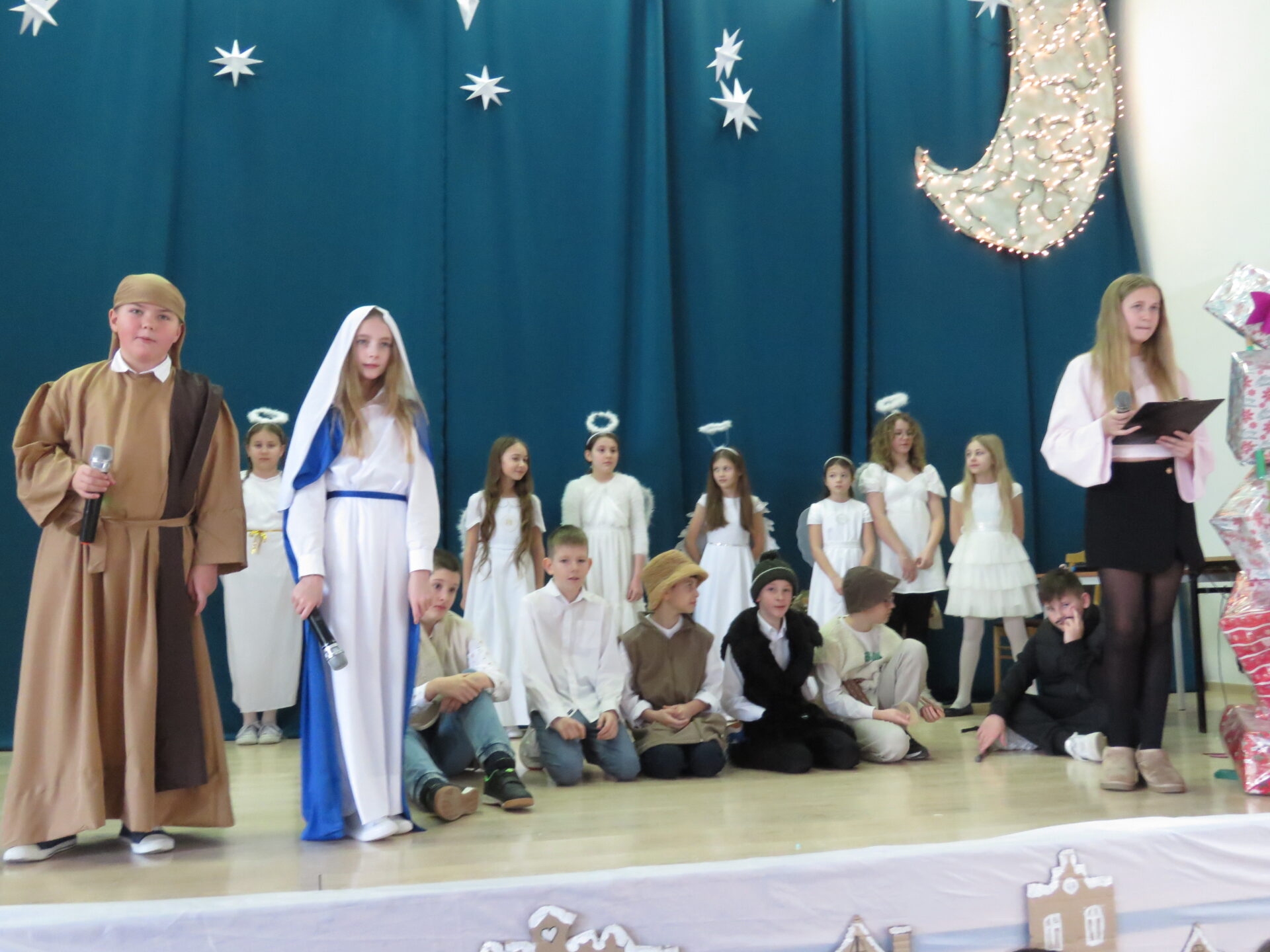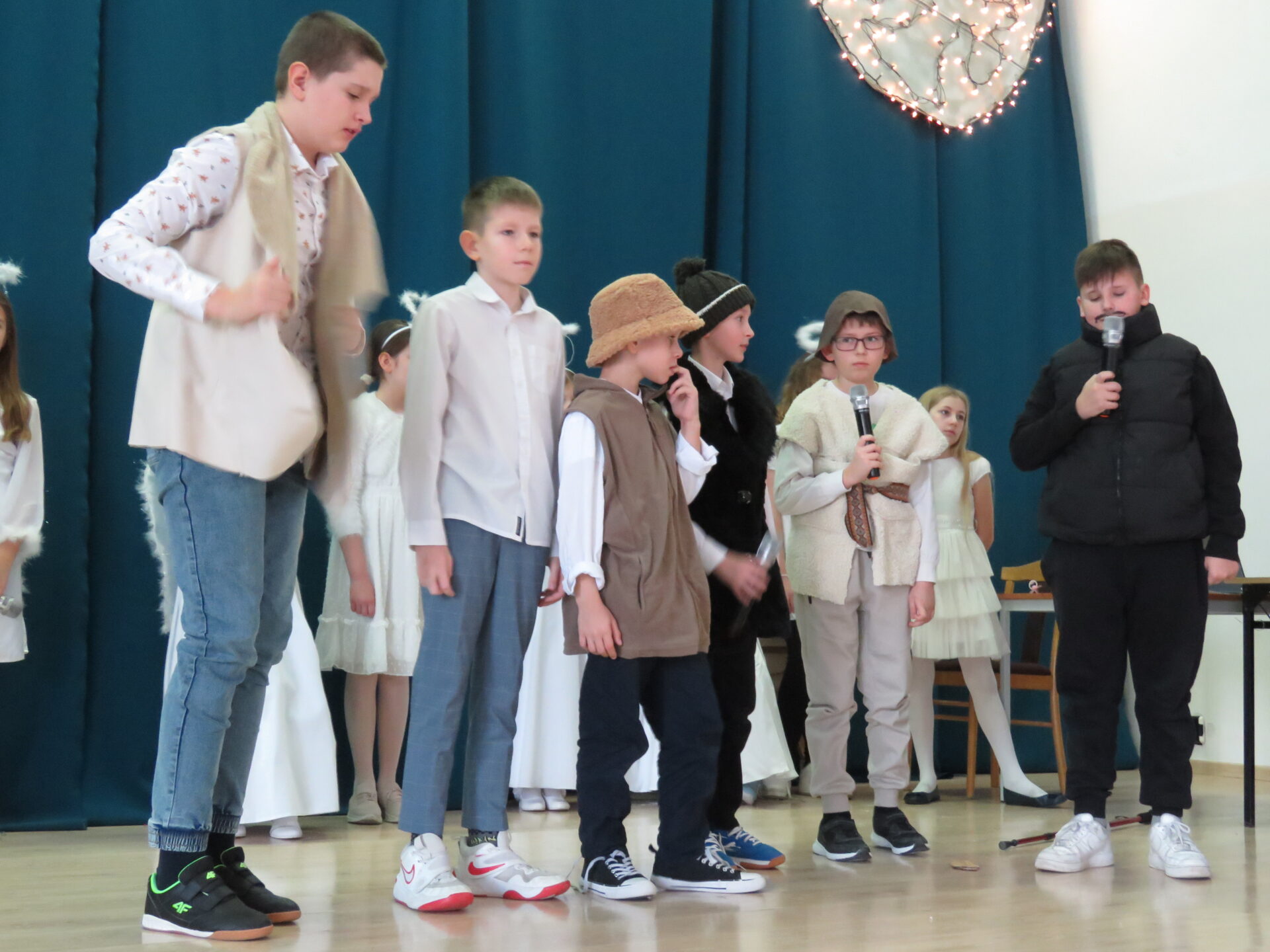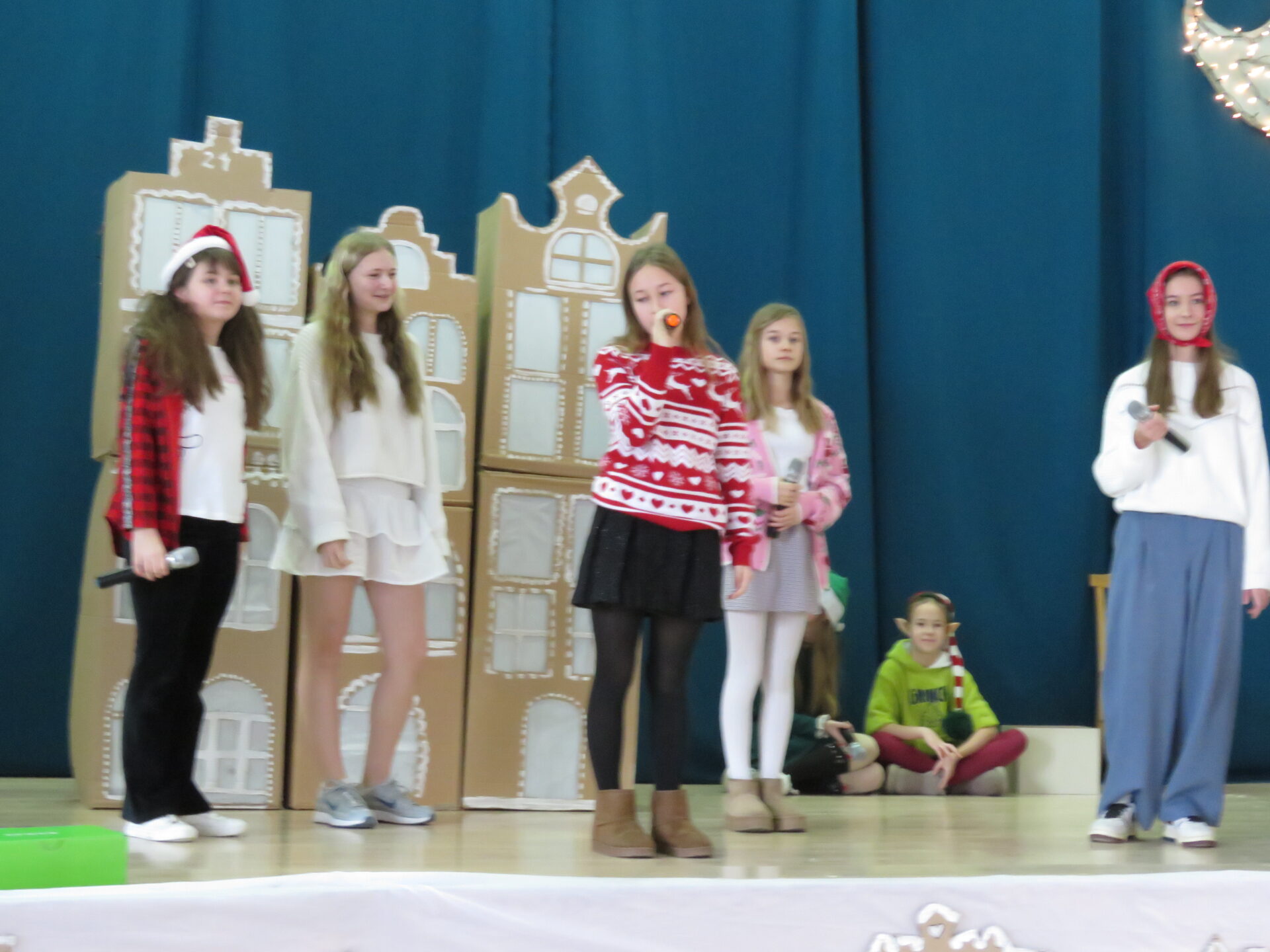 Grupa wiekowa klas 4-8 obejrzała dzisiaj spektakl teatralny przygotowany przez klasę 5d i 6c pod kierunkiem Pani Marioli Kulpy oraz Jasełka – spektakl słowno – muzyczny w wykonaniu dzieci klasy 4b. Uczniów przygotowała Pani Nela Żak. Kolędy i piosenki świąteczne usłyszeliśmy w wykonaniu szkolnego zespołu muzycznego pod kierunkiem Pani Mileny Wiśniewskiej.