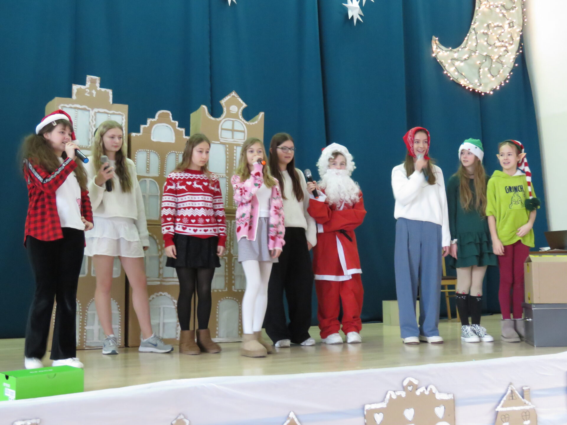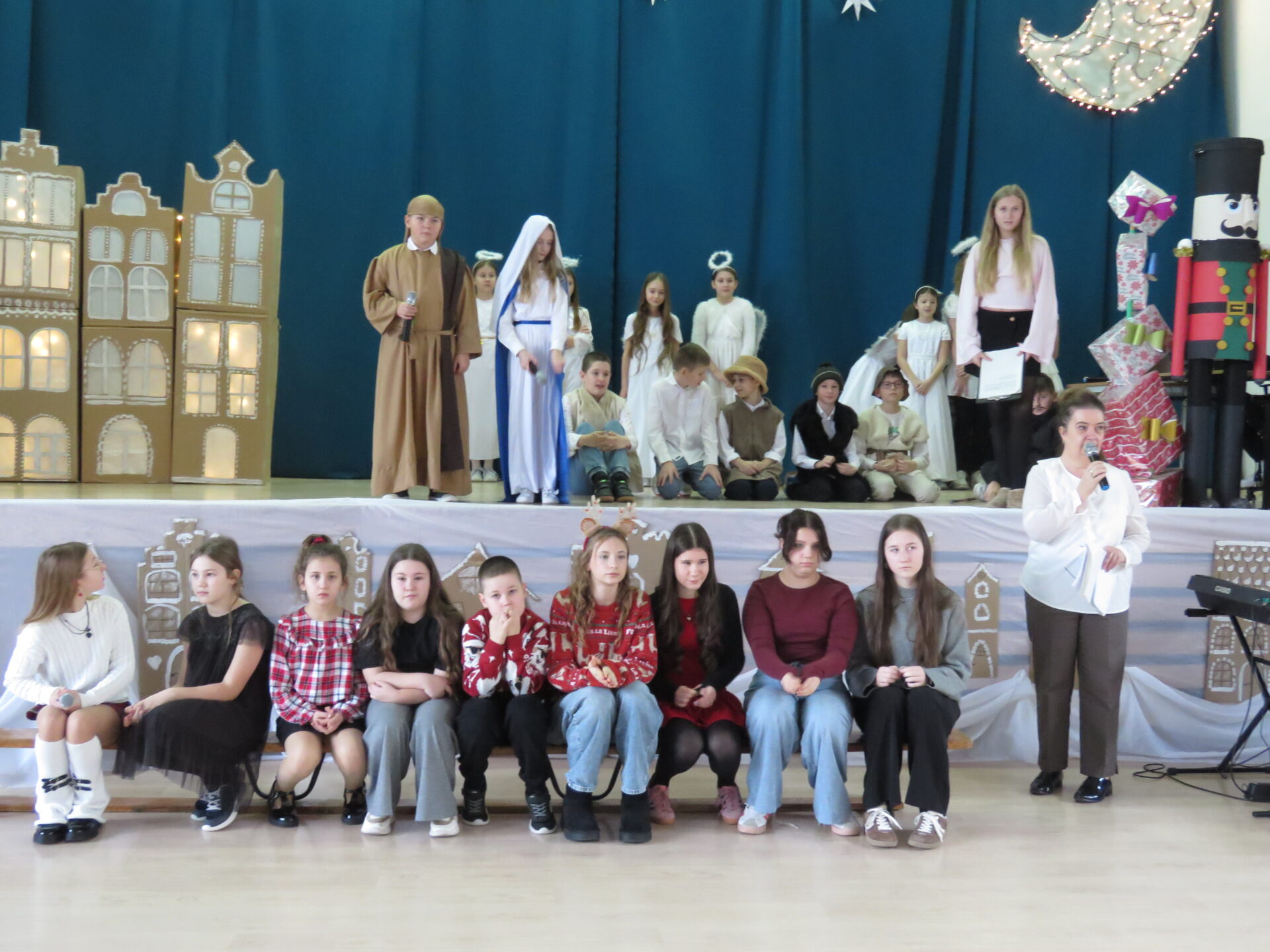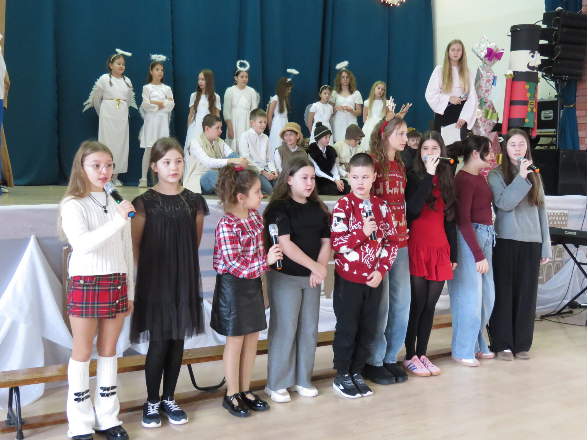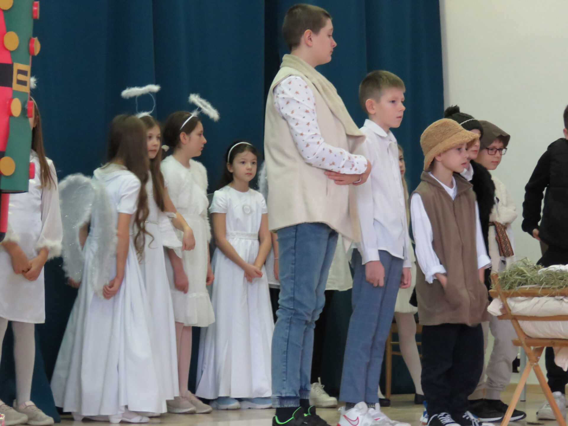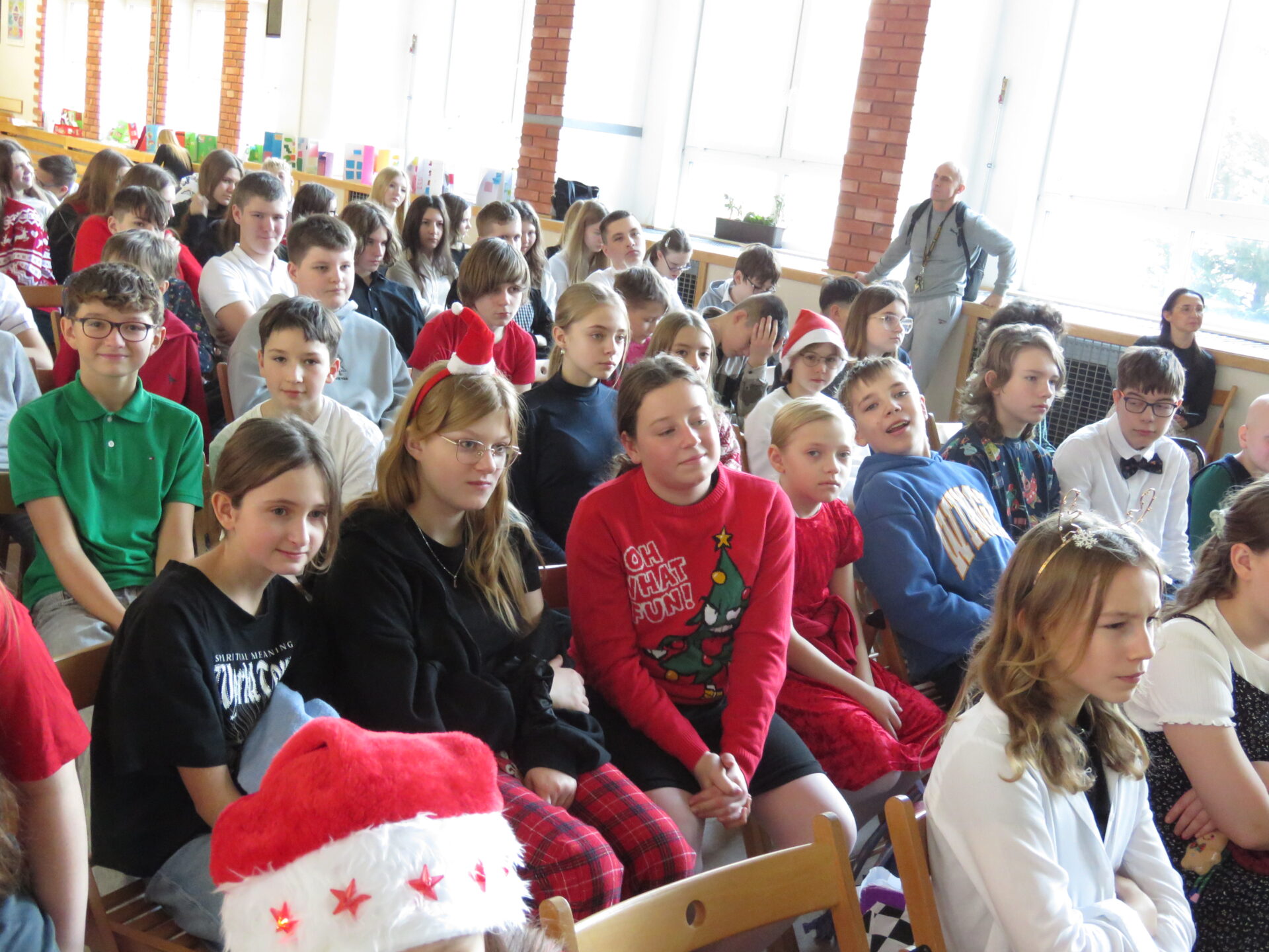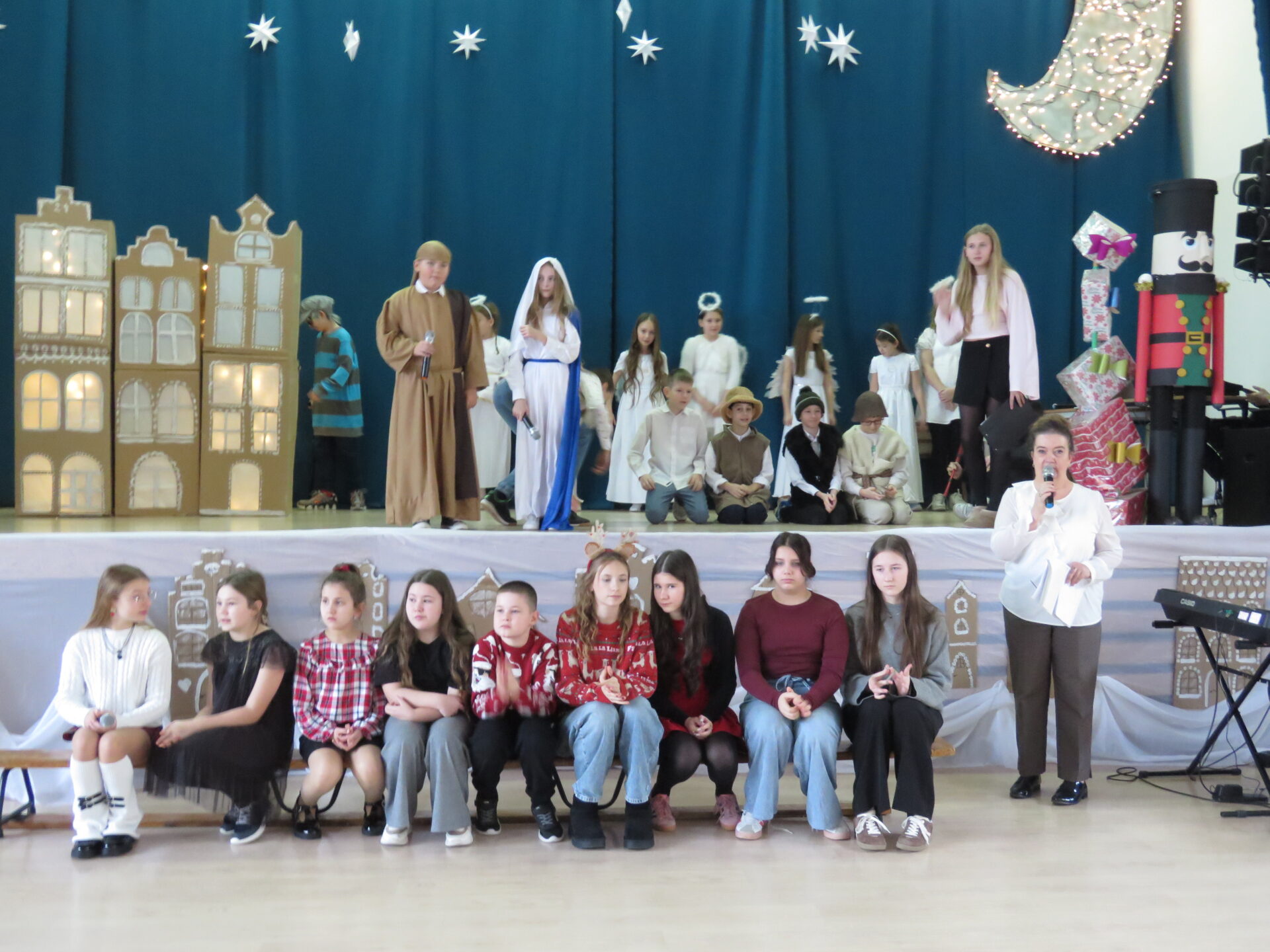 Grupa wiekowa klas 4-8 obejrzała dzisiaj spektakl teatralny przygotowany przez klasę 5d i 6c pod kierunkiem Pani Marioli Kulpy oraz Jasełka – spektakl słowno – muzyczny w wykonaniu dzieci klasy 4b. Uczniów przygotowała Pani Nela Żak. Kolędy i piosenki świąteczne usłyszeliśmy w wykonaniu szkolnego zespołu muzycznego pod kierunkiem Pani Mileny Wiśniewskiej.