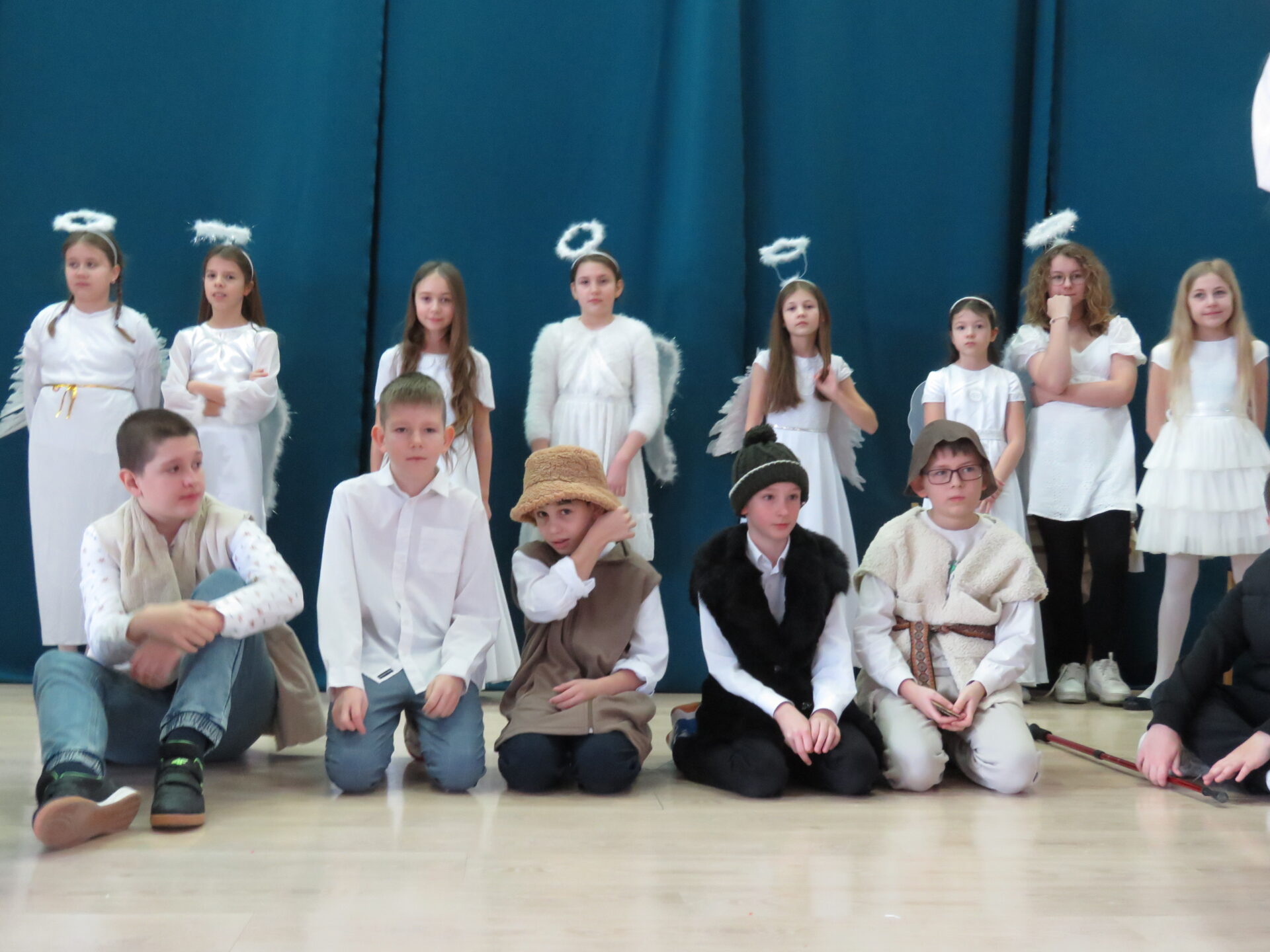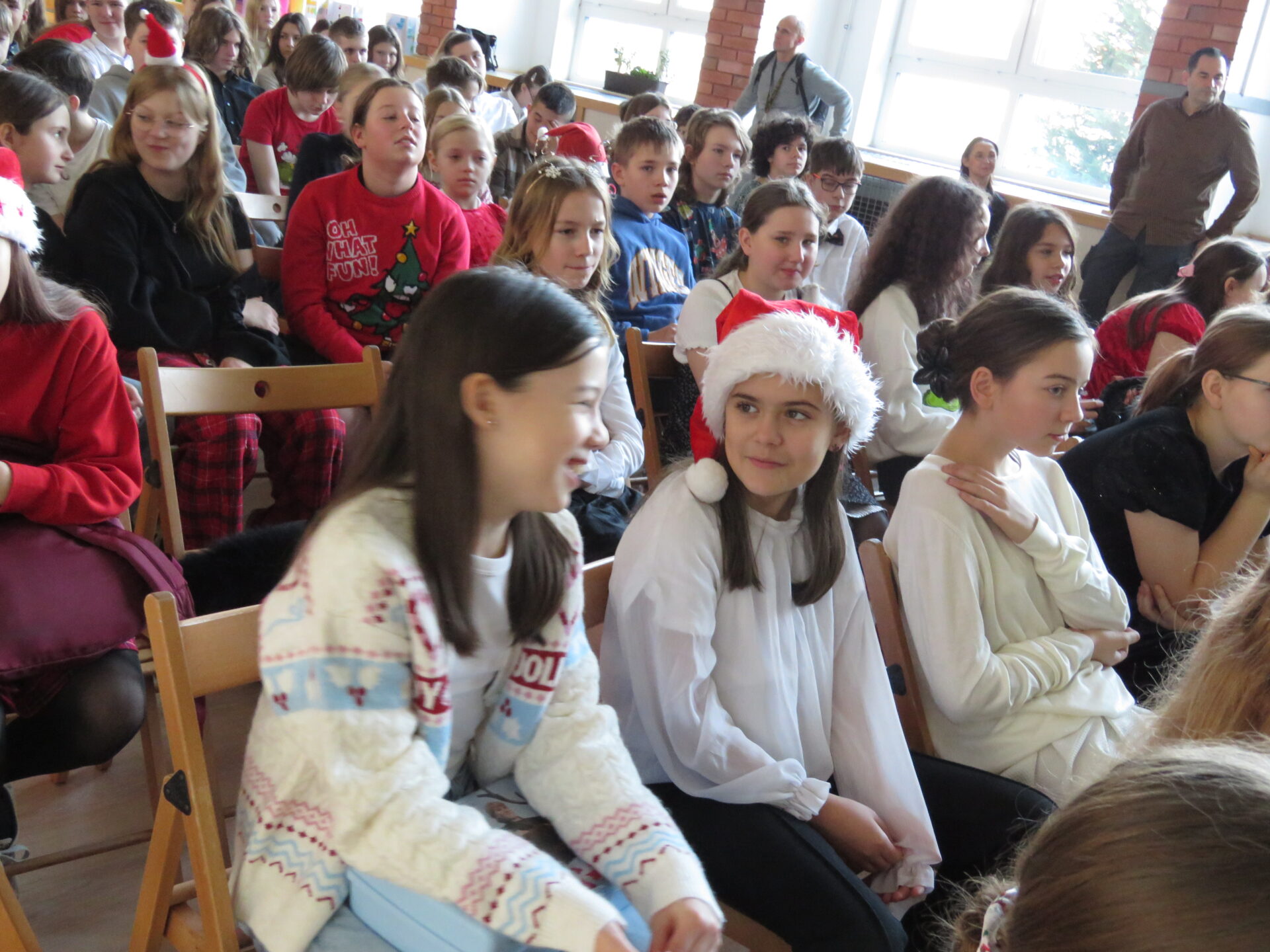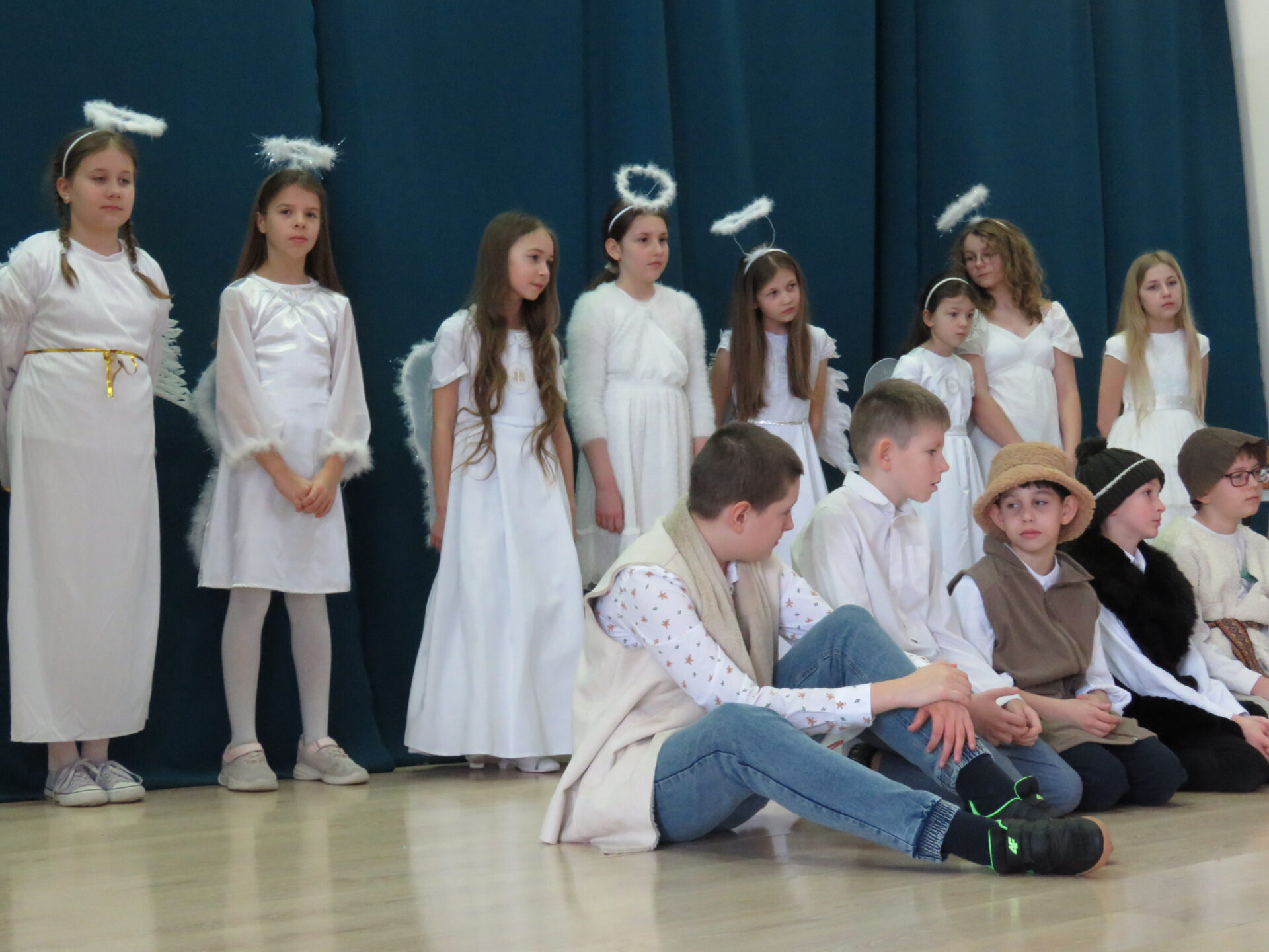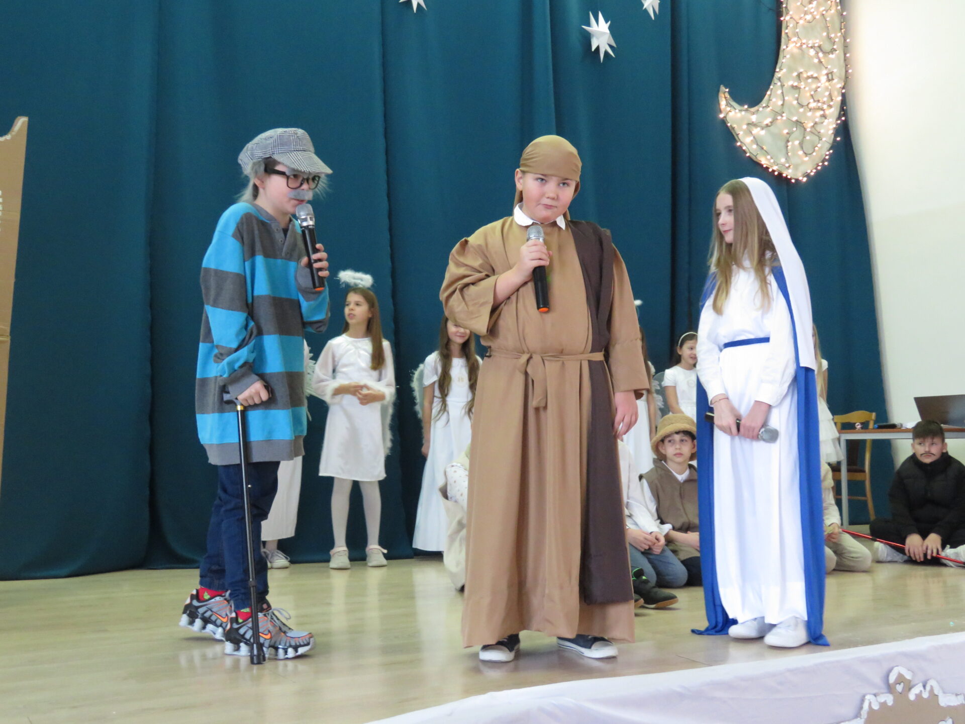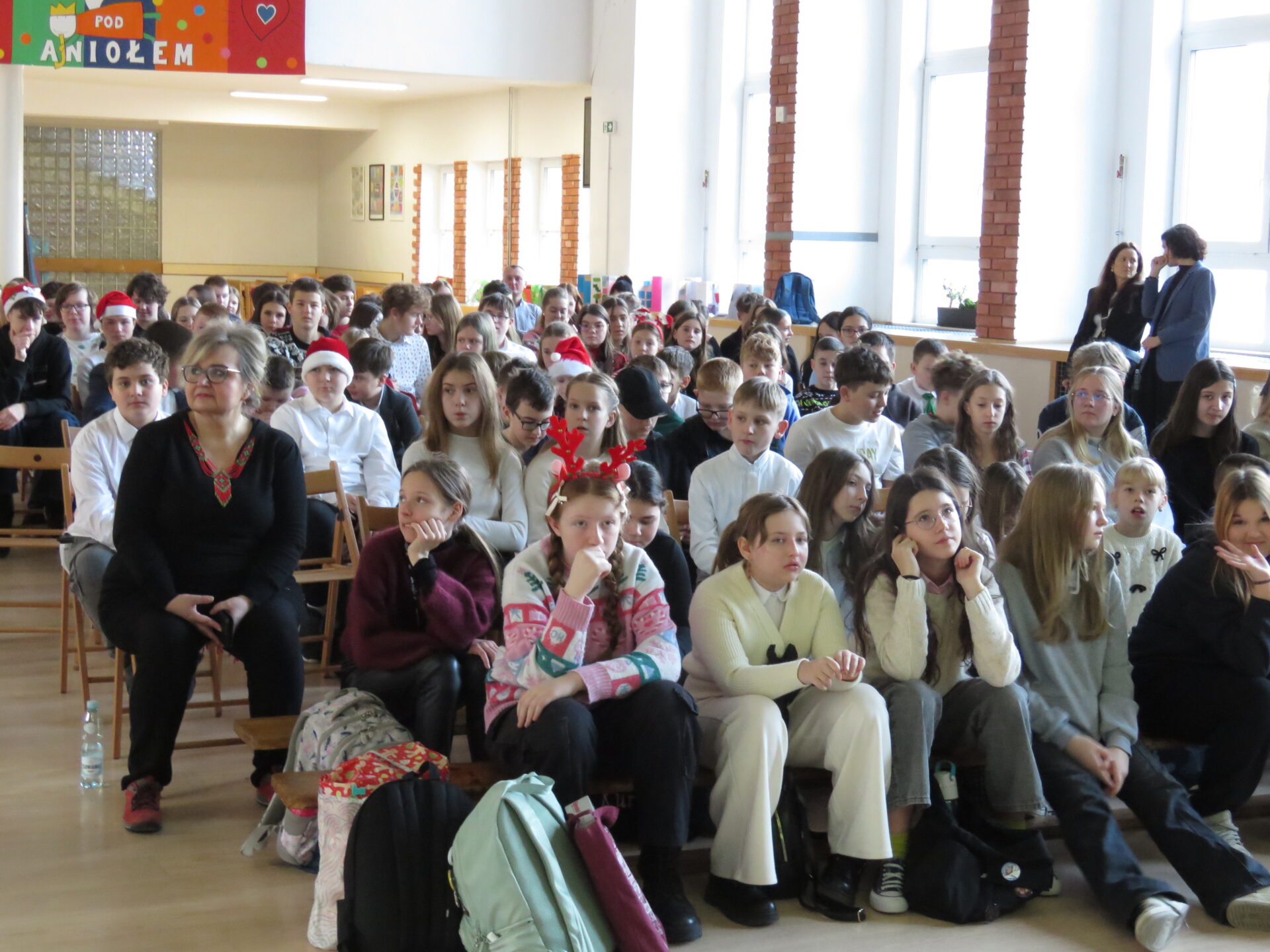 Grupa wiekowa klas 4-8 obejrzała dzisiaj spektakl teatralny przygotowany przez klasę 5d i 6c pod kierunkiem Pani Marioli Kulpy oraz Jasełka – spektakl słowno – muzyczny w wykonaniu dzieci klasy 4b. Uczniów przygotowała Pani Nela Żak. Kolędy i piosenki świąteczne usłyszeliśmy w wykonaniu szkolnego zespołu muzycznego pod kierunkiem Pani Mileny Wiśniewskiej.