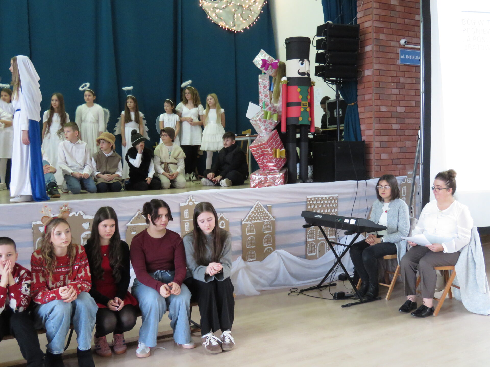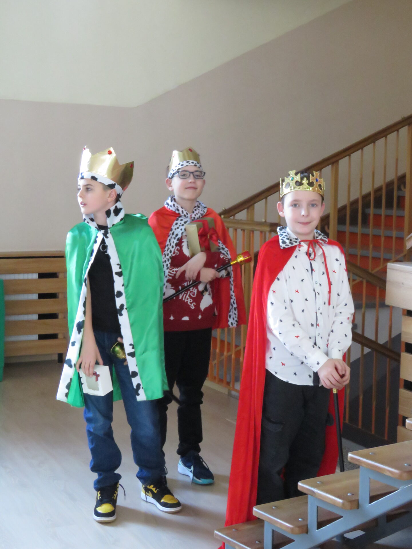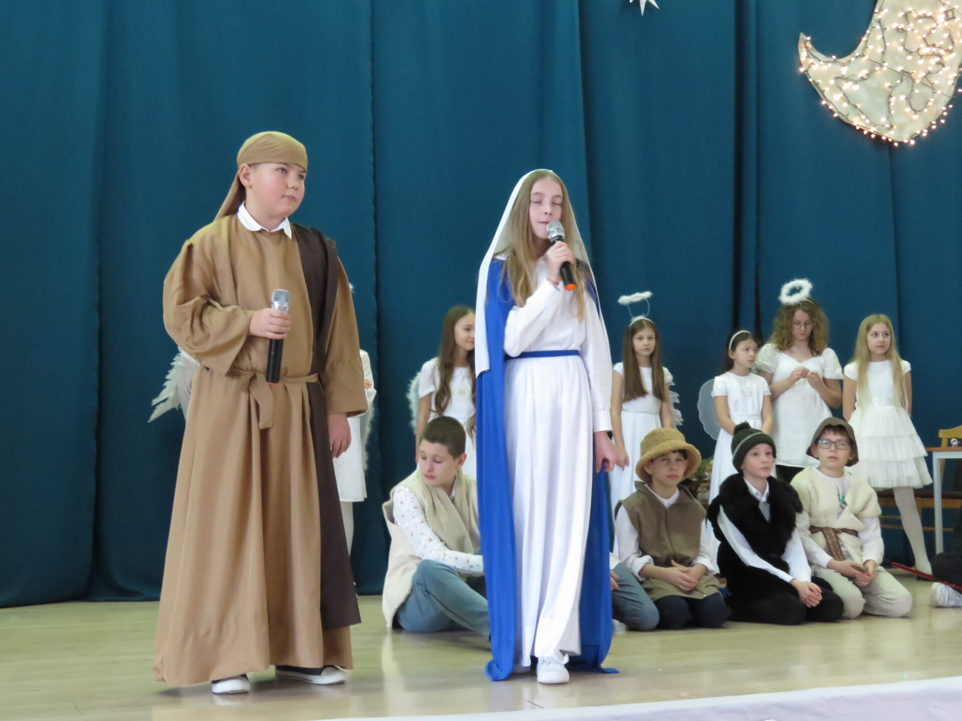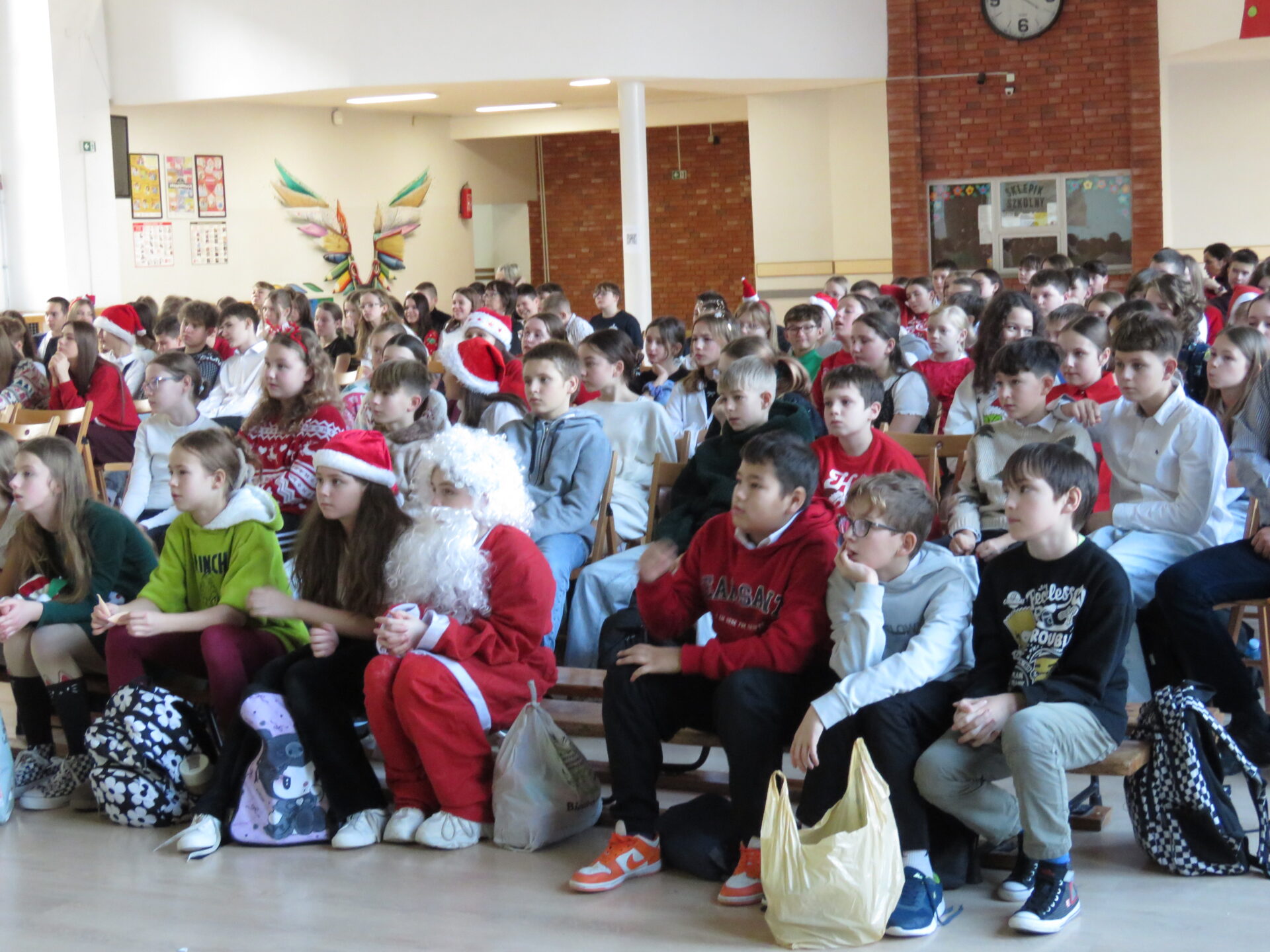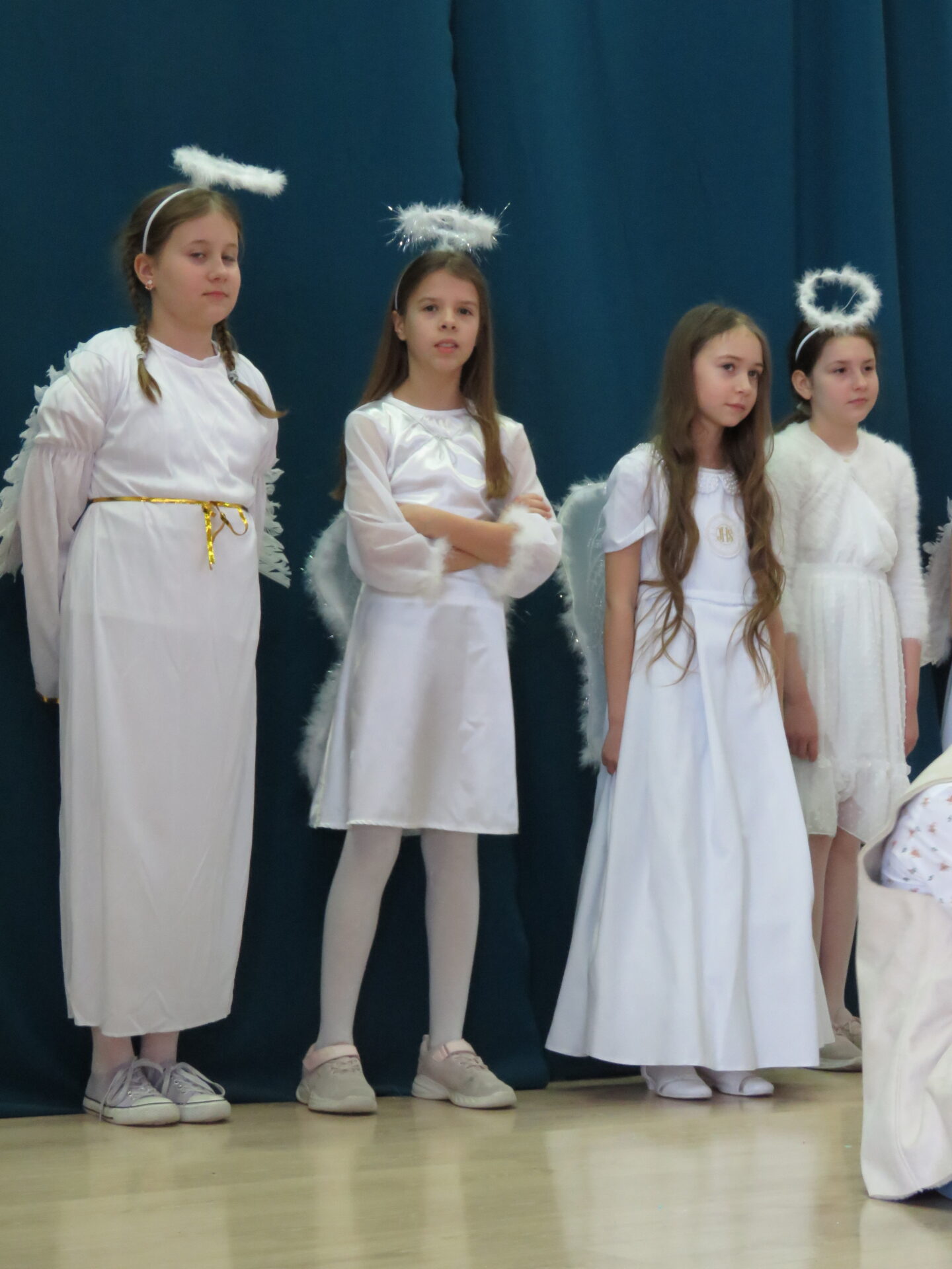 Grupa wiekowa klas 4-8 obejrzała dzisiaj spektakl teatralny przygotowany przez klasę 5d i 6c pod kierunkiem Pani Marioli Kulpy oraz Jasełka – spektakl słowno – muzyczny w wykonaniu dzieci klasy 4b. Uczniów przygotowała Pani Nela Żak. Kolędy i piosenki świąteczne usłyszeliśmy w wykonaniu szkolnego zespołu muzycznego pod kierunkiem Pani Mileny Wiśniewskiej.