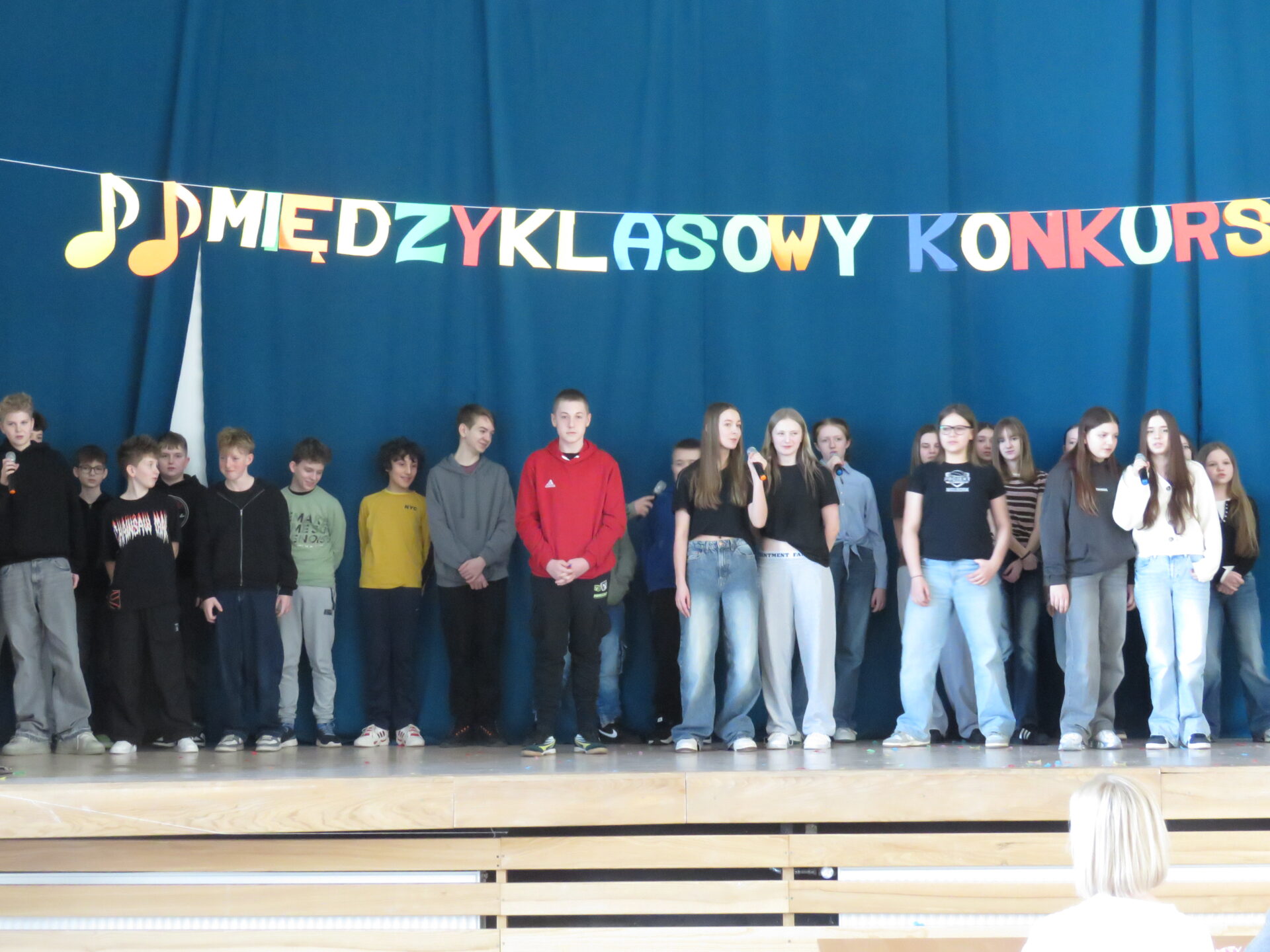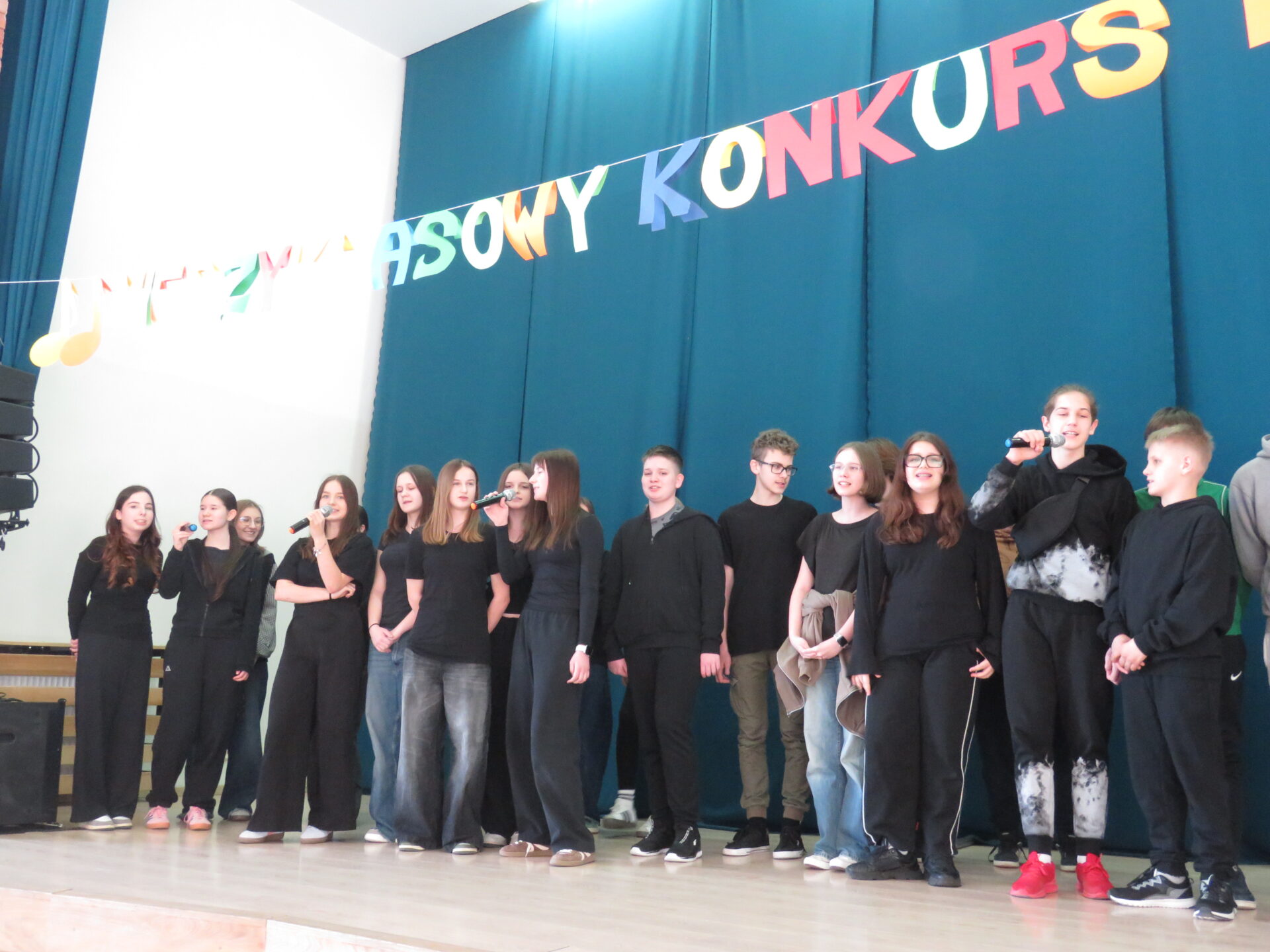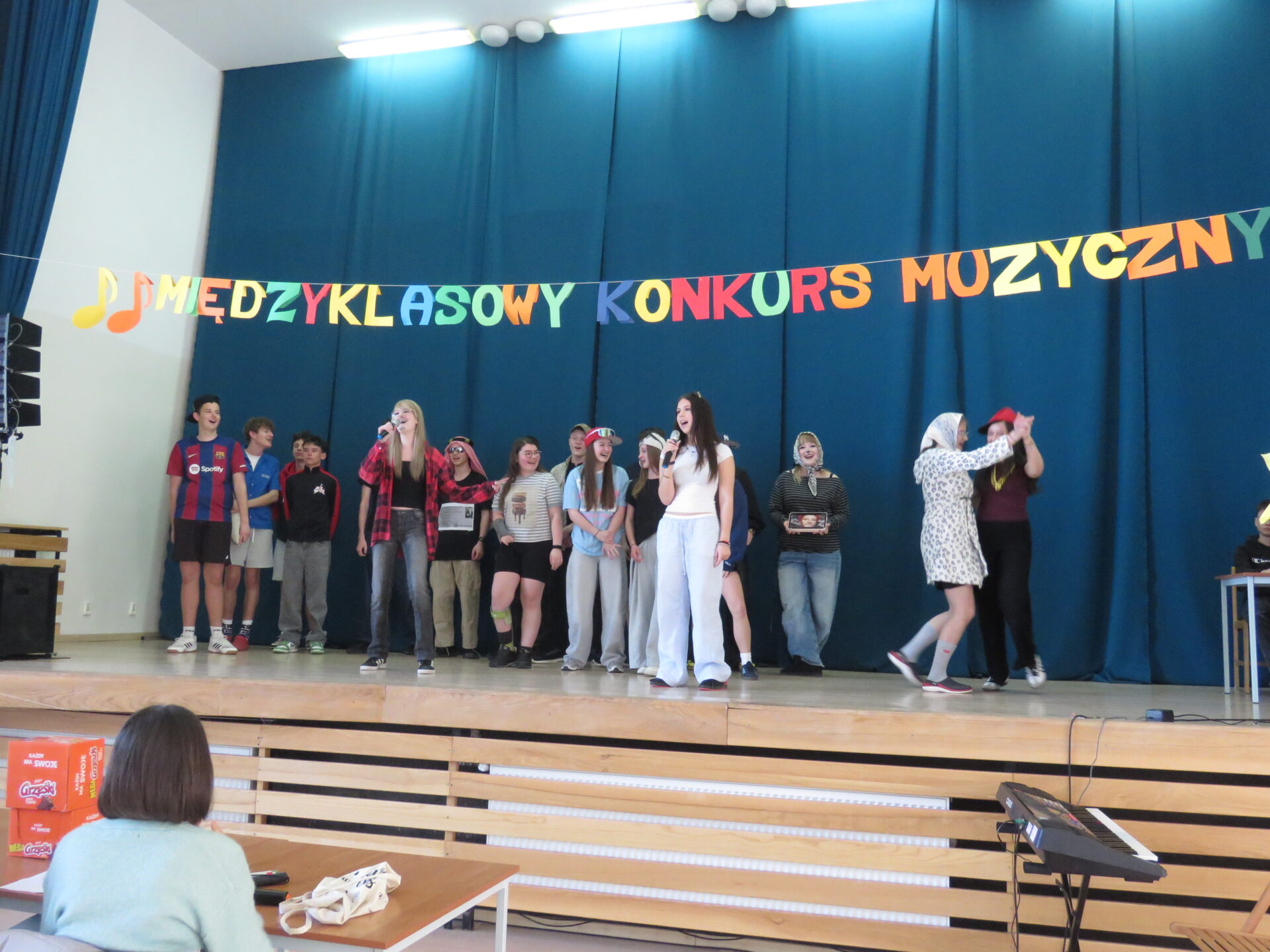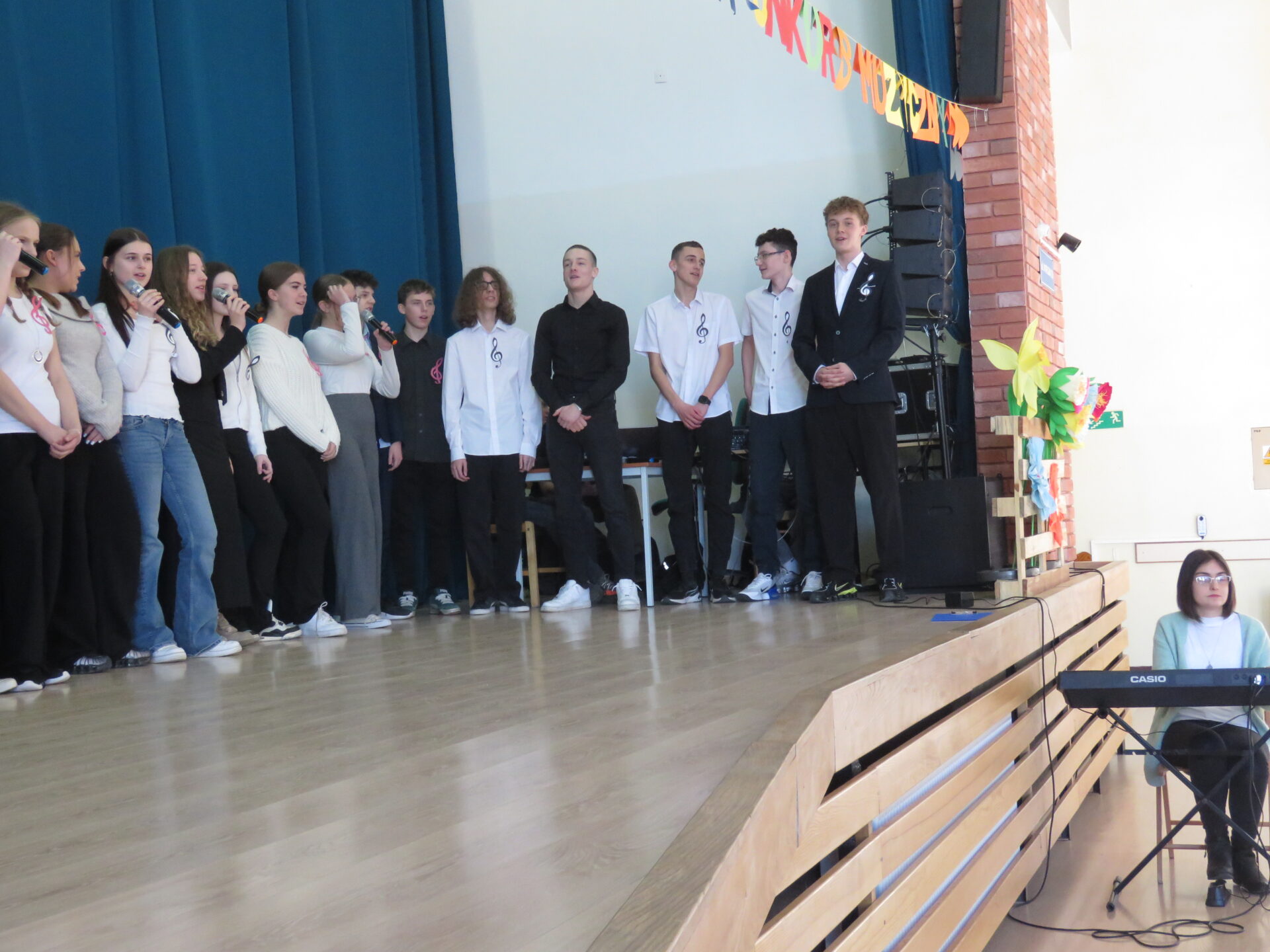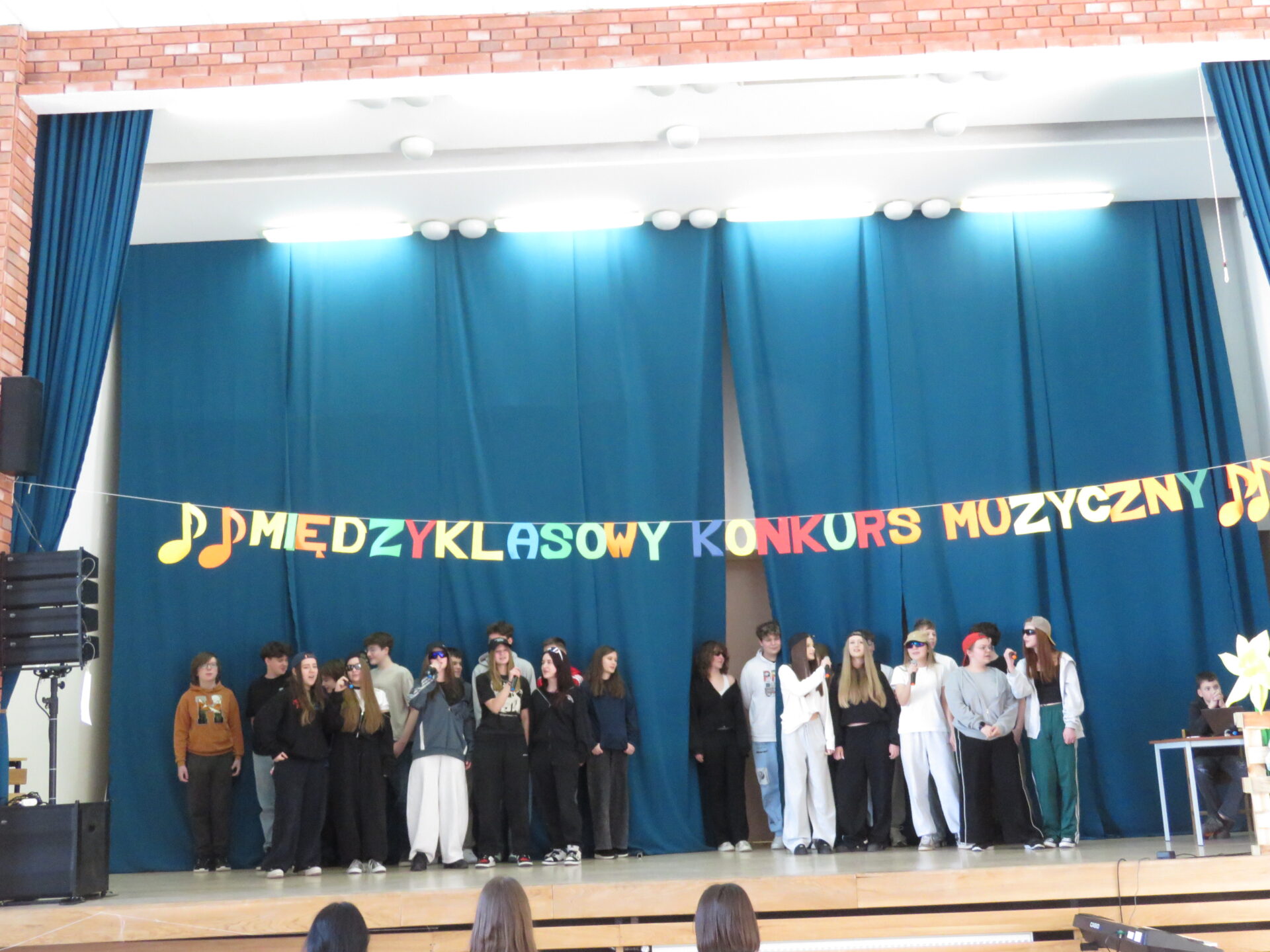 W dniach 18 i 19 marca 2026r. szkolną aulę wypełniły piękne głosy naszych uczniów. Każda z klas miała za zadanie przygotować wykonanie jednej piosenki, co stało się dla nich okazją do wspólnego działania. Podczas Międzyklasowego Konkursu Muzycznego usłyszeliśmy różnorodny repertuar, od ponadczasowych przebojów po najnowsze hity. Występujący zadbali nie tylko o wokalne walory prezentacji — wiele z nich wzbogaconych było o układy choreograficzne, rekwizyty czy stroje. Uczniowie włożyli w nie mnóstwo serca i to właśnie ich zaangażowanie było najważniejszą wartością.
