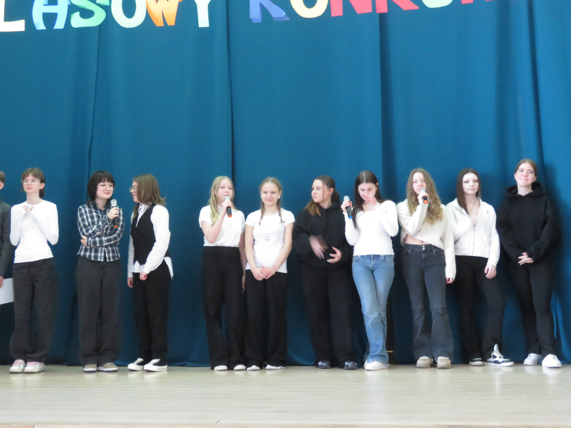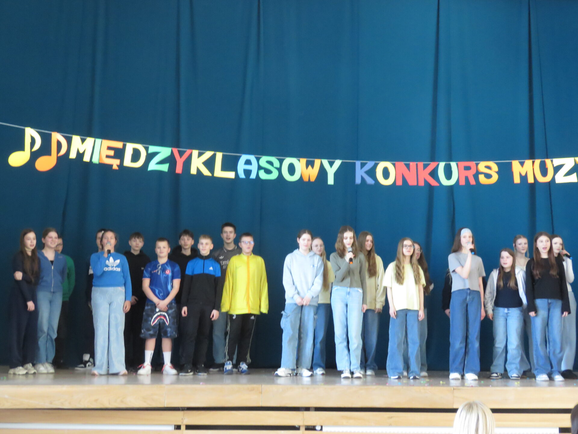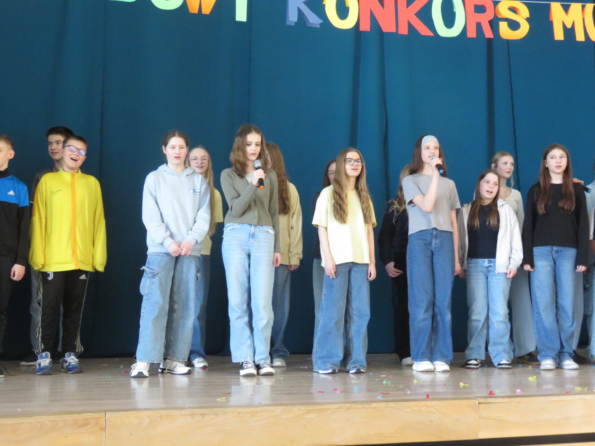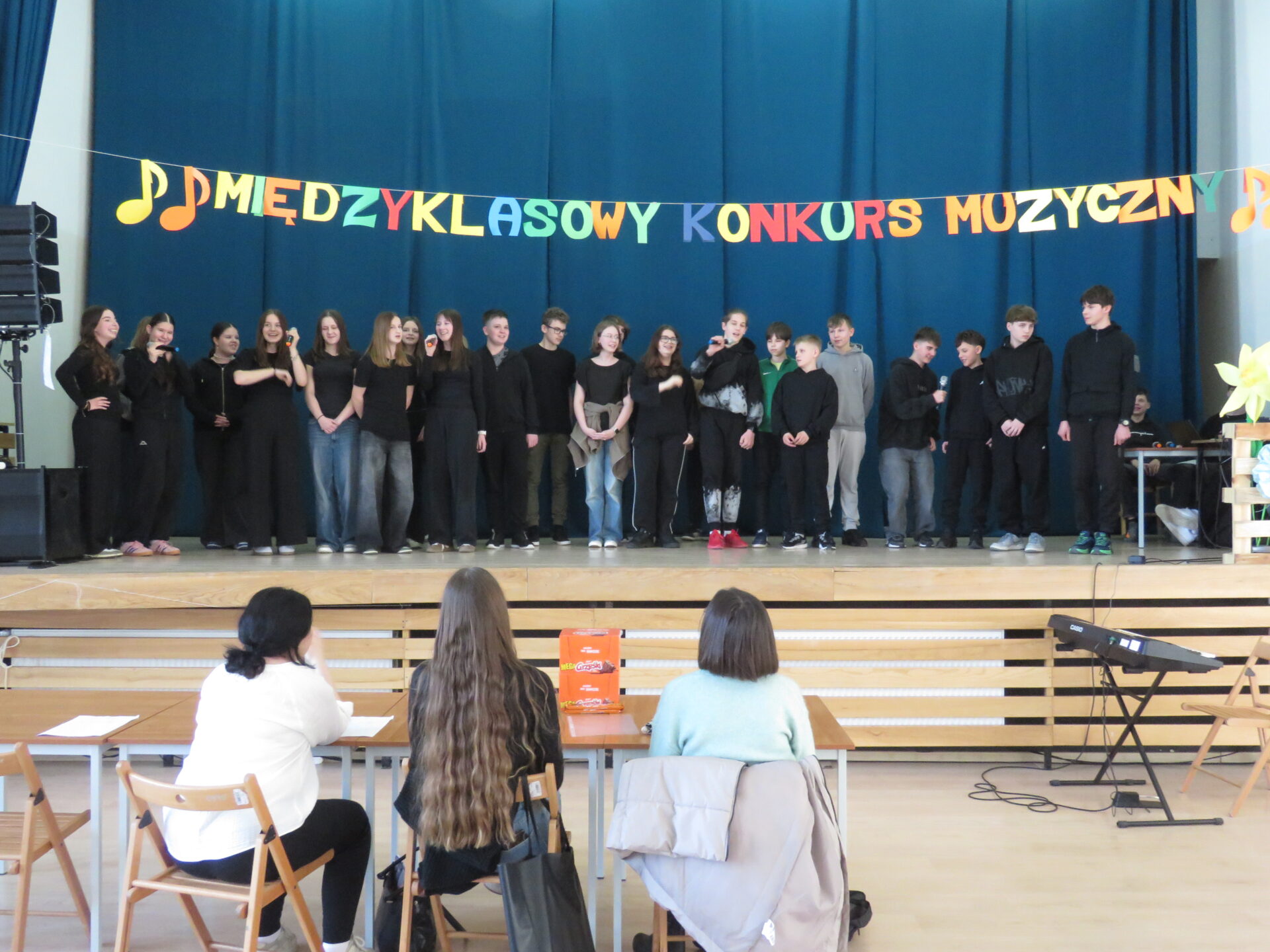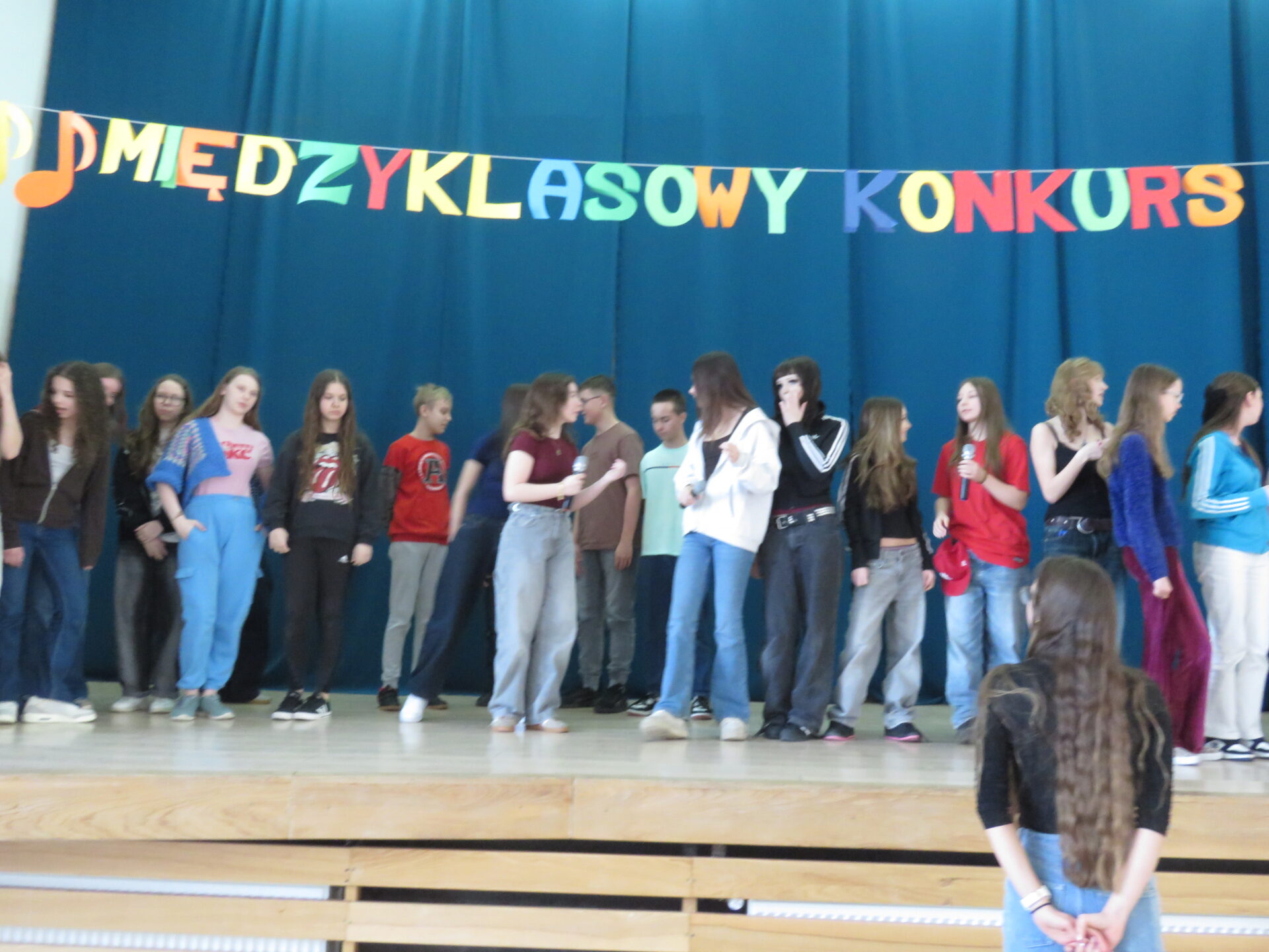 W dniach 18 i 19 marca 2026r. szkolną aulę wypełniły piękne głosy naszych uczniów. Każda z klas miała za zadanie przygotować wykonanie jednej piosenki, co stało się dla nich okazją do wspólnego działania. Podczas Międzyklasowego Konkursu Muzycznego usłyszeliśmy różnorodny repertuar, od ponadczasowych przebojów po najnowsze hity. Występujący zadbali nie tylko o wokalne walory prezentacji — wiele z nich wzbogaconych było o układy choreograficzne, rekwizyty czy stroje. Uczniowie włożyli w nie mnóstwo serca i to właśnie ich zaangażowanie było najważniejszą wartością.