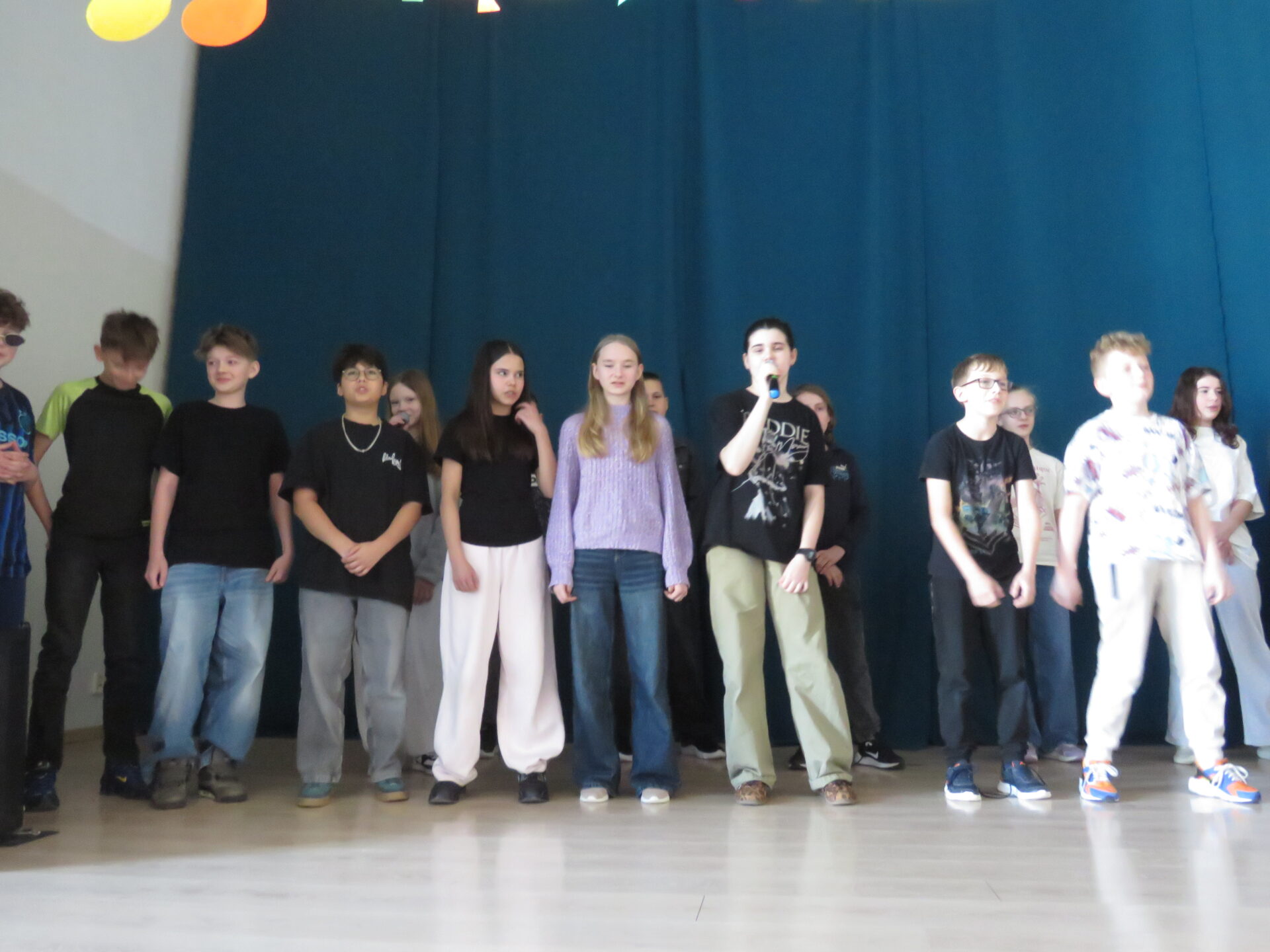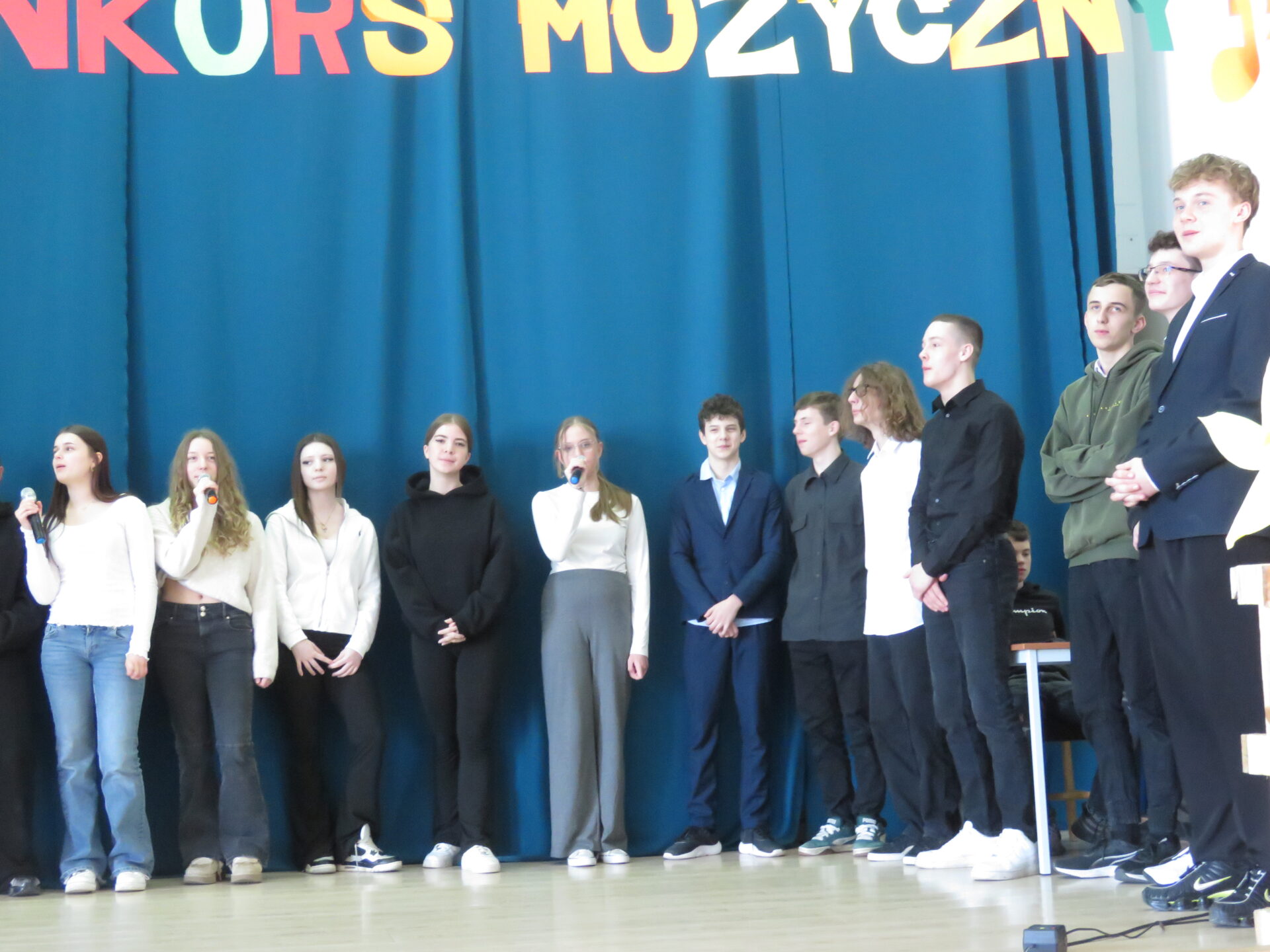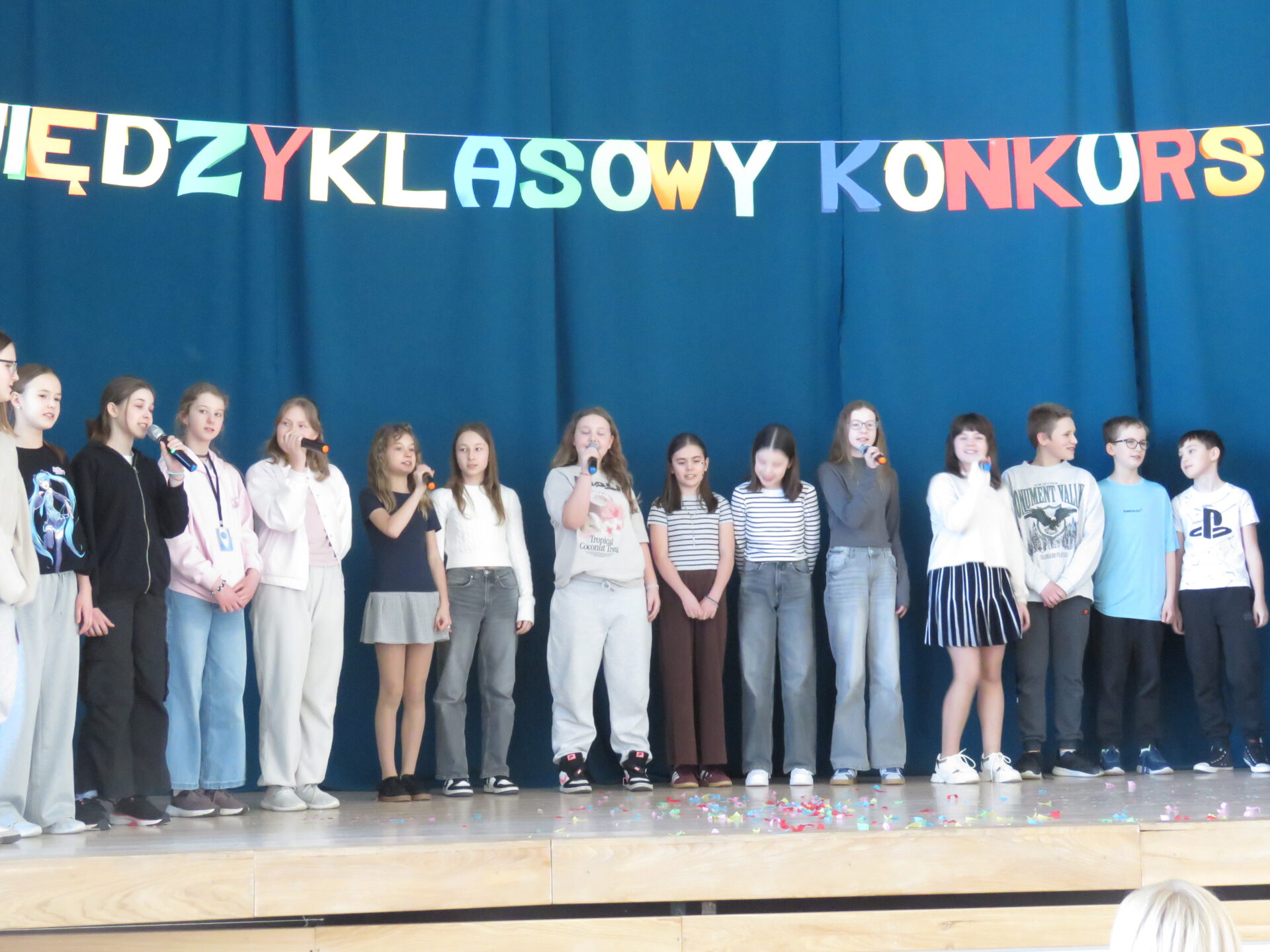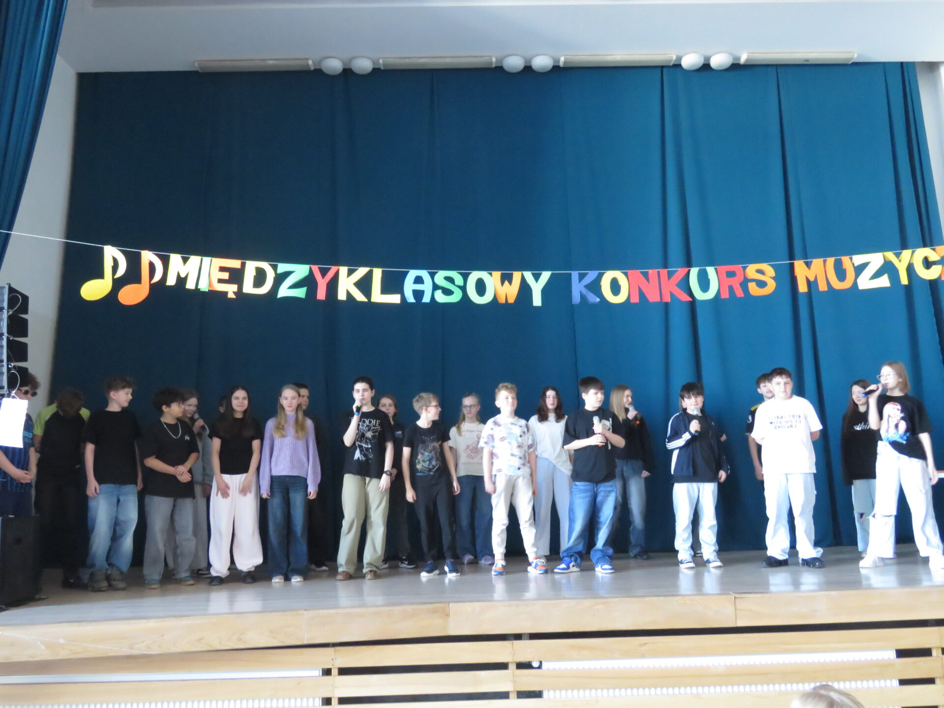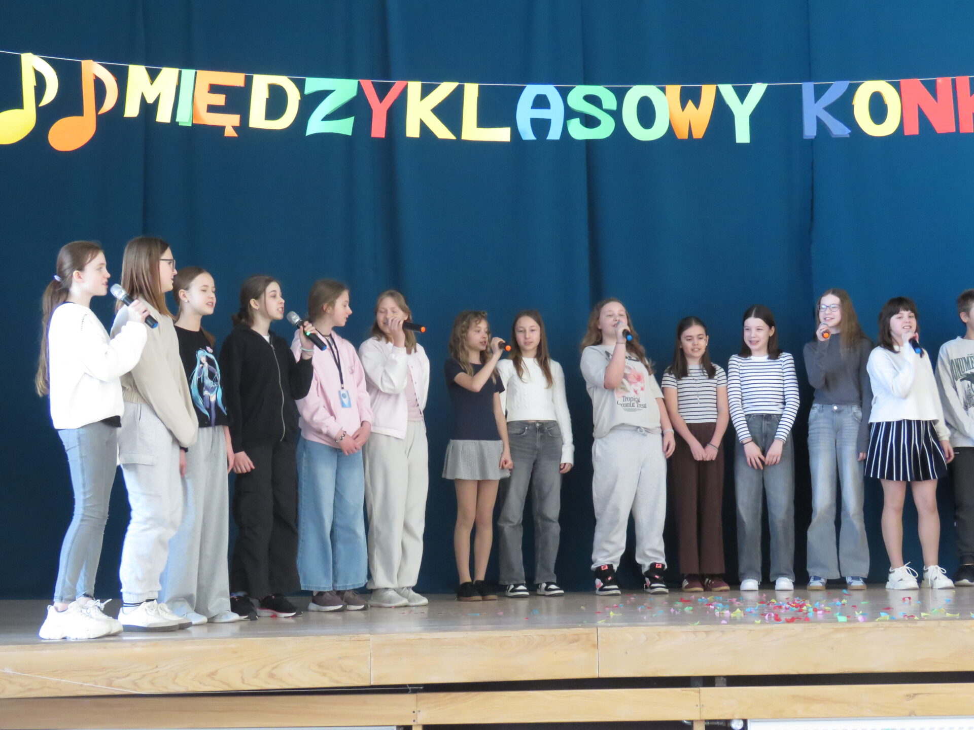 W dniach 18 i 19 marca 2026r. szkolną aulę wypełniły piękne głosy naszych uczniów. Każda z klas miała za zadanie przygotować wykonanie jednej piosenki, co stało się dla nich okazją do wspólnego działania. Podczas Międzyklasowego Konkursu Muzycznego usłyszeliśmy różnorodny repertuar, od ponadczasowych przebojów po najnowsze hity. Występujący zadbali nie tylko o wokalne walory prezentacji — wiele z nich wzbogaconych było o układy choreograficzne, rekwizyty czy stroje. Uczniowie włożyli w nie mnóstwo serca i to właśnie ich zaangażowanie było najważniejszą wartością.