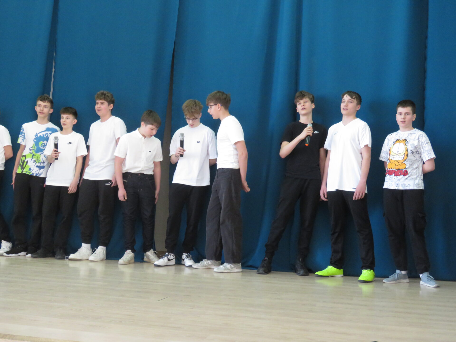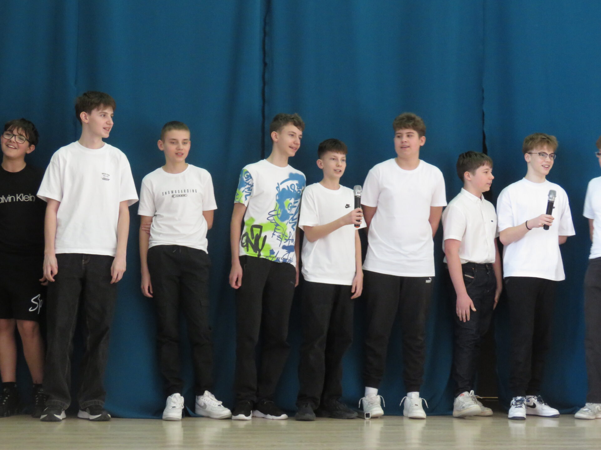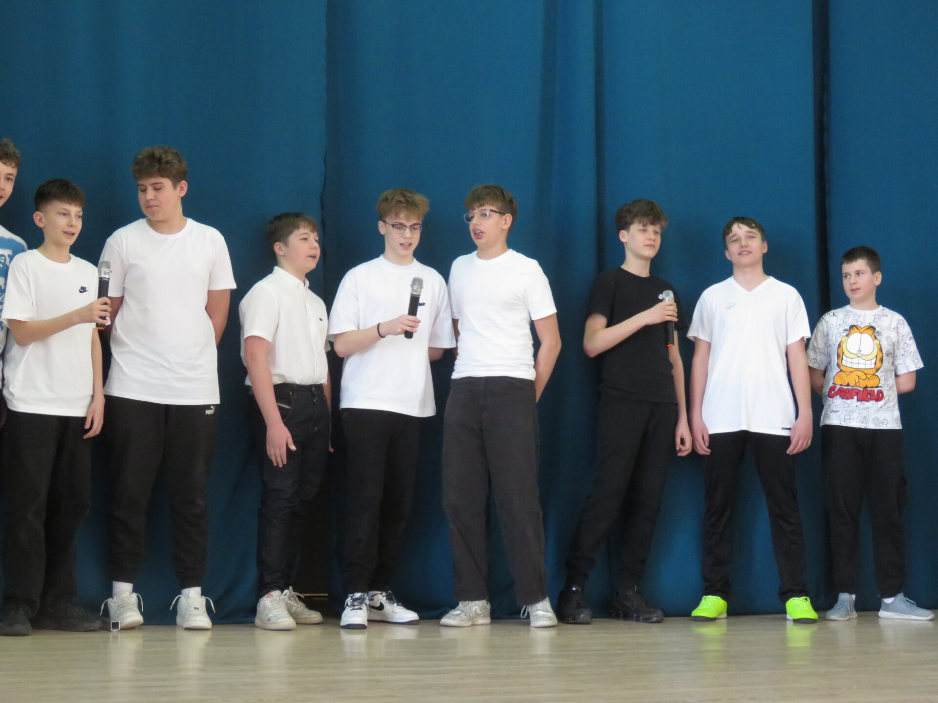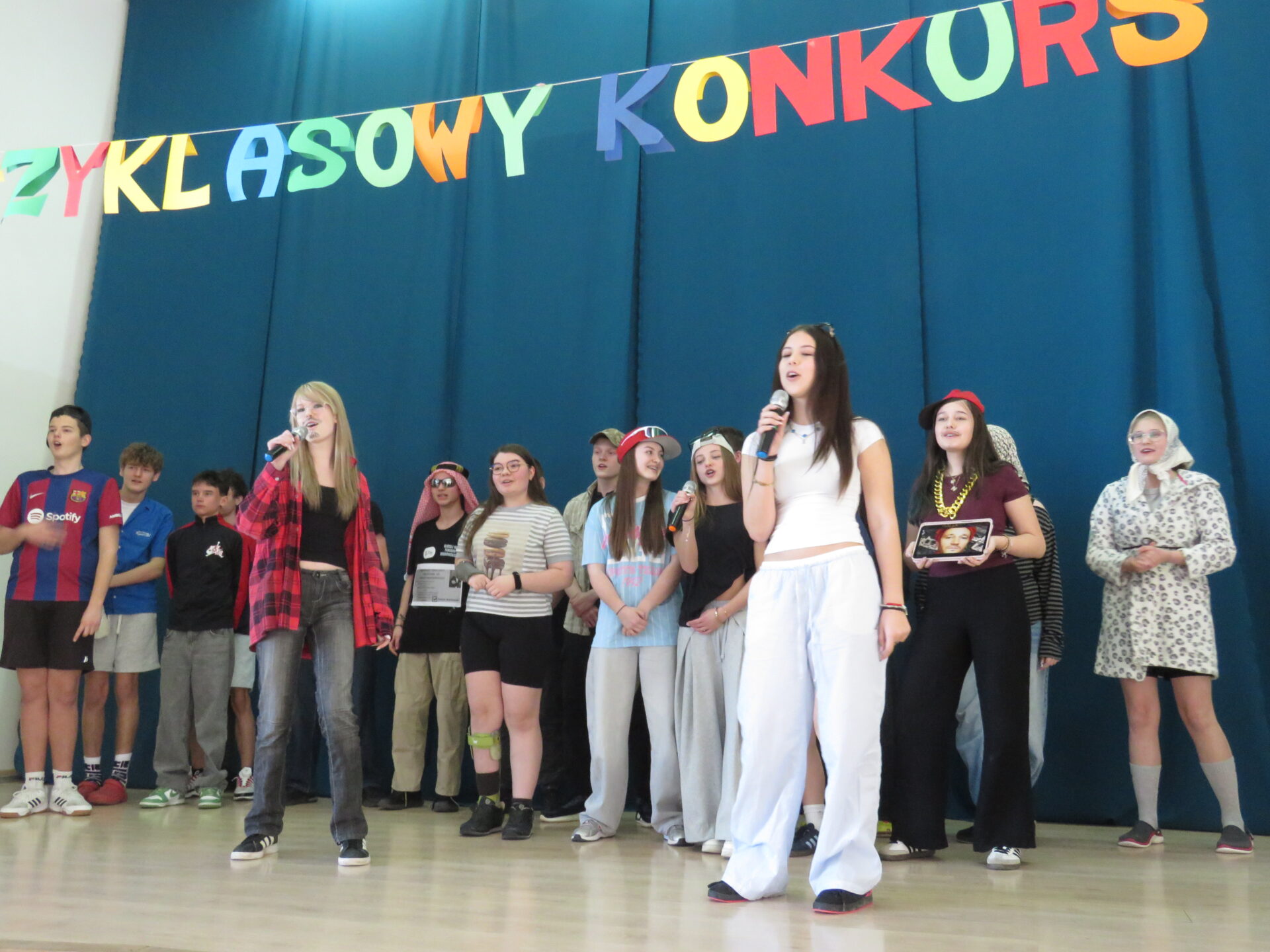 W dniach 18 i 19 marca 2026r. szkolną aulę wypełniły piękne głosy naszych uczniów. Każda z klas miała za zadanie przygotować wykonanie jednej piosenki, co stało się dla nich okazją do wspólnego działania. Podczas Międzyklasowego Konkursu Muzycznego usłyszeliśmy różnorodny repertuar, od ponadczasowych przebojów po najnowsze hity. Występujący zadbali nie tylko o wokalne walory prezentacji — wiele z nich wzbogaconych było o układy choreograficzne, rekwizyty czy stroje. Uczniowie włożyli w nie mnóstwo serca i to właśnie ich zaangażowanie było najważniejszą wartością.