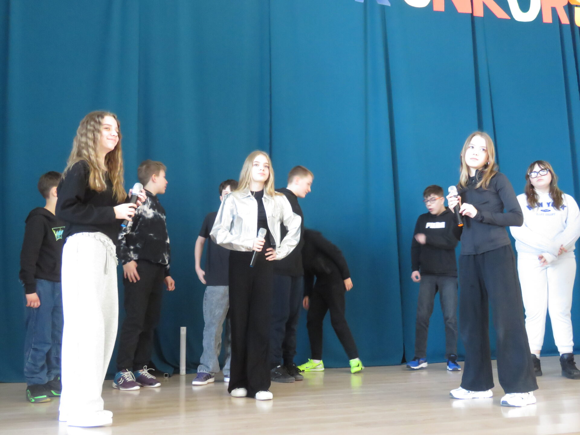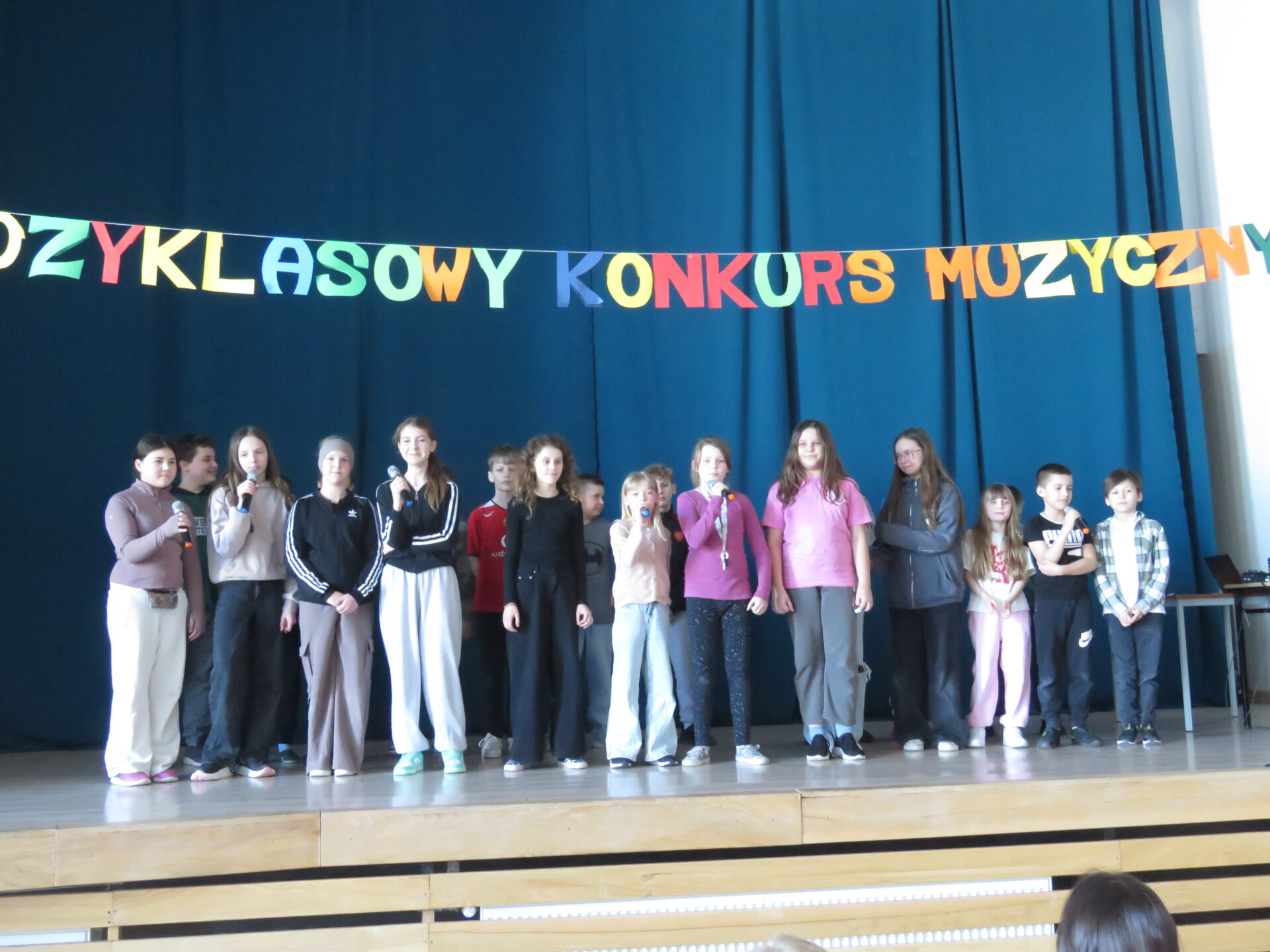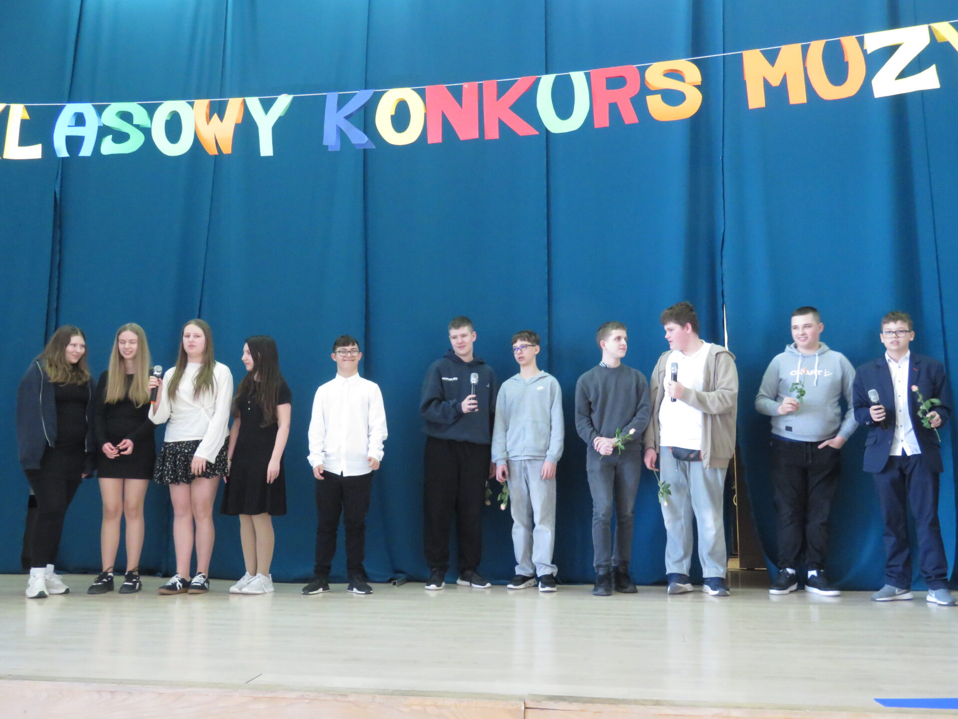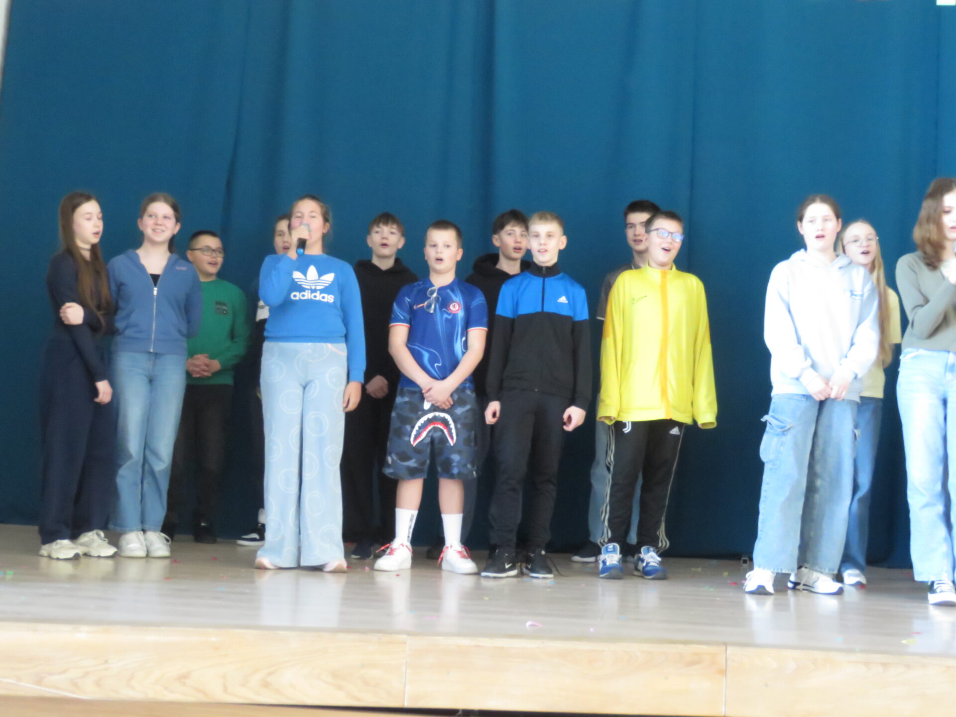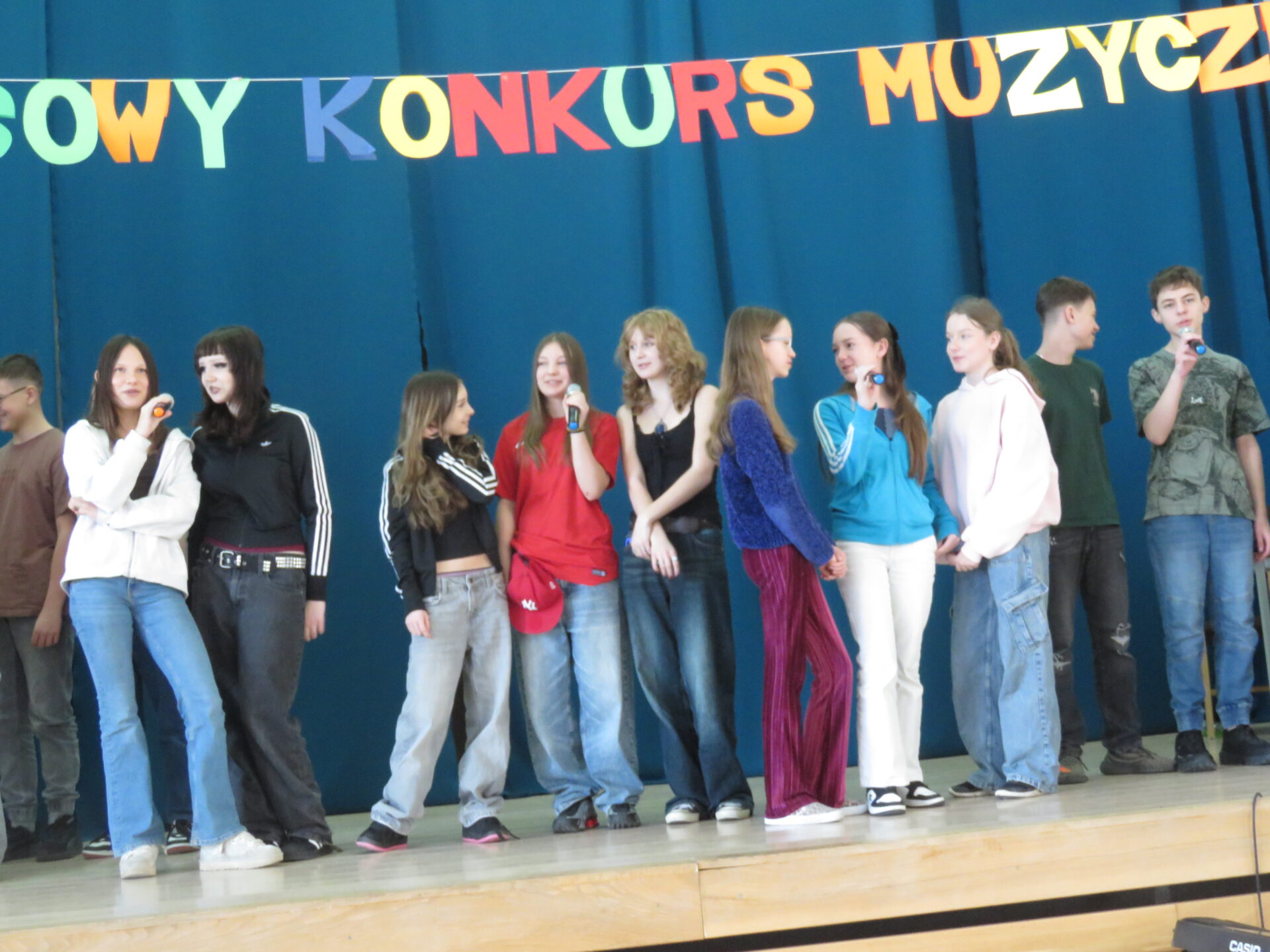 W dniach 18 i 19 marca 2026r. szkolną aulę wypełniły piękne głosy naszych uczniów. Każda z klas miała za zadanie przygotować wykonanie jednej piosenki, co stało się dla nich okazją do wspólnego działania. Podczas Międzyklasowego Konkursu Muzycznego usłyszeliśmy różnorodny repertuar, od ponadczasowych przebojów po najnowsze hity. Występujący zadbali nie tylko o wokalne walory prezentacji — wiele z nich wzbogaconych było o układy choreograficzne, rekwizyty czy stroje. Uczniowie włożyli w nie mnóstwo serca i to właśnie ich zaangażowanie było najważniejszą wartością.