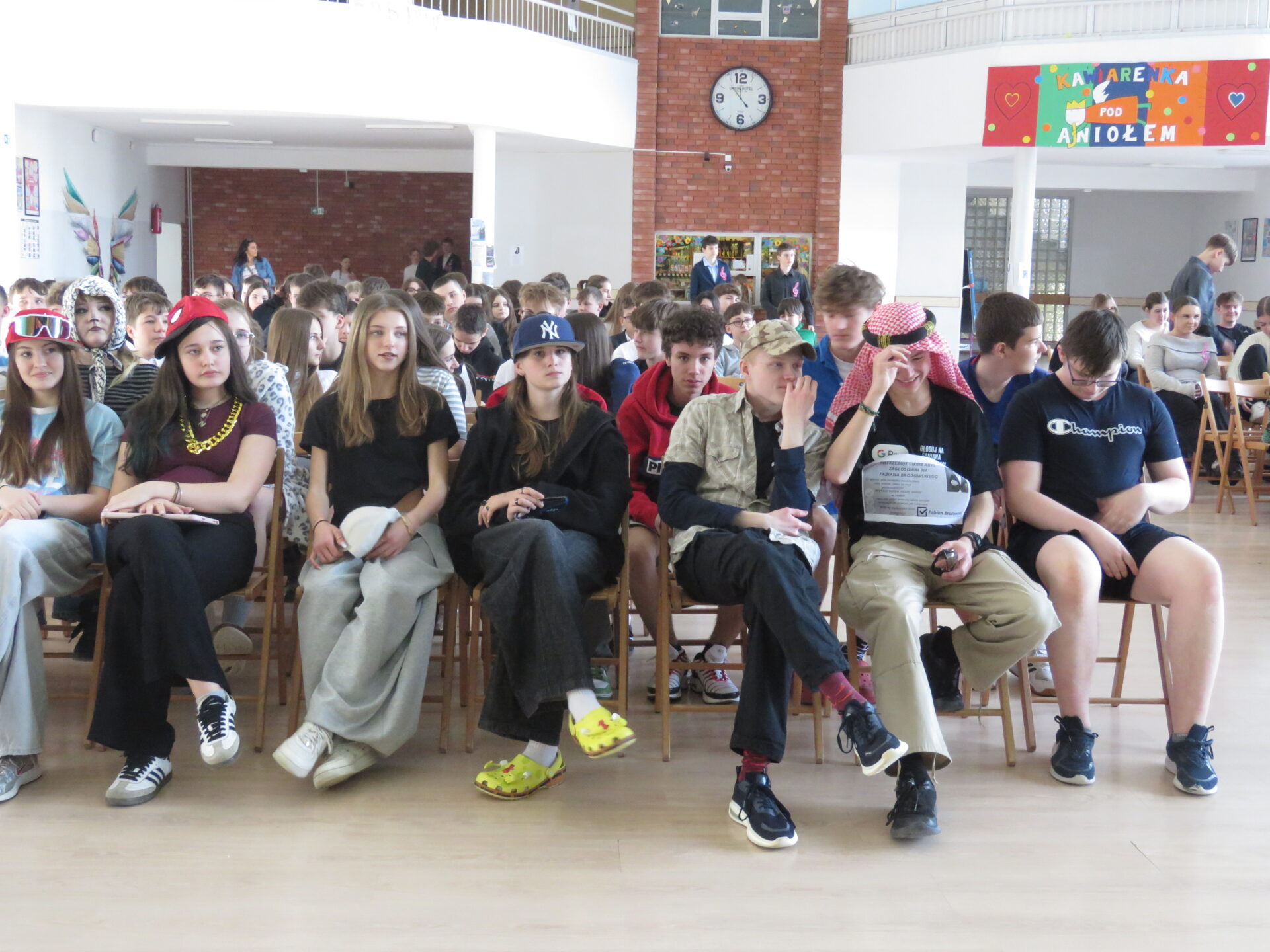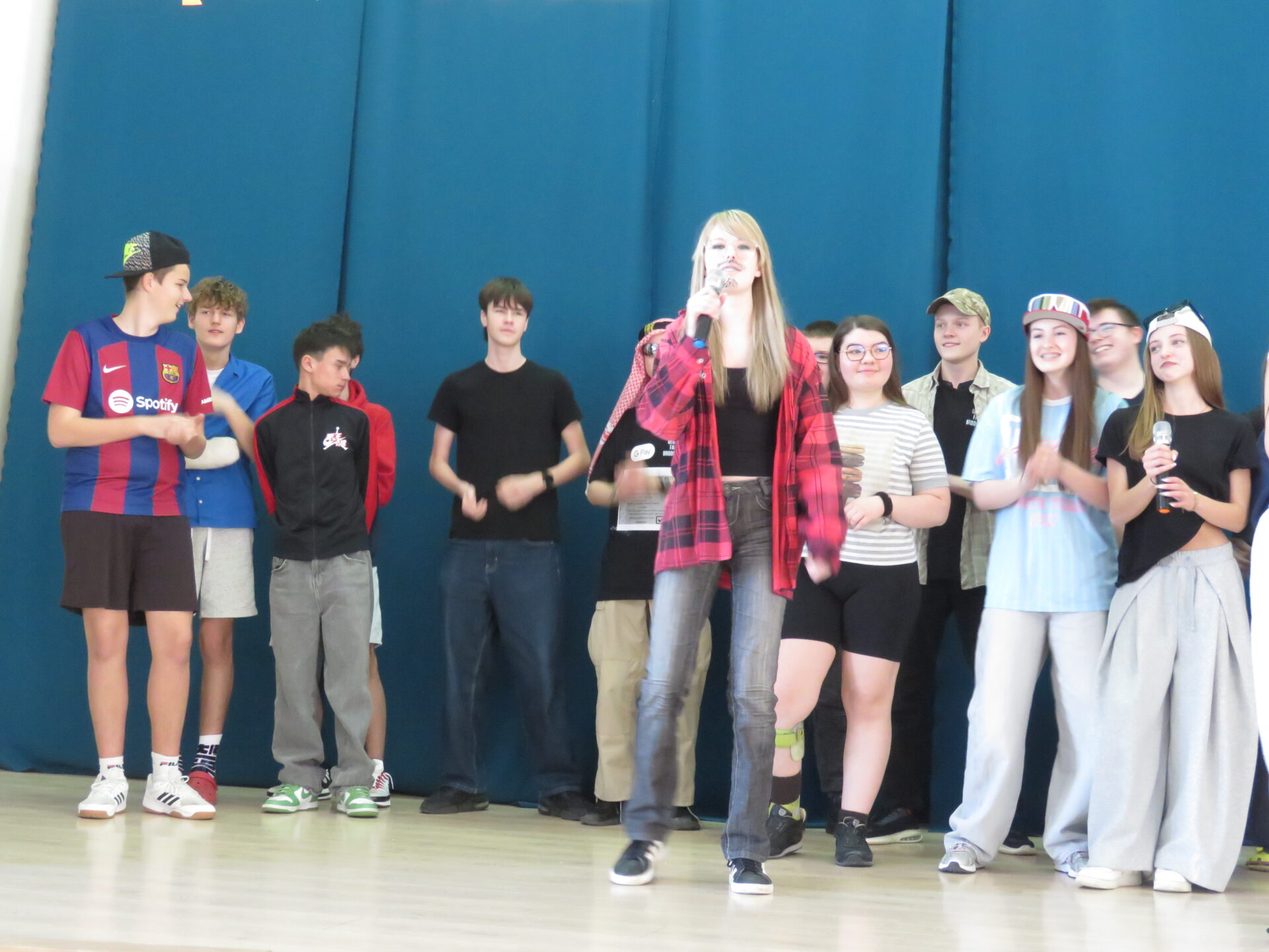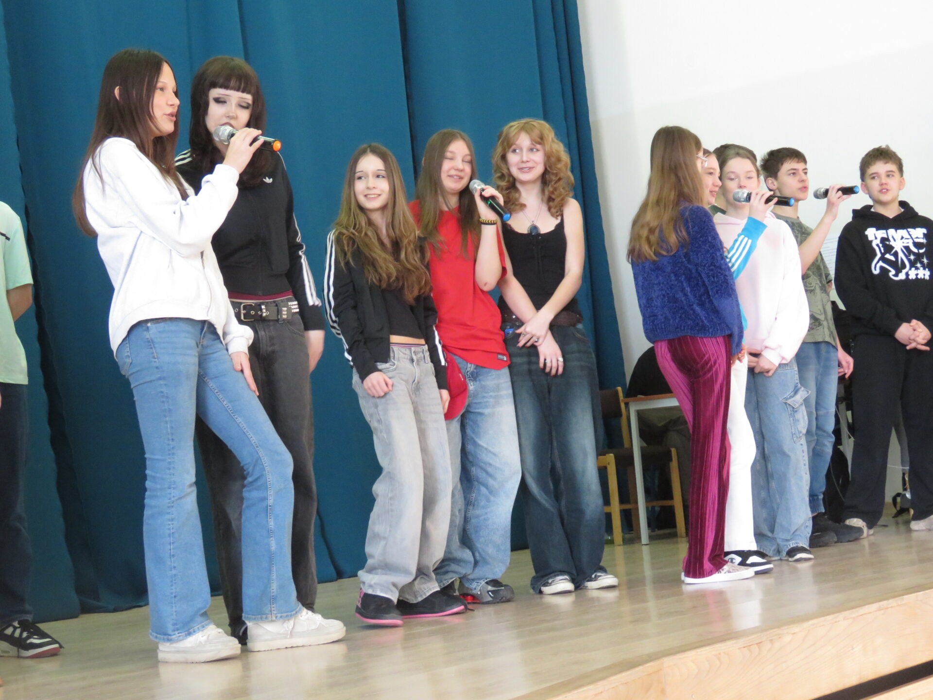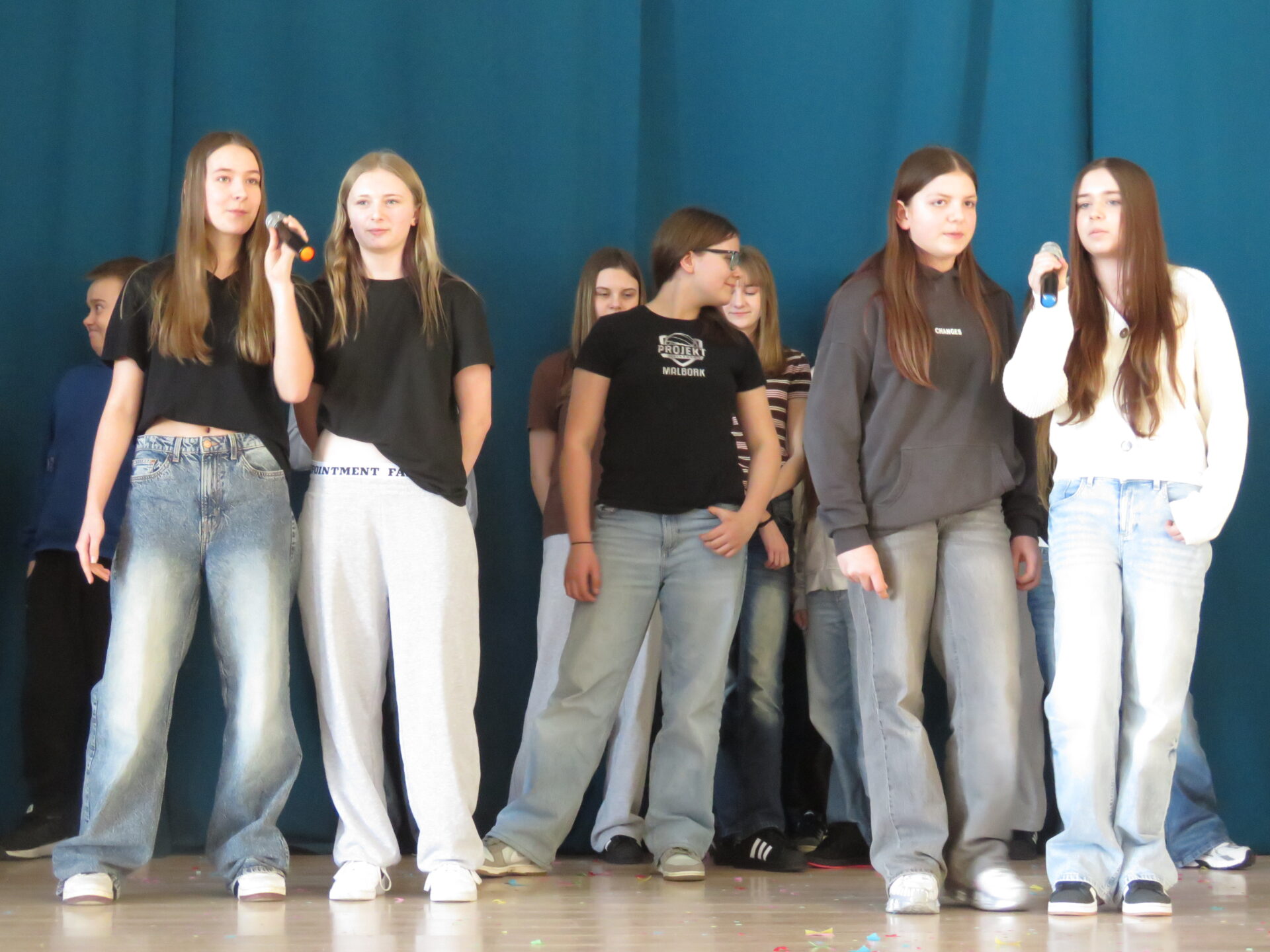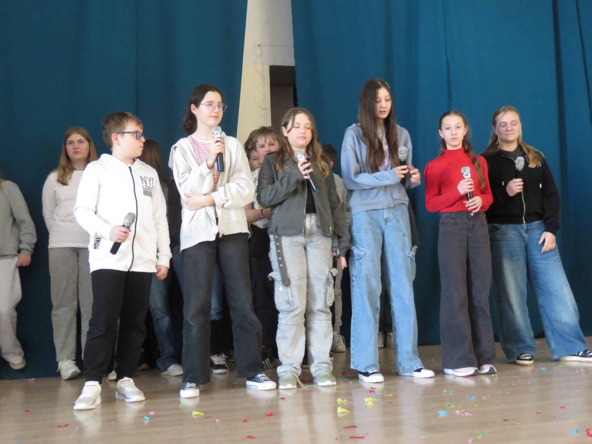 W dniach 18 i 19 marca 2026r. szkolną aulę wypełniły piękne głosy naszych uczniów. Każda z klas miała za zadanie przygotować wykonanie jednej piosenki, co stało się dla nich okazją do wspólnego działania. Podczas Międzyklasowego Konkursu Muzycznego usłyszeliśmy różnorodny repertuar, od ponadczasowych przebojów po najnowsze hity. Występujący zadbali nie tylko o wokalne walory prezentacji — wiele z nich wzbogaconych było o układy choreograficzne, rekwizyty czy stroje. Uczniowie włożyli w nie mnóstwo serca i to właśnie ich zaangażowanie było najważniejszą wartością.