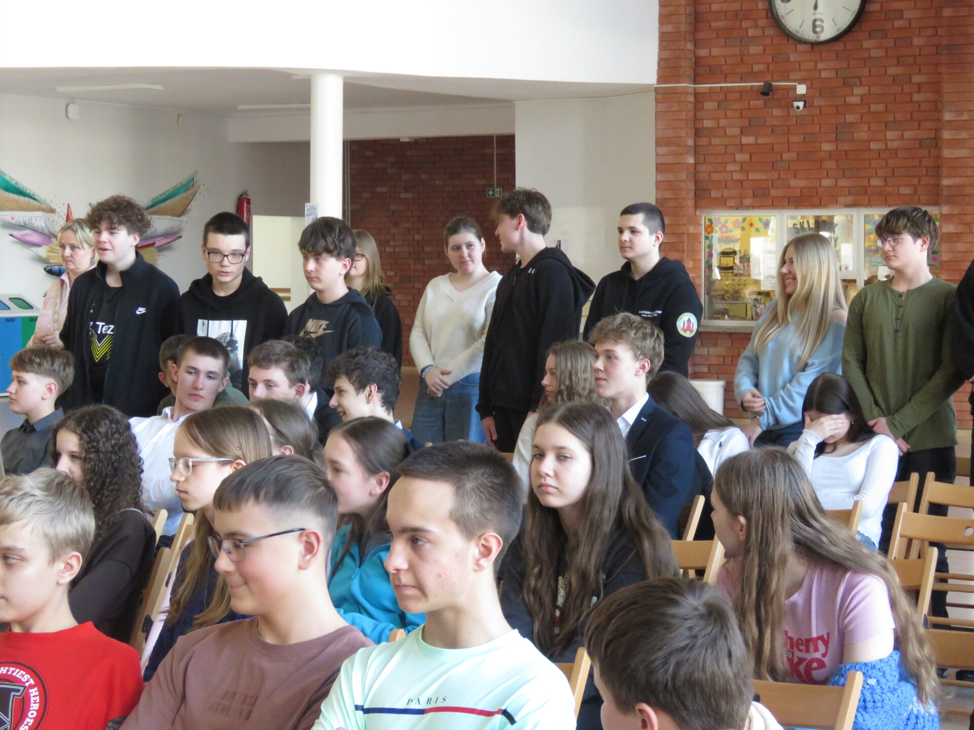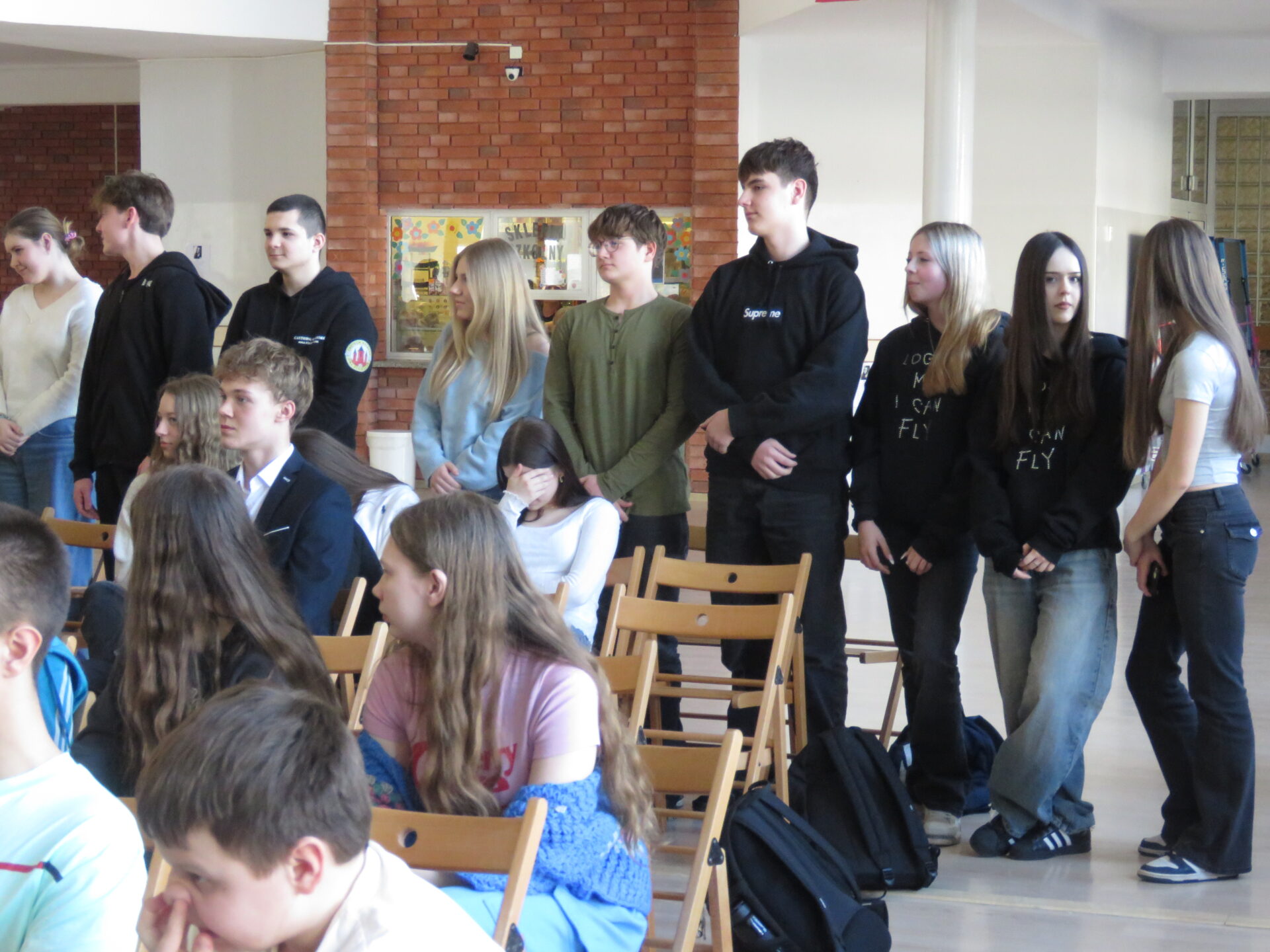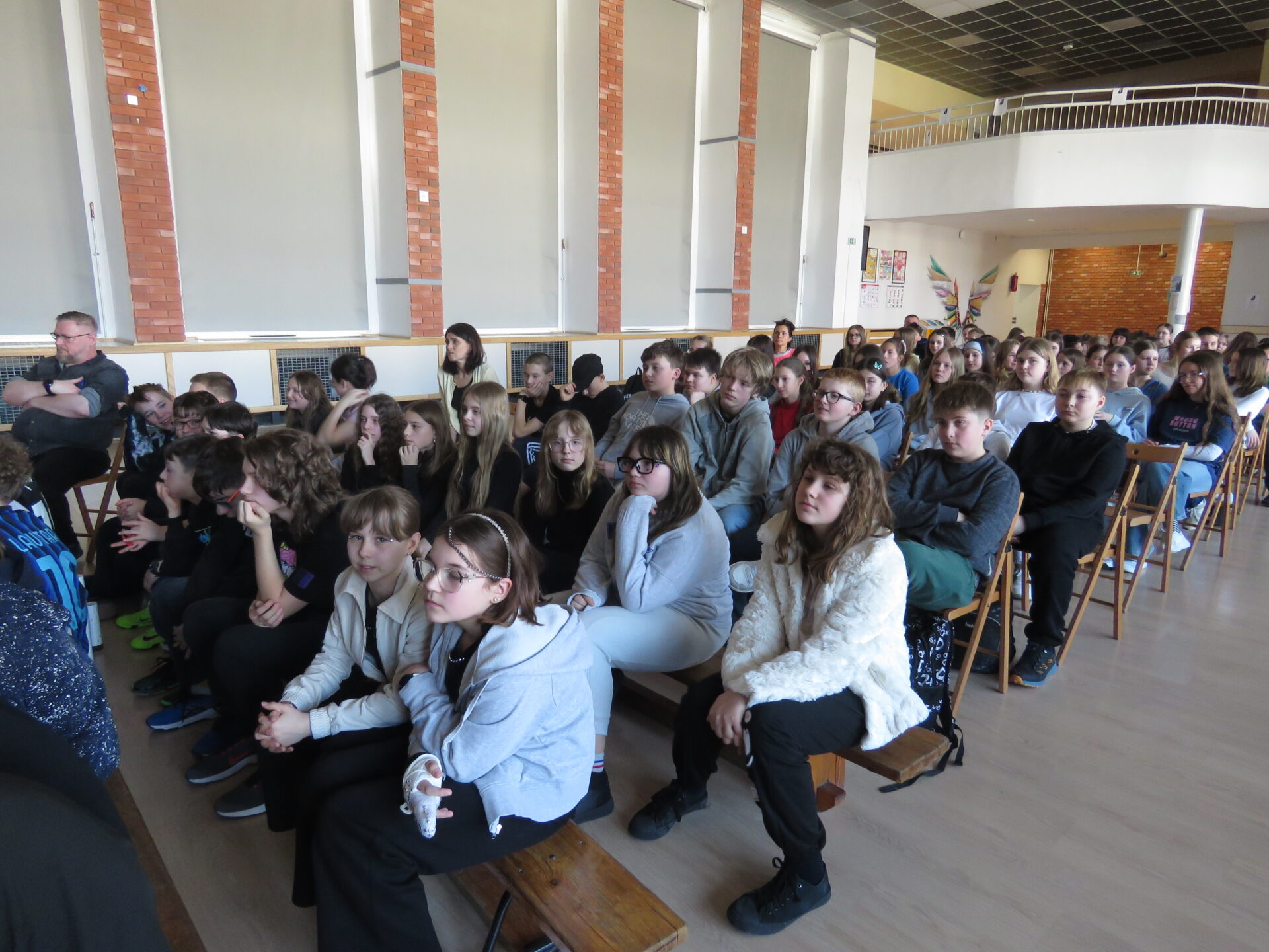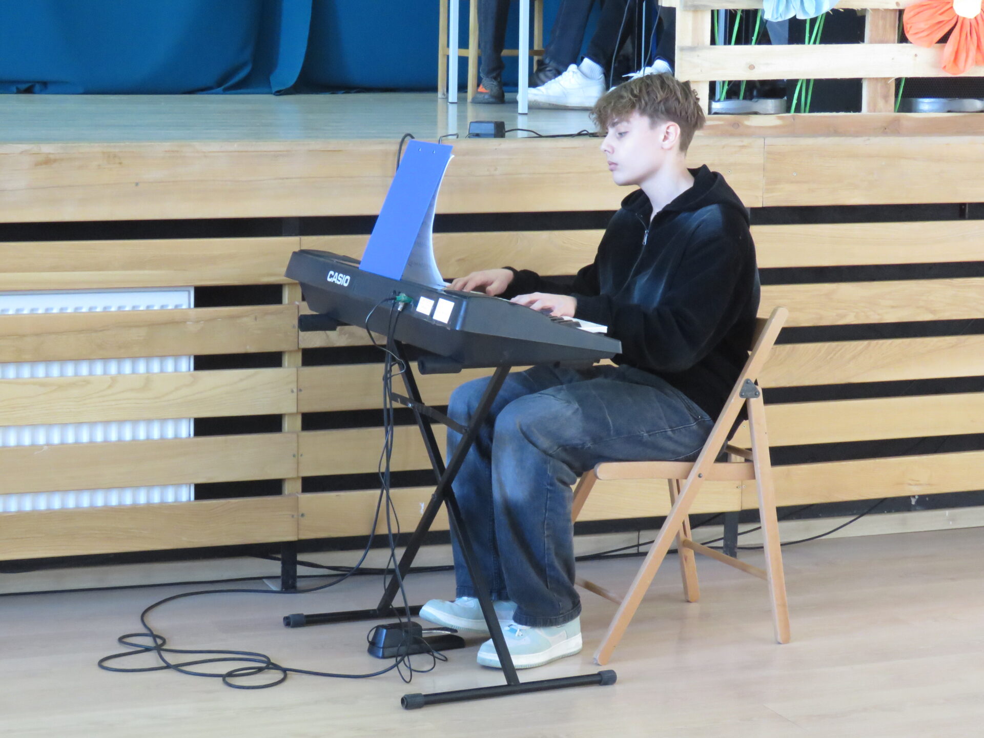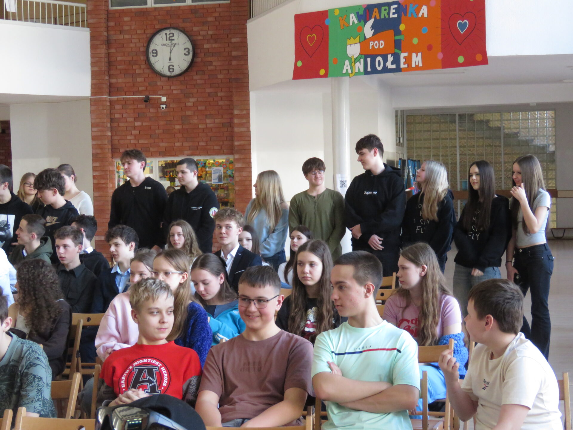 W dniach 18 i 19 marca 2026r. szkolną aulę wypełniły piękne głosy naszych uczniów. Każda z klas miała za zadanie przygotować wykonanie jednej piosenki, co stało się dla nich okazją do wspólnego działania. Podczas Międzyklasowego Konkursu Muzycznego usłyszeliśmy różnorodny repertuar, od ponadczasowych przebojów po najnowsze hity. Występujący zadbali nie tylko o wokalne walory prezentacji — wiele z nich wzbogaconych było o układy choreograficzne, rekwizyty czy stroje. Uczniowie włożyli w nie mnóstwo serca i to właśnie ich zaangażowanie było najważniejszą wartością.