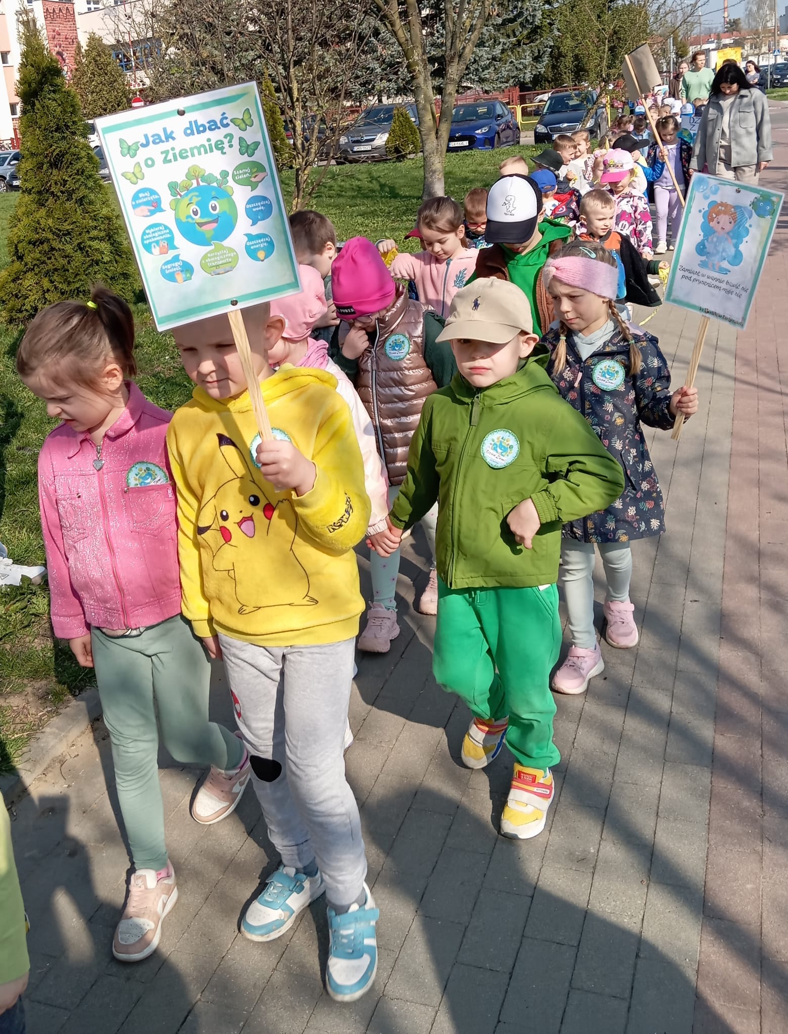 Podczas marszu przedszkolaki z radością promowały postawy proekologiczne – przypominały o potrzebie dbania o naszą planetę, czyste powietrze i rośliny. Kolorowe plakaty, ekologiczne hasła, śpiewane piosenki i radosne okrzyki dodawały wydarzeniu pozytywnej energii i zwracały uwagę przechodniów na ważne tematy związane z ochroną środowiska.