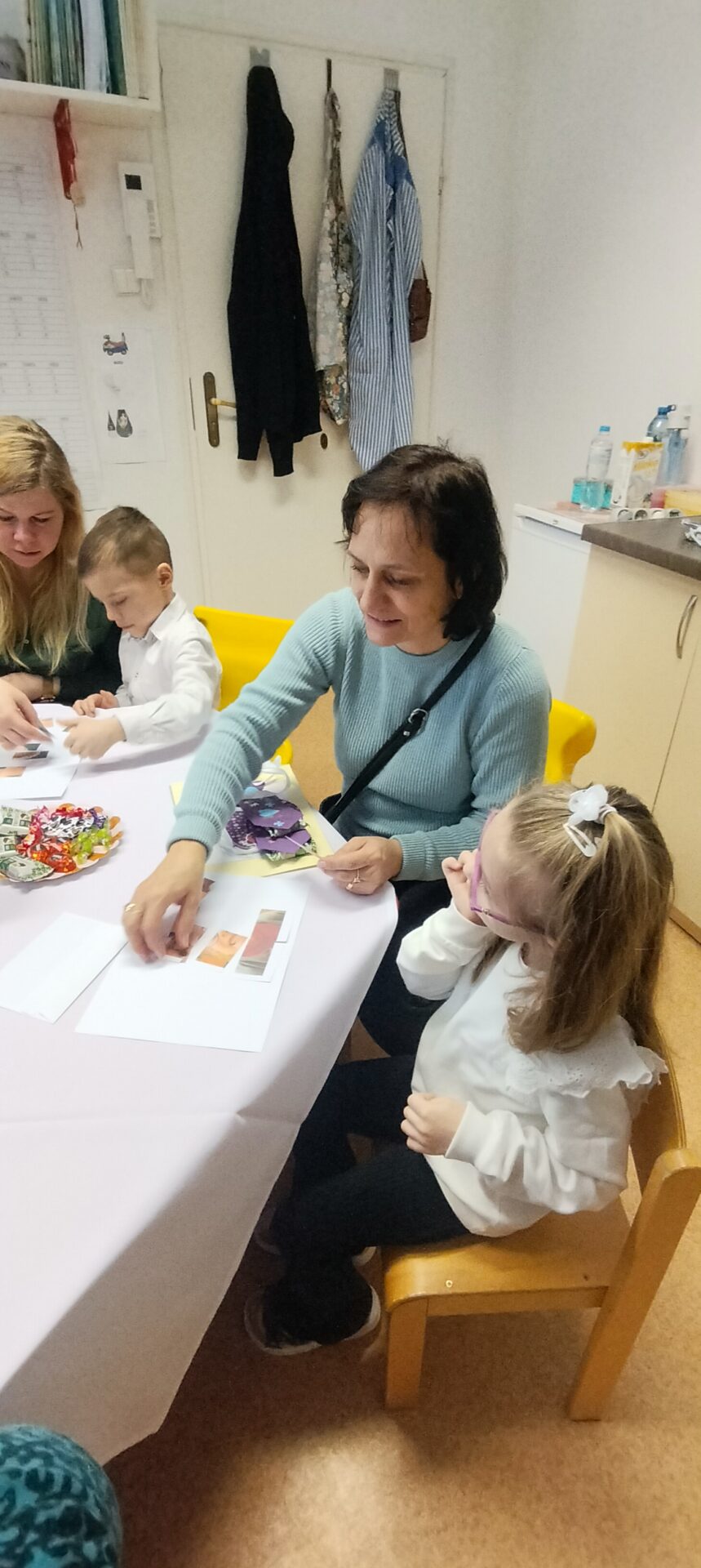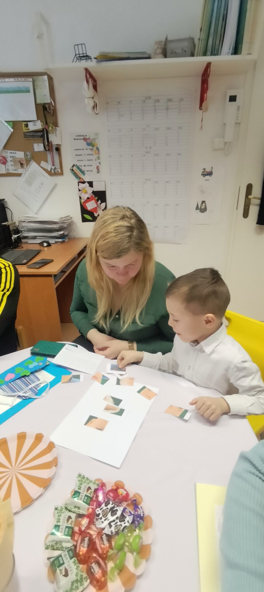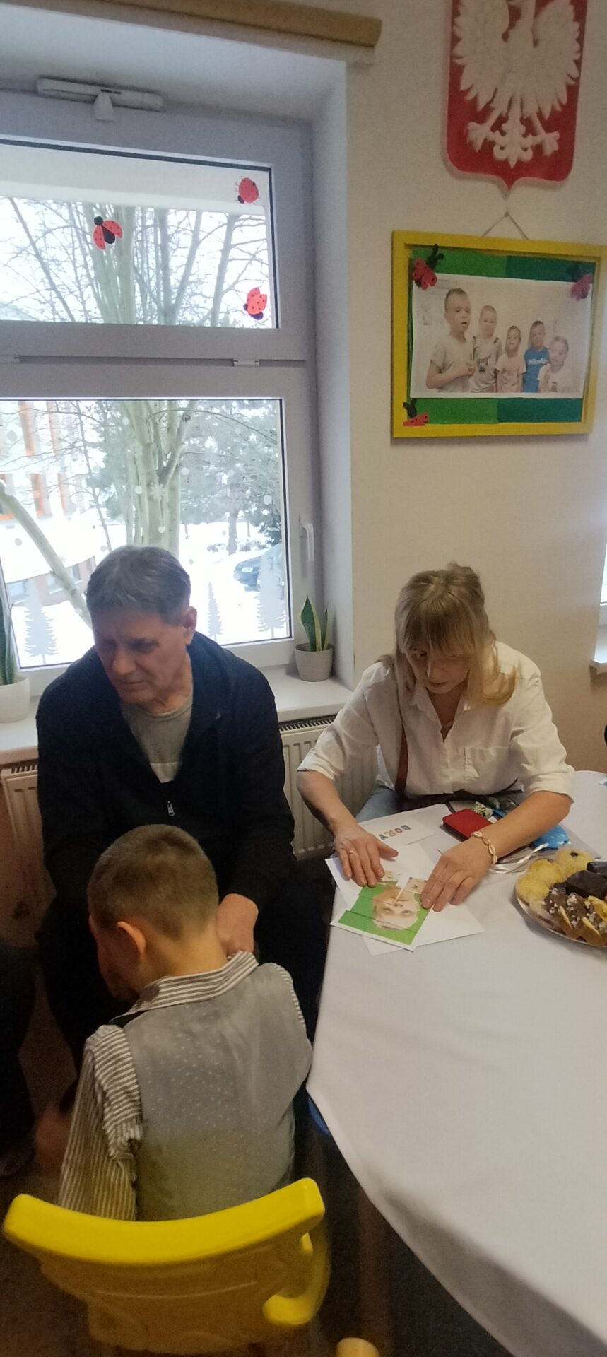 Kolejnym punktem programu były warsztaty integracyjne, podczas których dzieci wspólnie z dziadkami układały puzzle, z których powstało zdjęcie dziecka. Zajęcia sprzyjały współpracy i budowaniu więzi międzypokoleniowych.