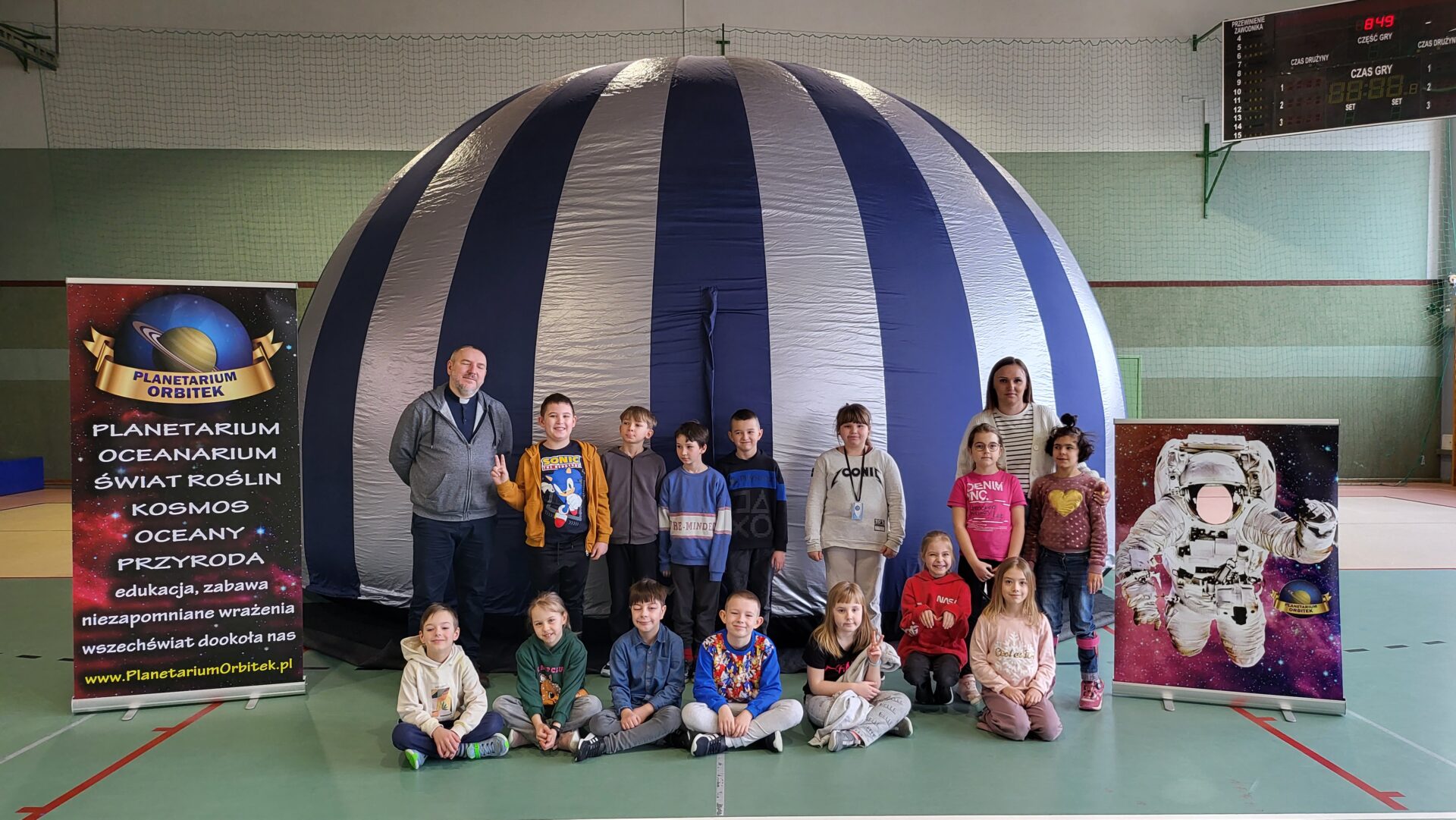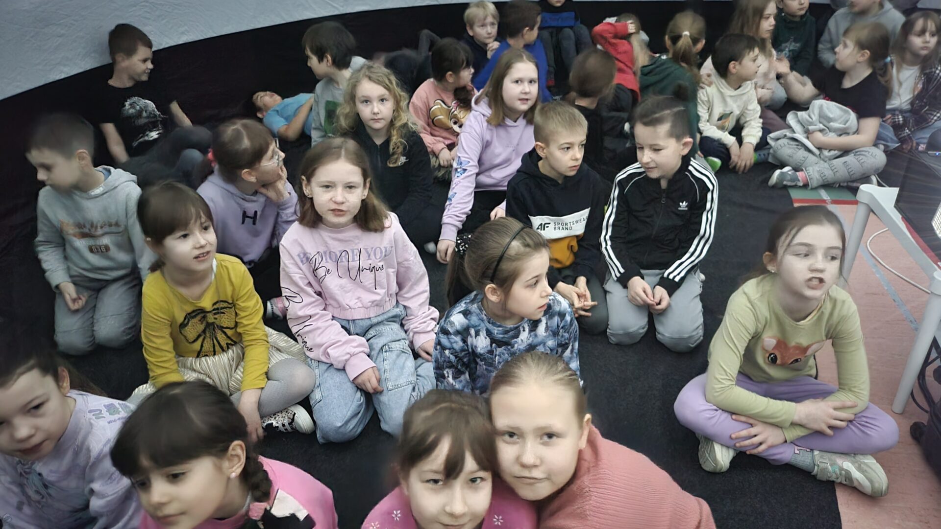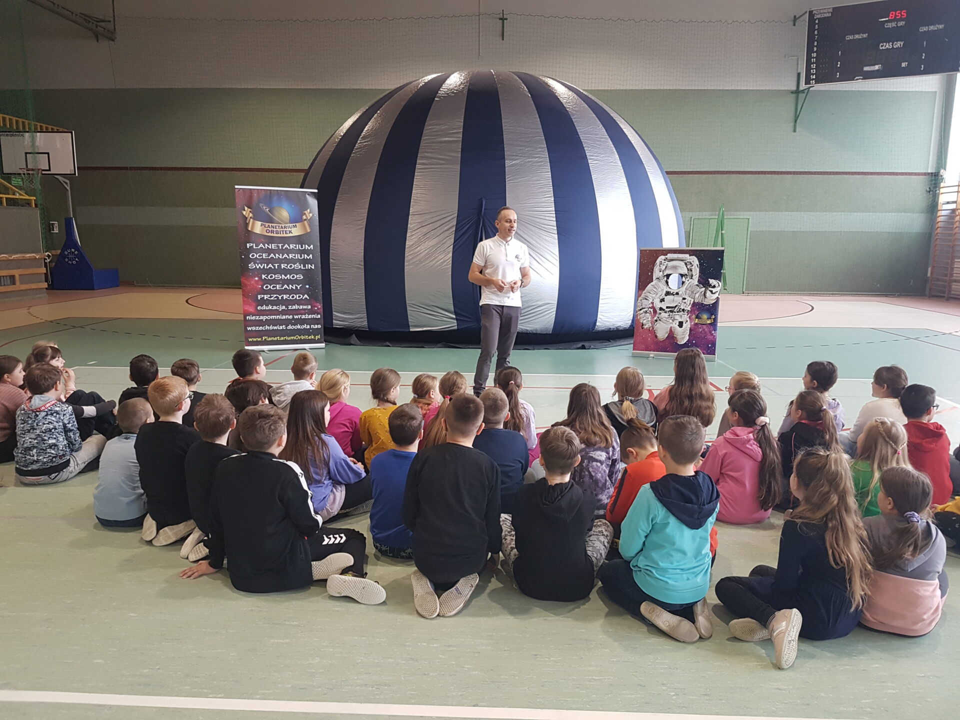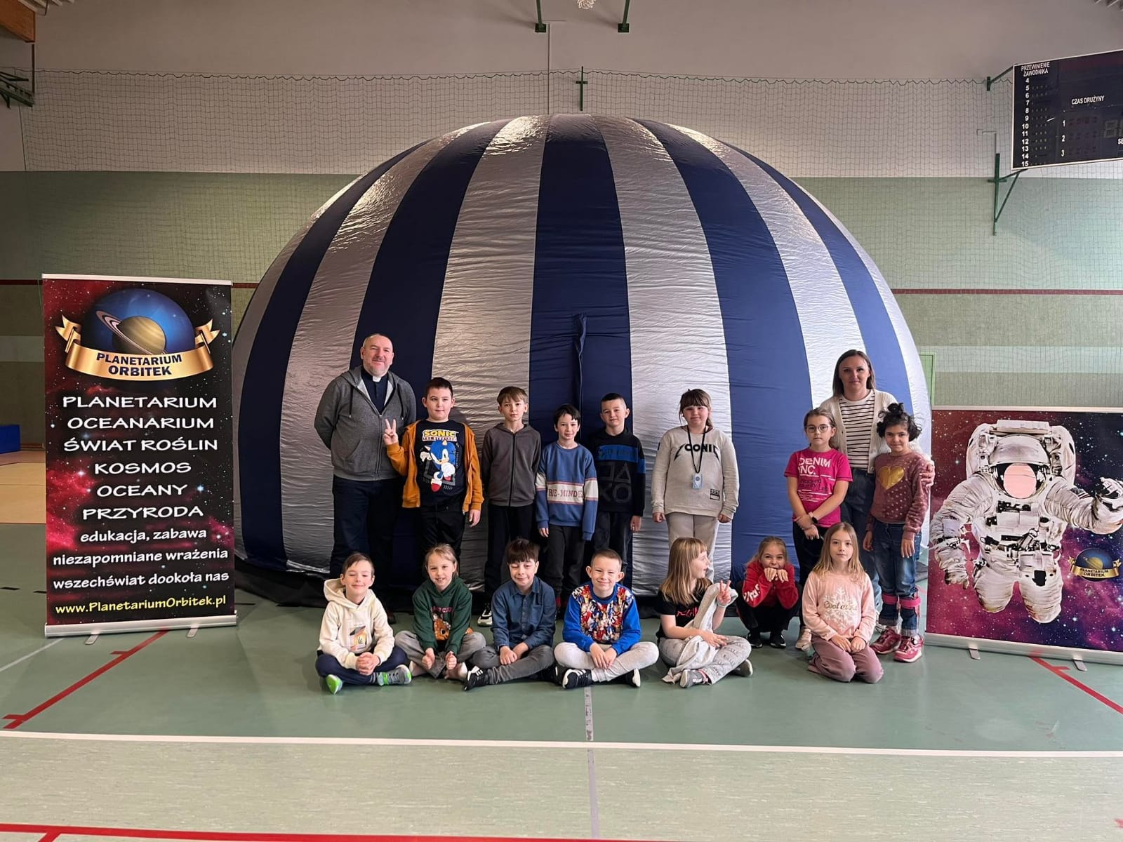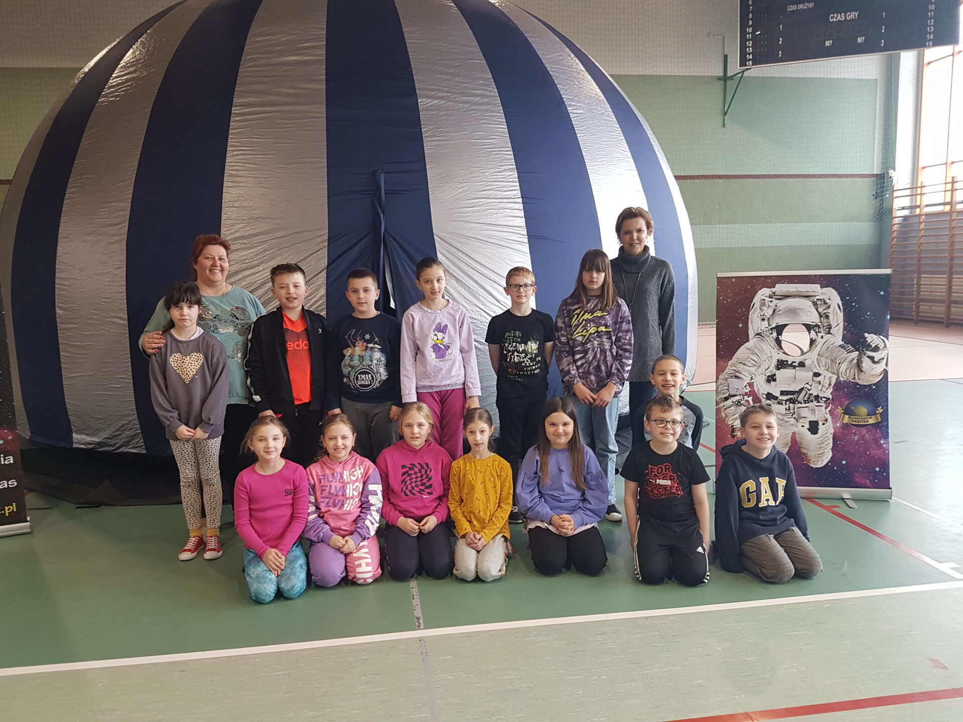 W czwartek 30.04 pierwsza grupa uczniów z naszej szkoły uczestniczyła w seansie edukacyjnym w mobilnym planetarium „Mój kosmos”. Druga grupa odbędzie seanse 13.04. Dzięki pokazom, dzieci dowiedziały się i zobaczyły jak powstaje wszechświat, galaktyki, Układ Słoneczny. Pokaz, dla każdej z grup osobno, odbył się w specjalnej kopule o kształcie kuli, która dawała wrażenie przestrzeni kosmicznej.