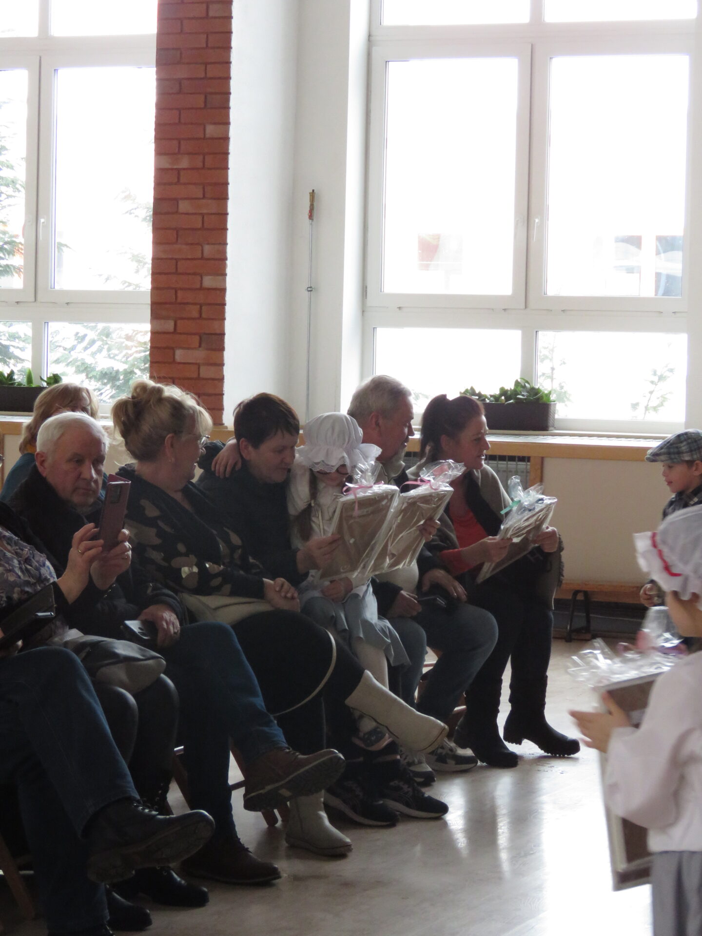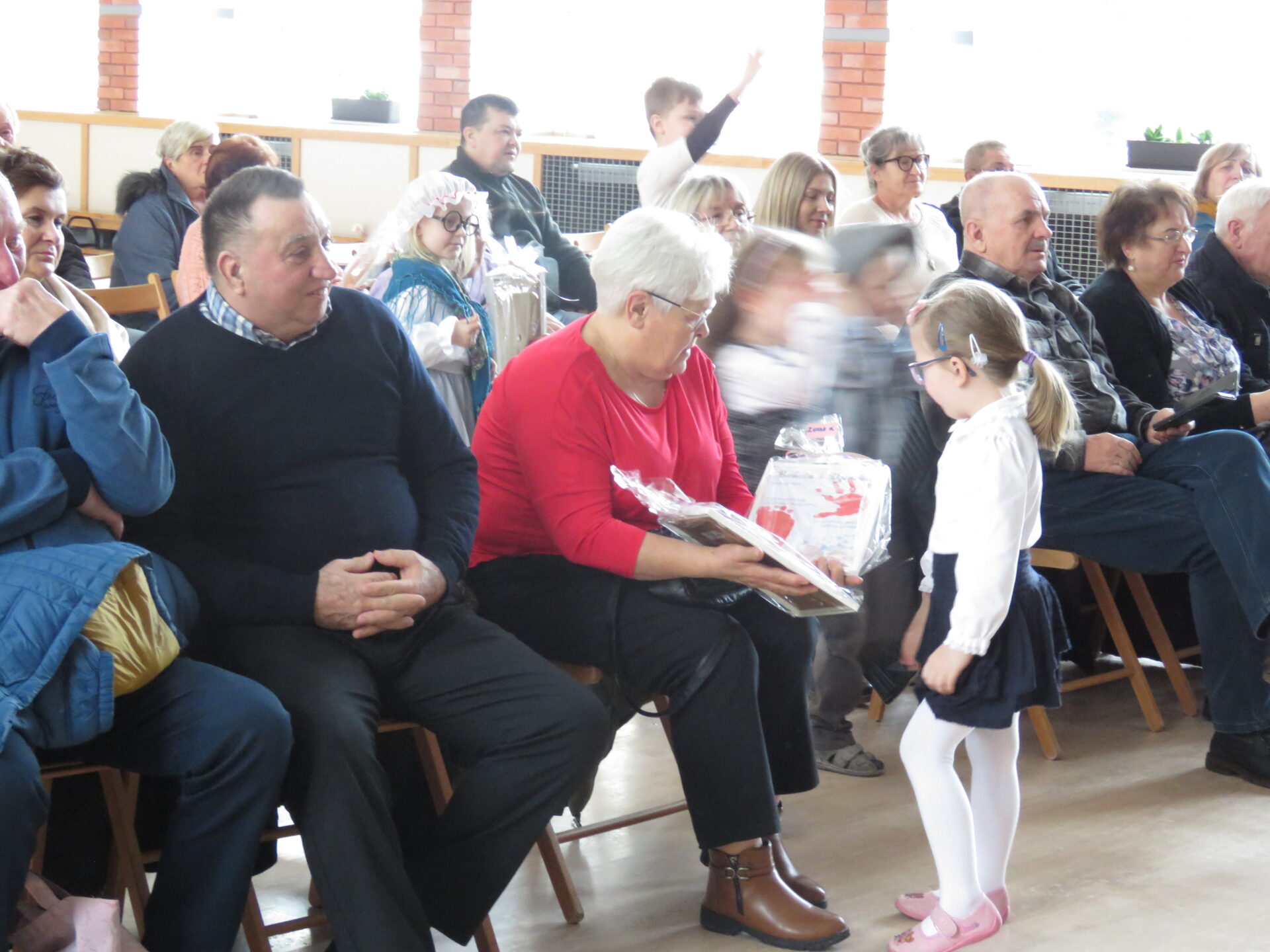 Po części artystycznej przedszkolaki złożyły naszym wspaniałym Gościom życzenia oraz wręczyły własnoręcznie wykonane upominki. Następnie wszyscy zostali zaproszeni na słodki poczęstunek, który był okazją do rozmów oraz integracji środowiska przedszkolnego z rodzinnym.