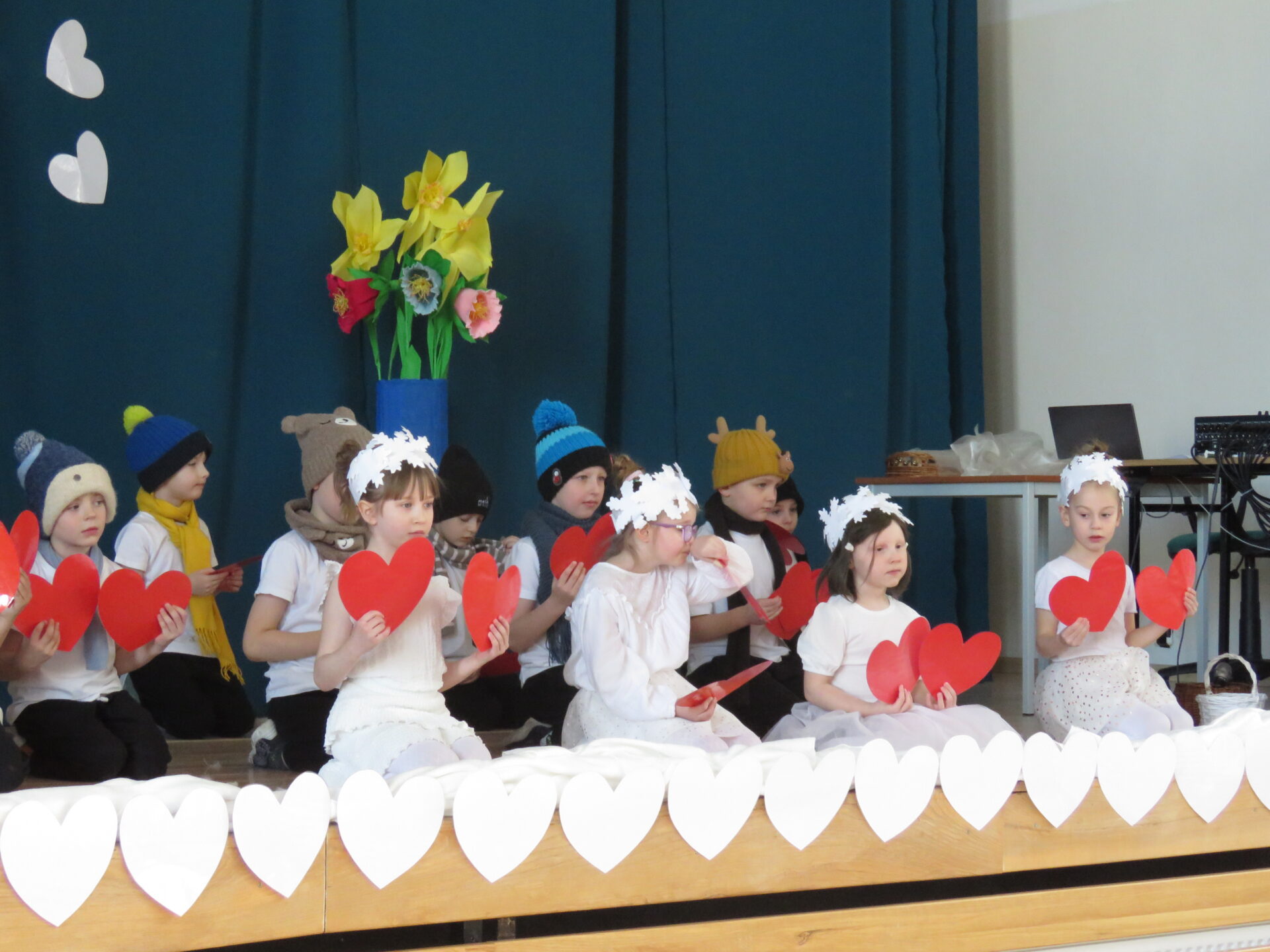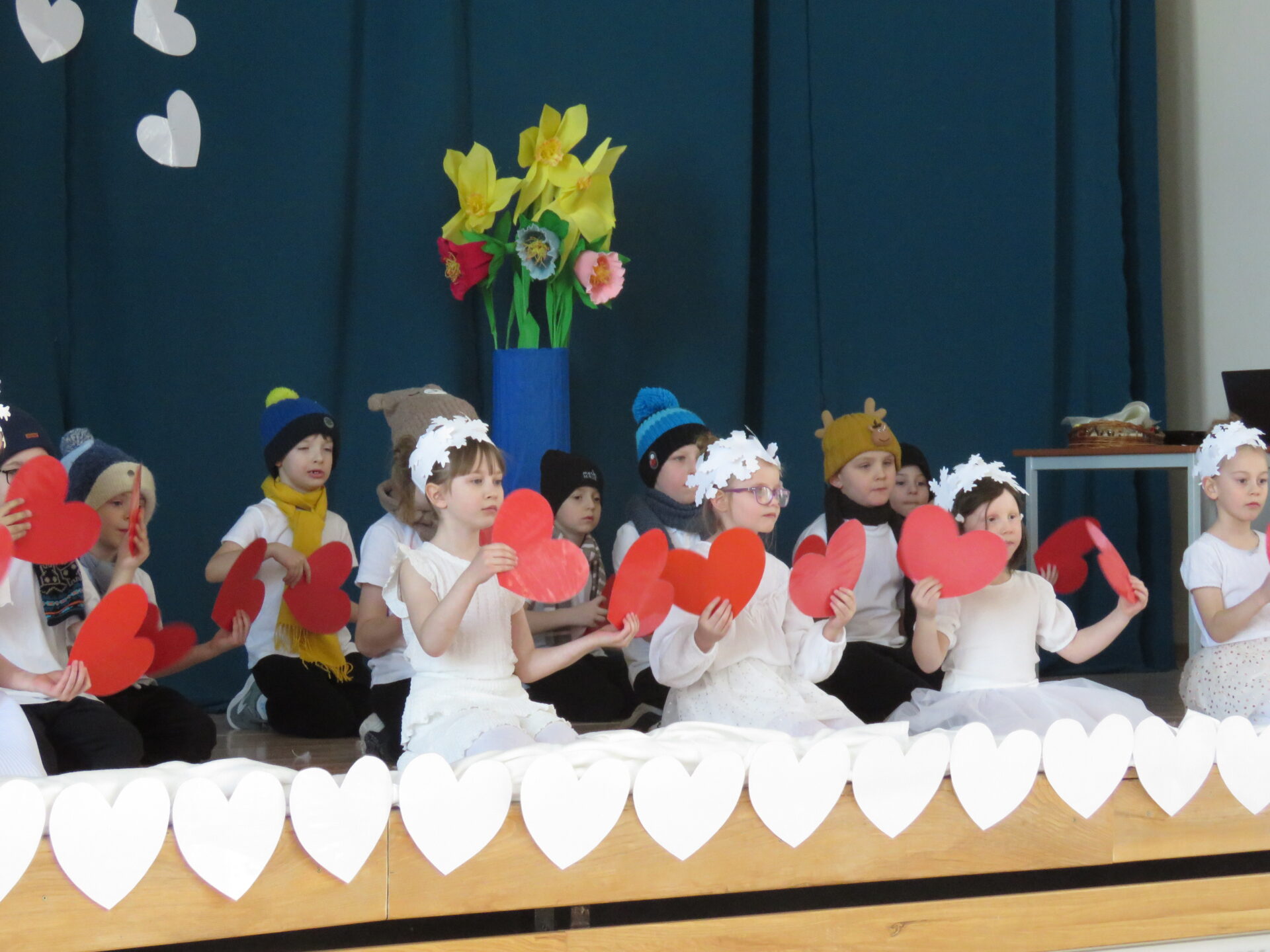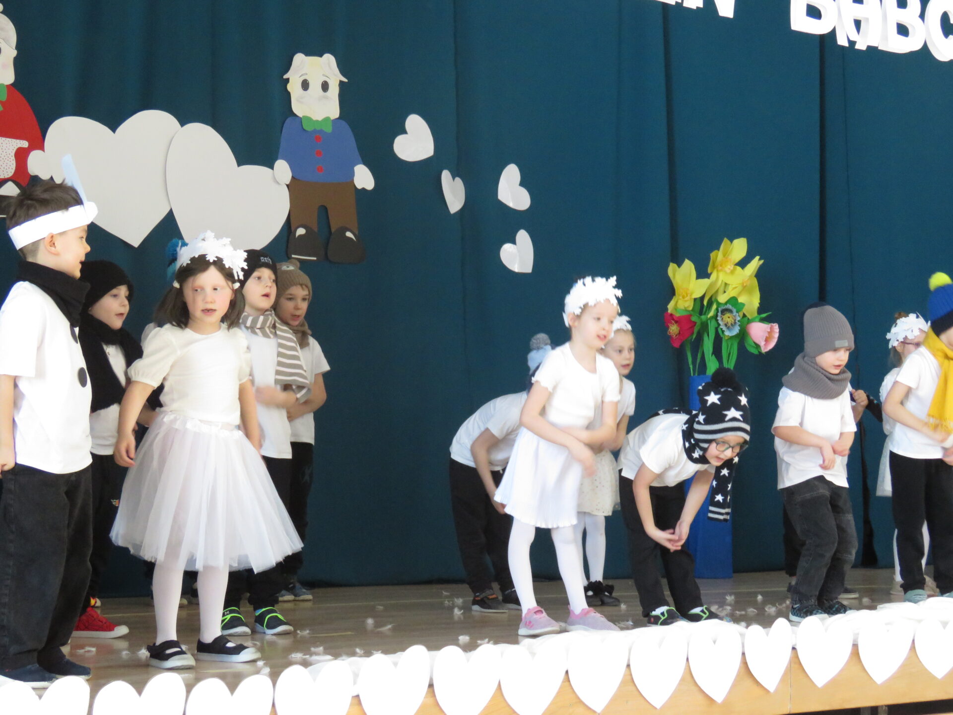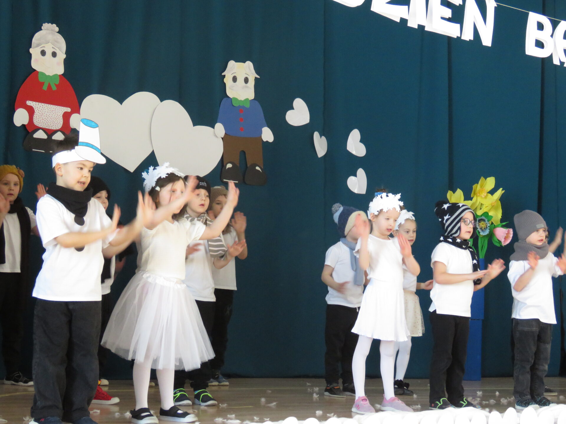 Dzieci z wszystkich grup wiekowych zaprezentowały programy artystyczne, do których przygotowywały się z ogromnym zaangażowaniem. Przedszkolaki pięknie recytowały wiersze, śpiewały piosenki oraz tańczyły, wyrażając w ten sposób swoją miłość, szacunek i wdzięczność wobec ukochanych Babć i Dziadków. Mali artyści włożyli w występy całe swoje serduszka, za co zostali nagrodzeni gromkimi brawami. Dzieci przysporzyły swoim bliskim wiele radości oraz łez wzruszenia.