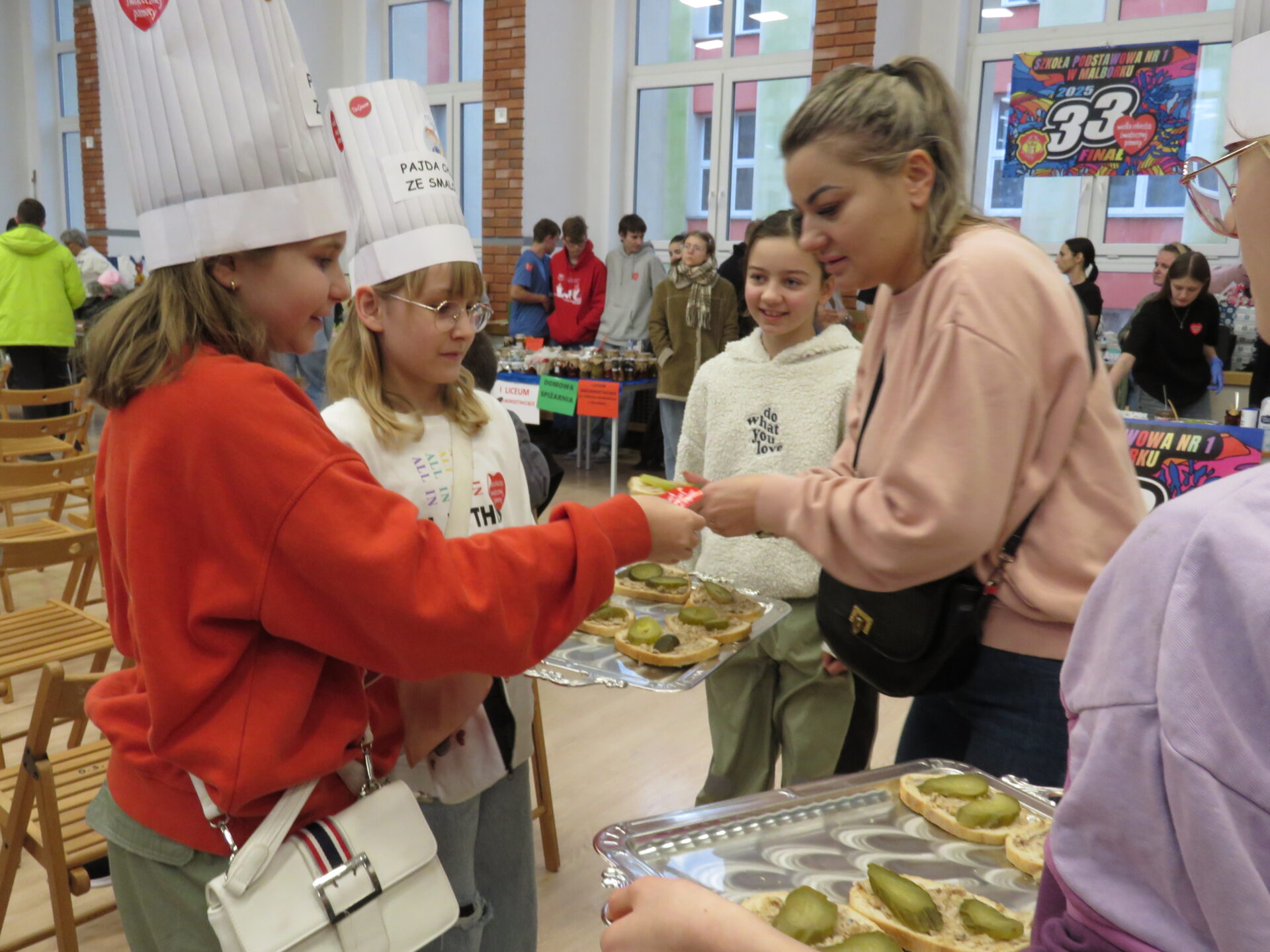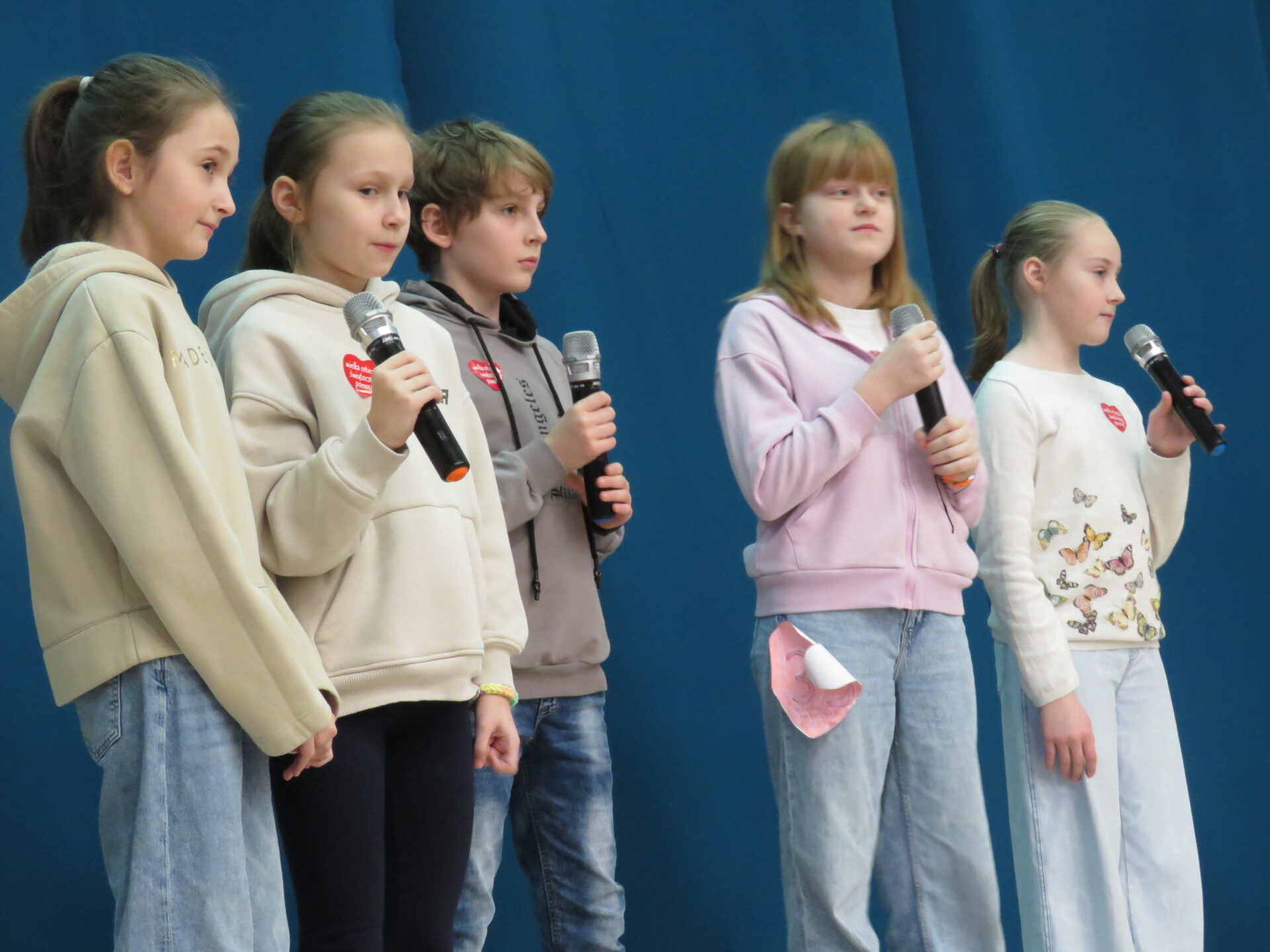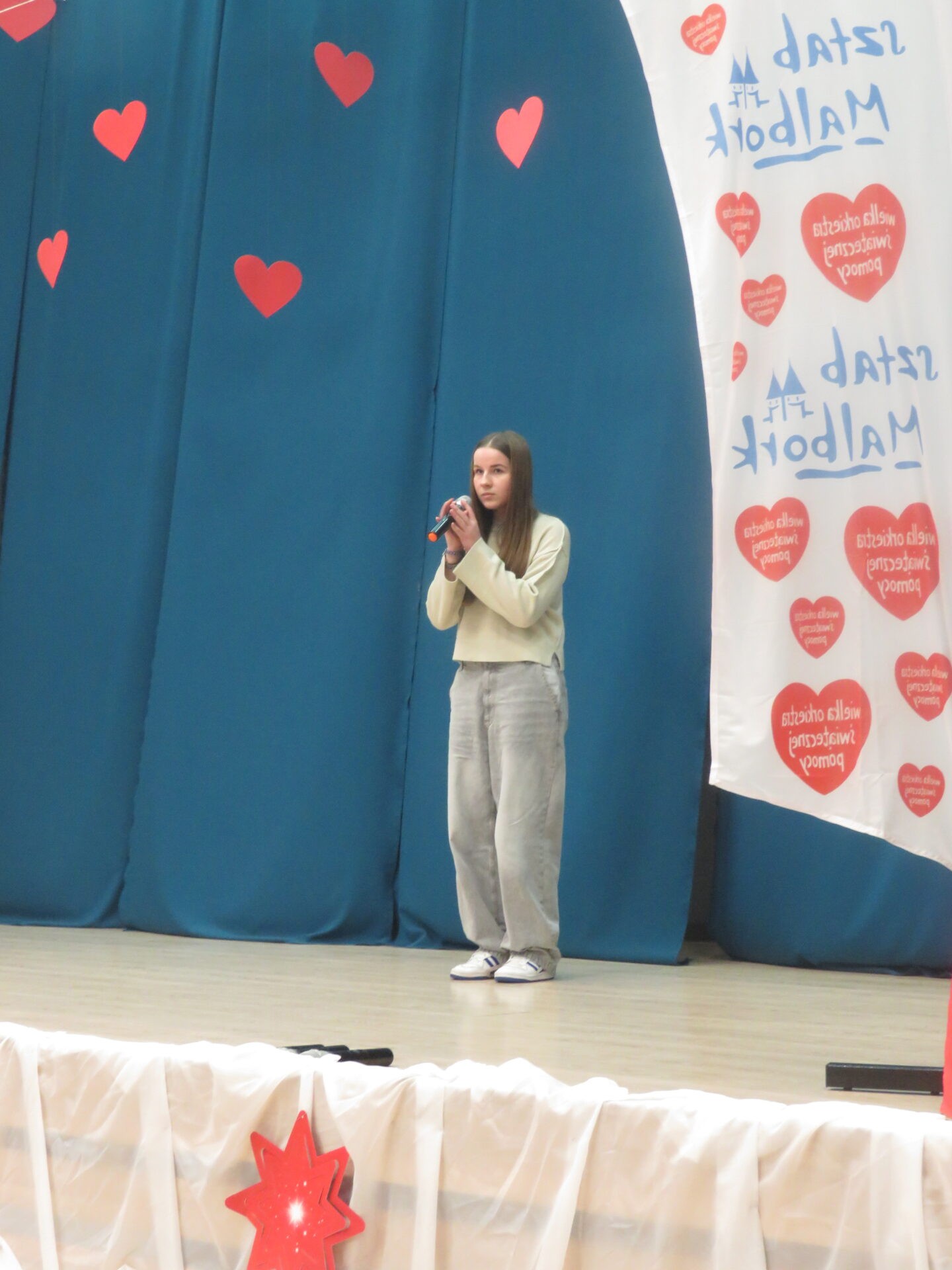 W dniu 26.01.2025r. odbył się w naszej szkole finał 33 Wielkiej Orkiestry Świątecznej Pomocy. Zebranych powitała szefowa malborskiego sztabu Pani Marta Wróblewska.