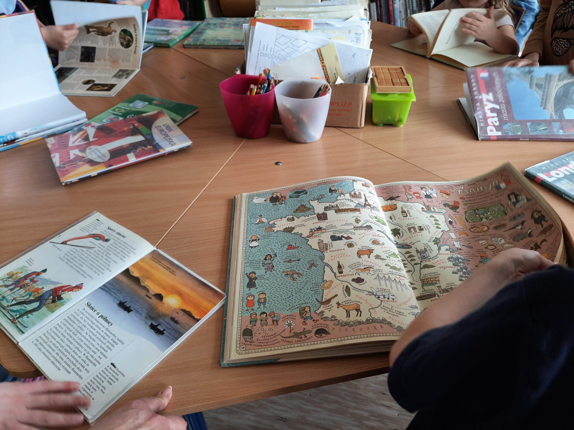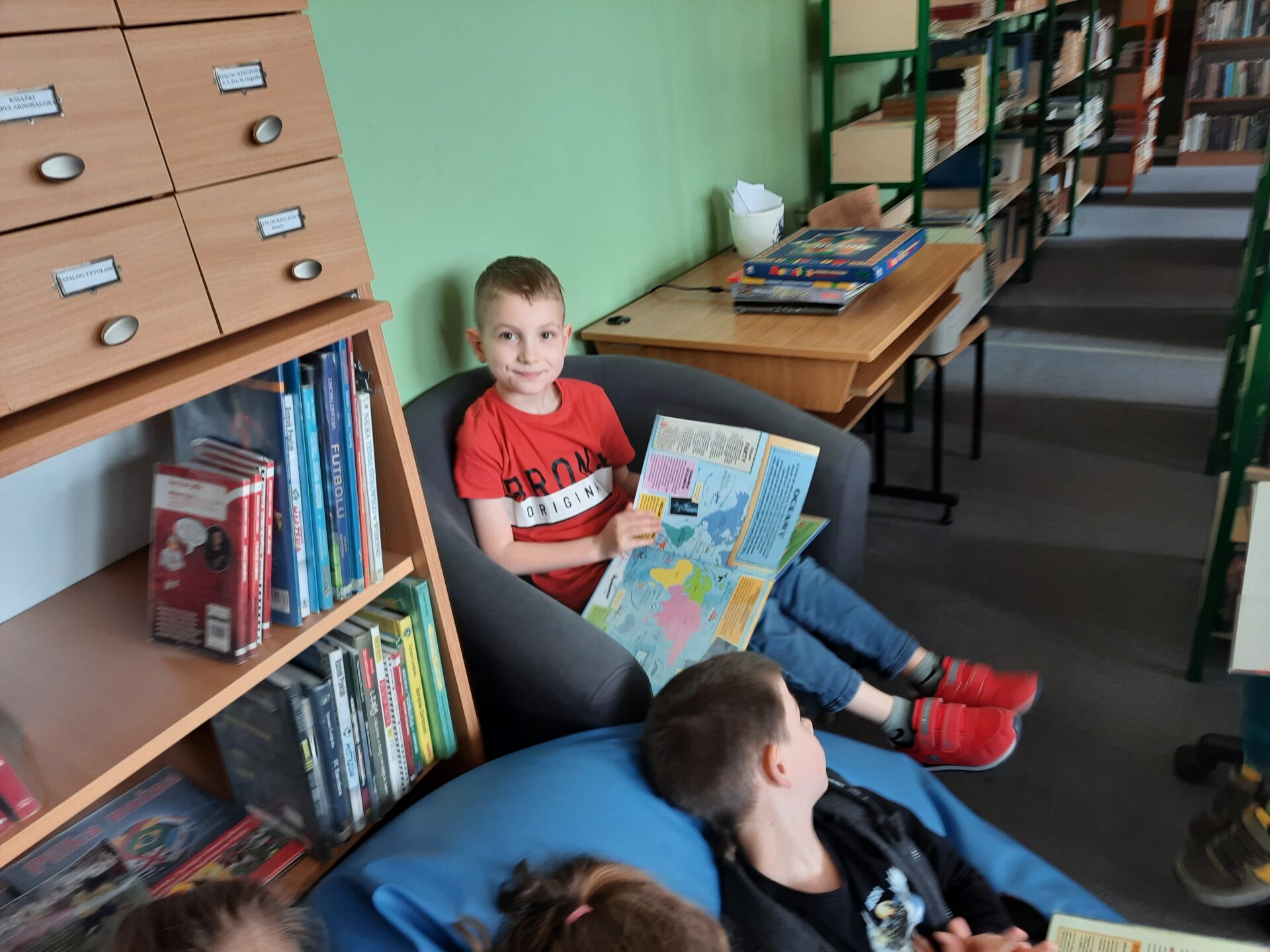 Uczniowie klas pierwszych, uczęszczający do świetlicy szkolnej, biorą udział w projekcie czytelniczym „Podróżowanie przez czytanie”.