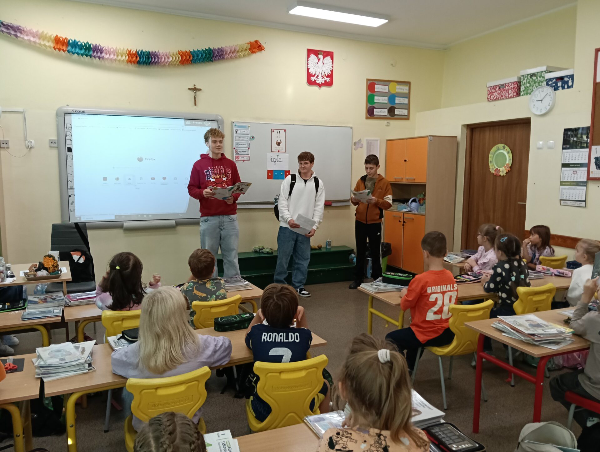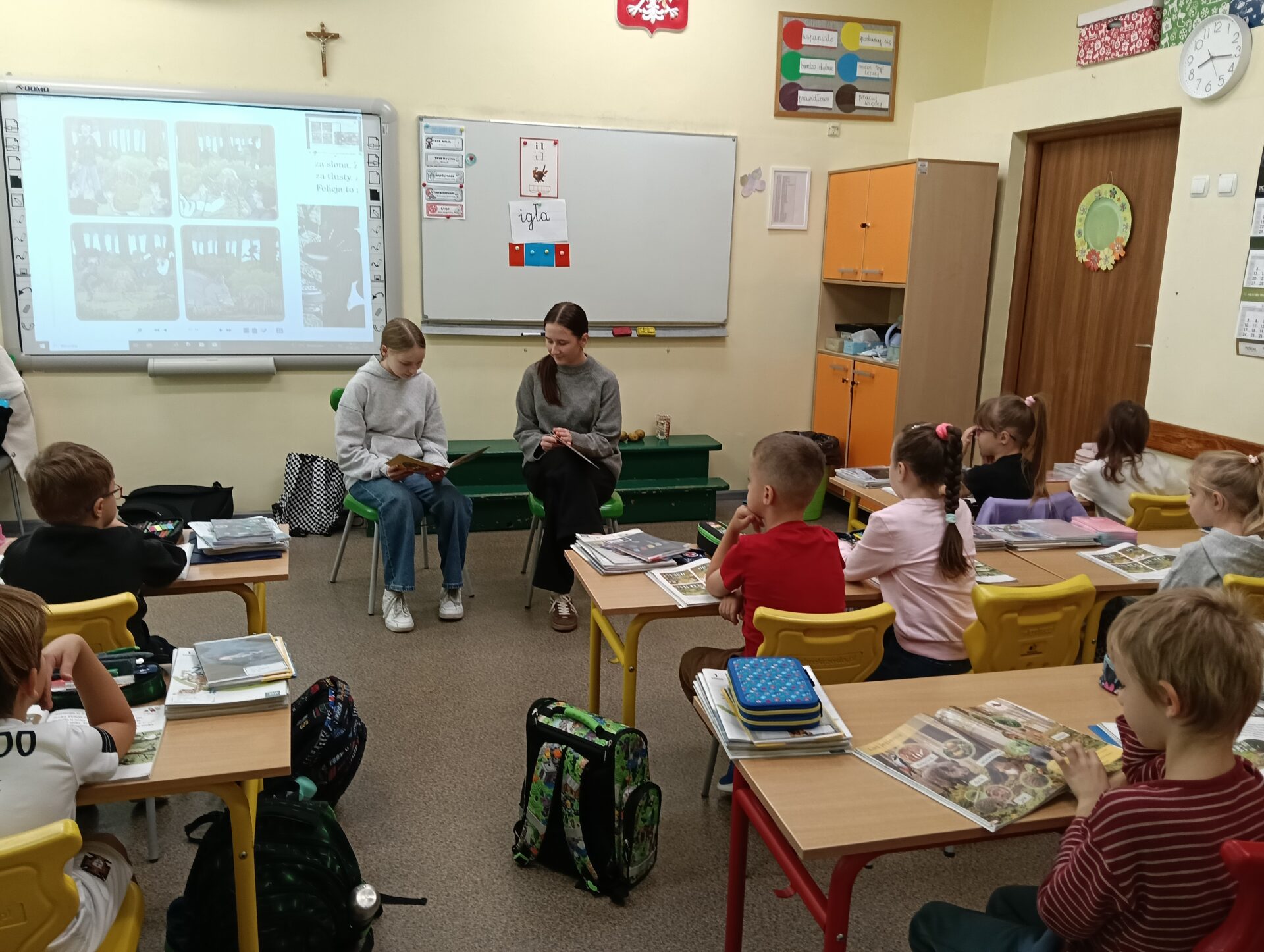 W piątek uczniowie starszej klasy 7d wzięli udział w przedsięwzięciu „Starsi czytają młodszym”, podczas którego przeczytali bajki terapeutyczne z morałem.