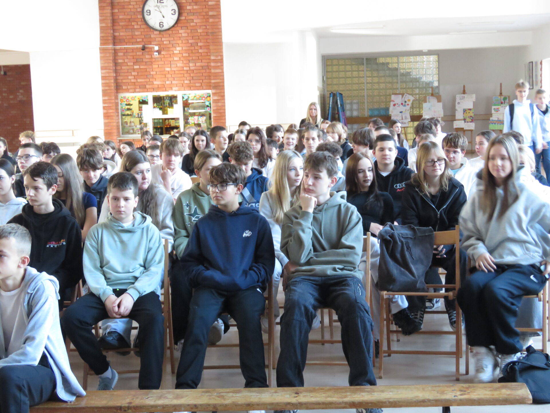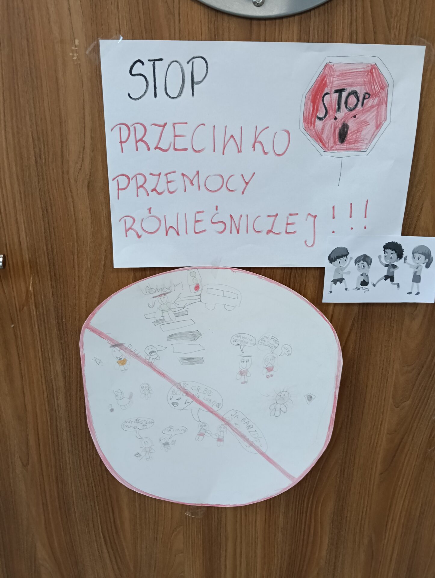 W klasach 1-3 uczniowie wykonali „Znaki zakazu”, które zostały przedstawione w formie znaków zakazu sytuacji będącej przemocą rówieśniczą. W klasach 4-8 zostały wykonano plakaty, głosowanie zostanie przeprowadzone wśród nauczycieli, a klasa, która zwycięży-otrzyma prezent w postaci braku sprawdzianów przez dwa dni.