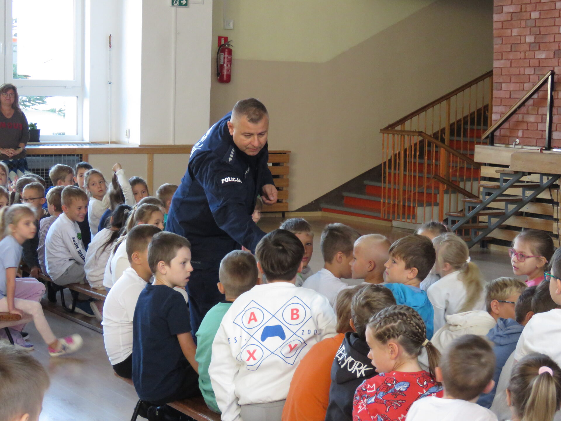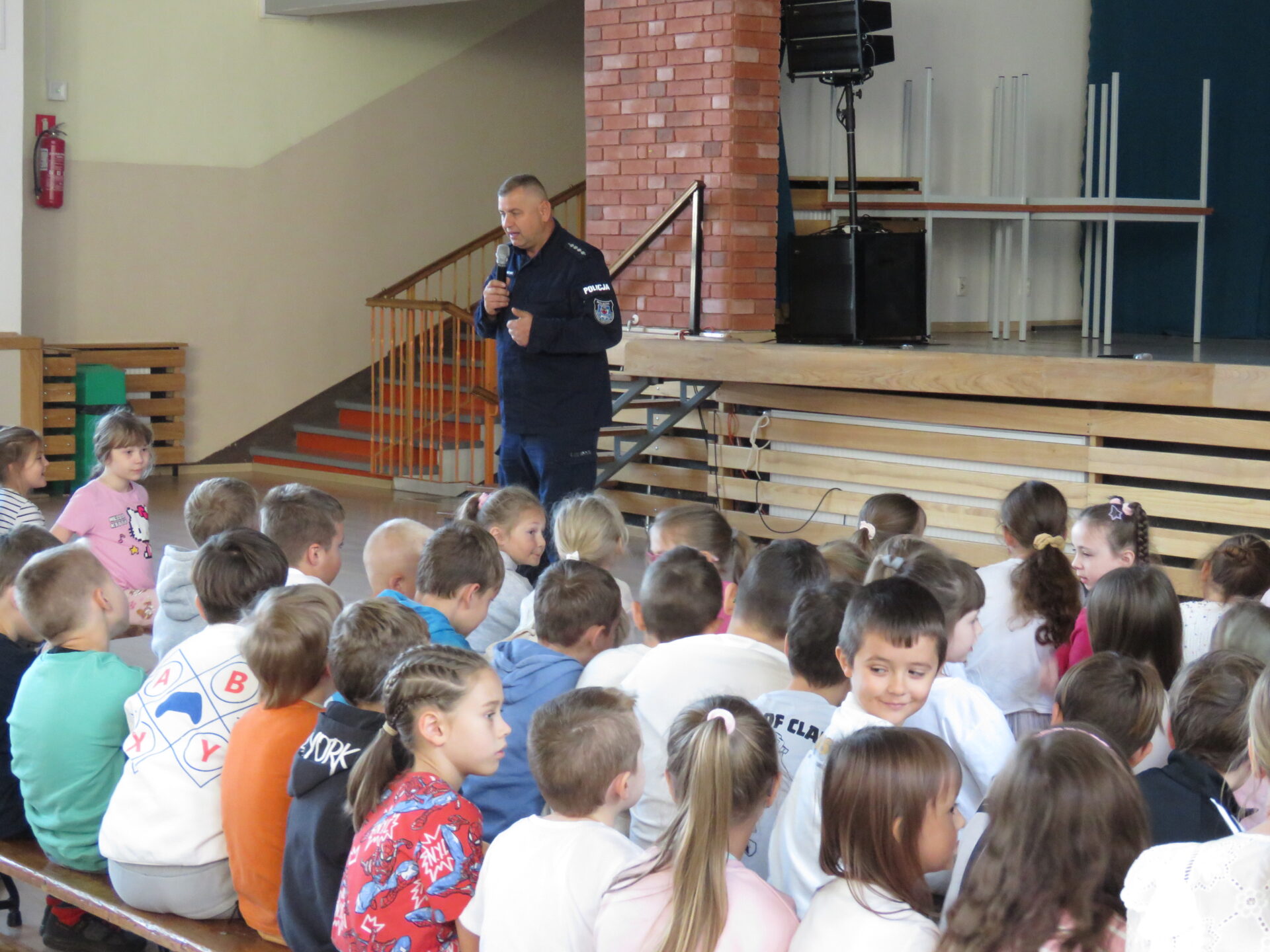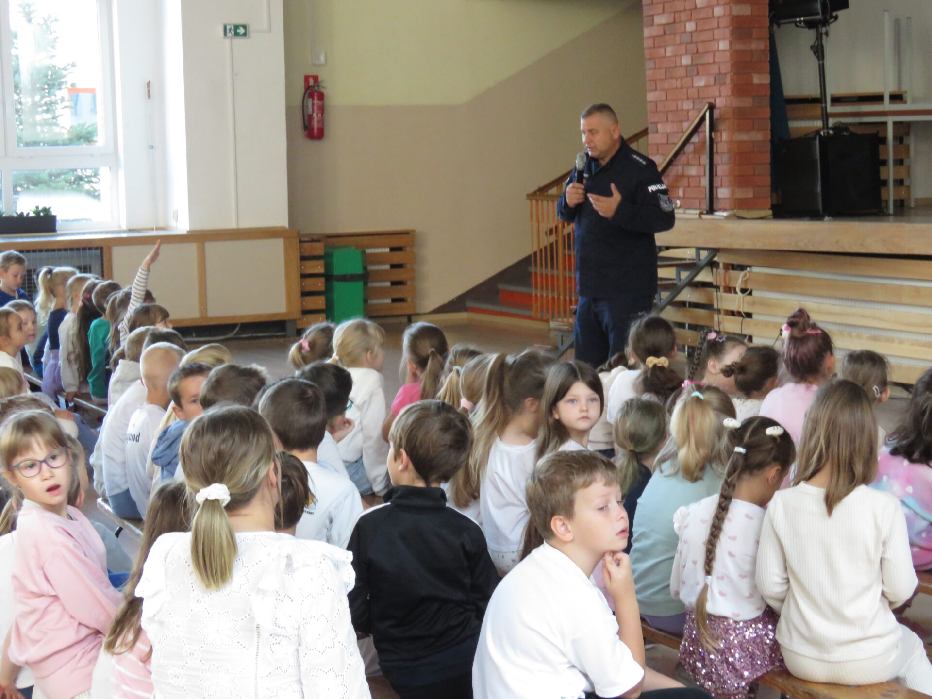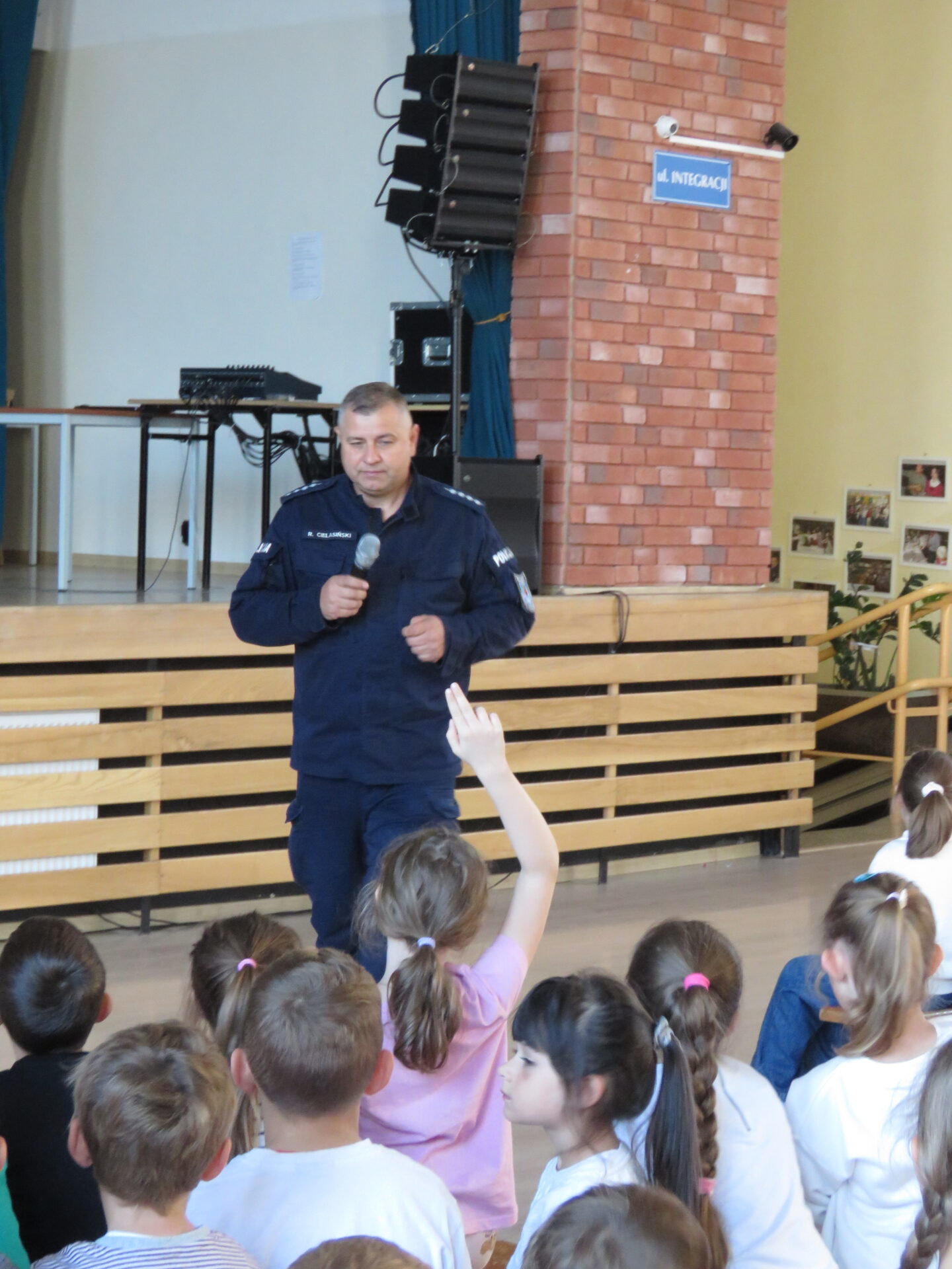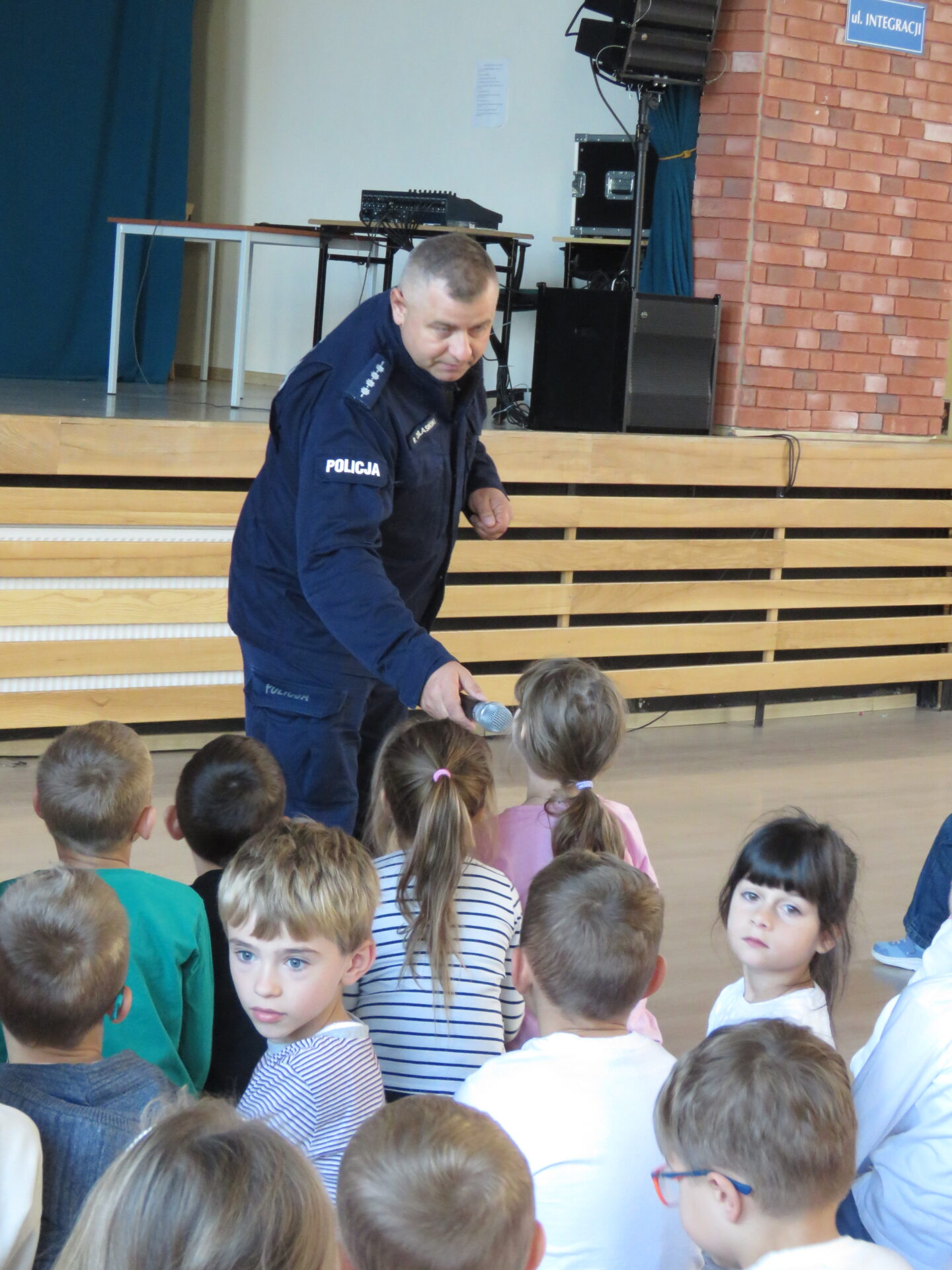 W środę podczas trzech spotkań miało miejsce wystąpienie policjanta, który opowiadał na w/w temat. Specjalnie przeszkoleni uczniowie-mediatorzy przeprowadzili w przedszkolu i w klasach 1-3 scenki terapeutyczne.