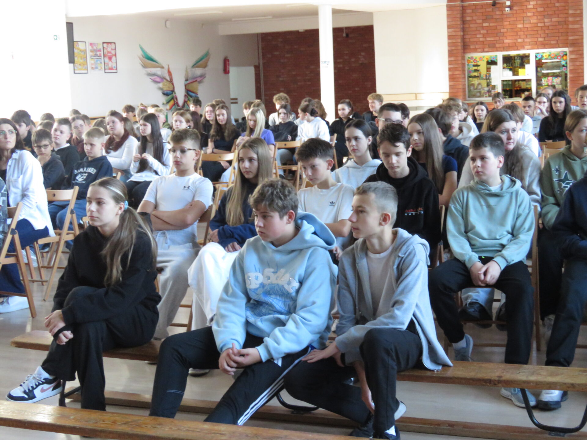 W każdej klasie 1-8 zostały przeprowadzone zajęcia według scenariuszy opartych o relacje rówieśnicze i działania przeciwko przemocy. Nauczyciele wyświetlili w klasach prezentację. W salach lekcyjnych i na korytarzach zostały rozwieszone ulotki: „Ścieżka pomocy-Przemoc rówieśnicza w szkole”.