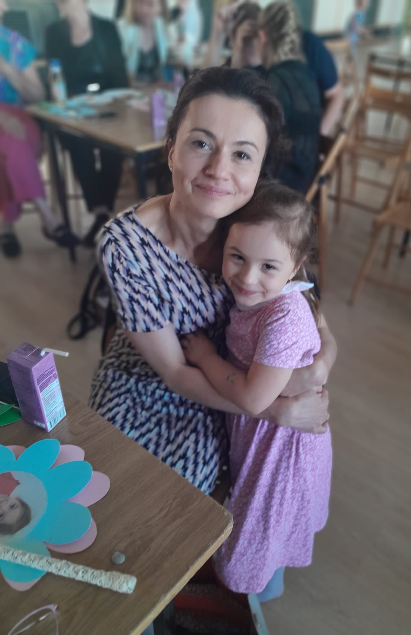 Dzieci po zakończonym występie wręczyły swoim rodzicom przygotowane prezenty na pamiątkę tego pięknego dnia pełnego miłości, uścisków i serdeczności.