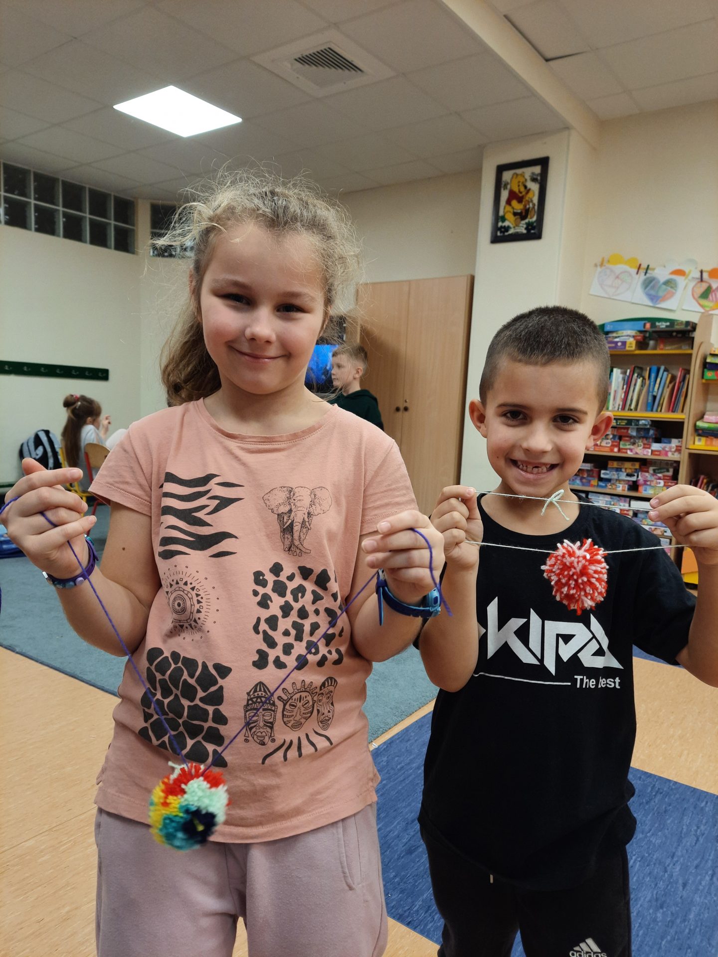Świetlicowe pierwszaki, pod kierunkiem pani Agnieszki, z zapałem wykonywały przez cały miesiąc „pompony przyjaźni” z kolorowej włóczki, które później miały okazję podarować wybranym przez siebie osobom. 25 listopada święto swoje obchodził najlepszy przyjaciel dzieci-Pluszowy Miś.