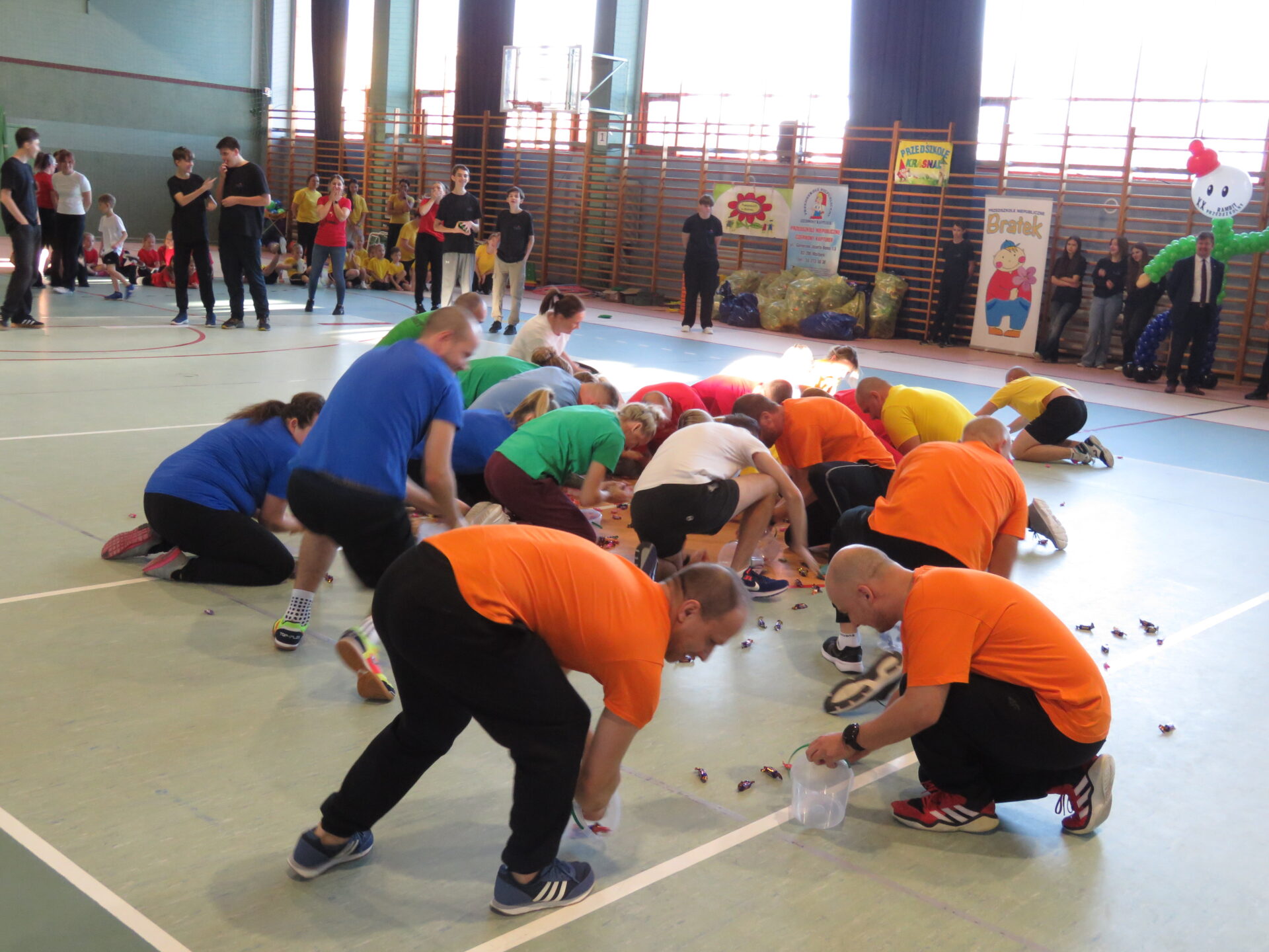 Podczas sportowych rozgrywek dzieci współpracowały ze sobą i z przedstawicielami rodziców grupy Niezapominajki. Do walki zagrzewały je Panie Jolanta Zwierz i Basia Wilczkowiak. Dla rodziców przygotowano specjalne konkurencje. Zmagania rodziców dostarczyły dzieciom dużo radości.