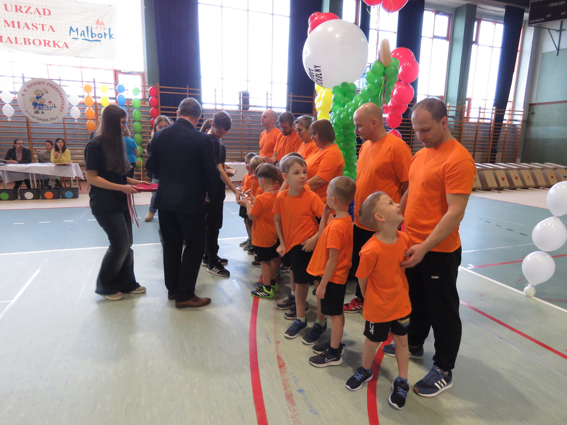 21 listopada 2025 r. w sali gimnastycznej naszej placówki odbył się XX Jubileuszowy Rambit Przedszkolny. Ta sportowa impreza integruje dzieci ze wszystkich malborskich przedszkoli, daje dzieciom wiele radości i dobrej zabawy.
